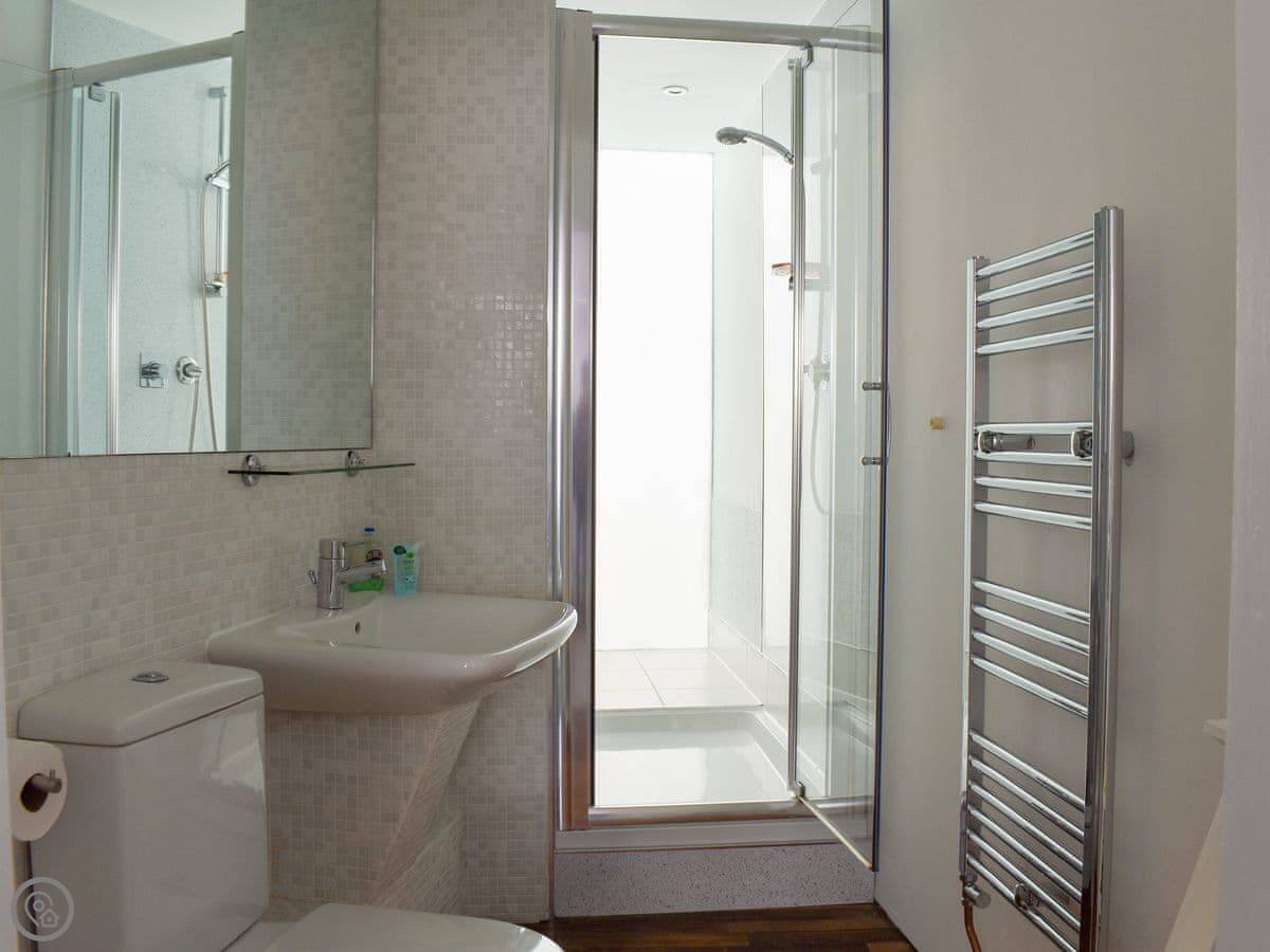 The flat has Wi-Fi, a TV, and all the bedding and towels are included. There's no washing machine though, just so you know. There's a shower in each bathroom. No pets allowed.