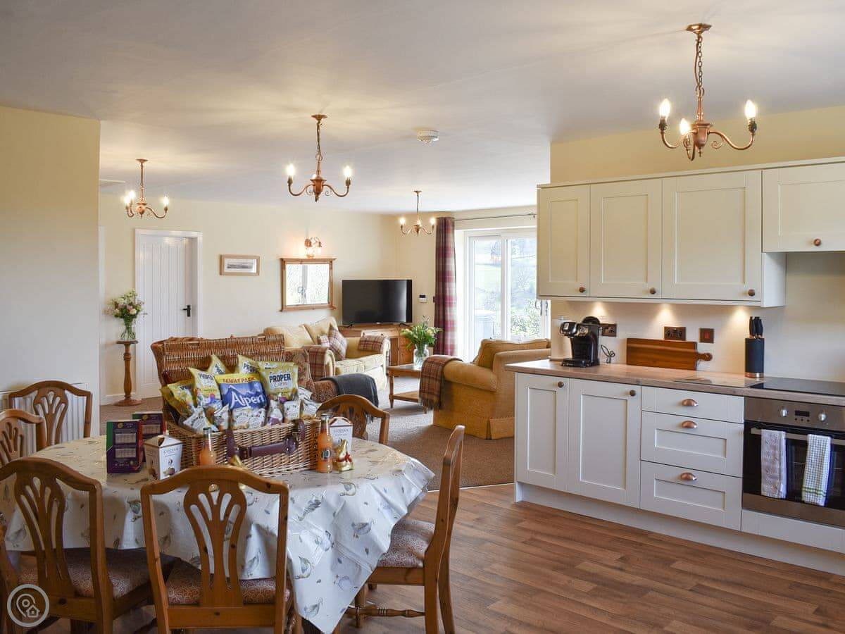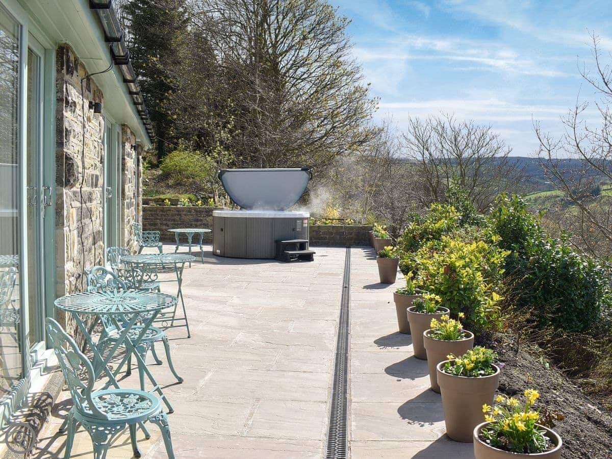 The place got its 5 Star rating because it’s a high spec inside. It’s open plan and has things like a dishwasher and a wood burner. There’s a hot tub on the patio. The garden is big and a bit wild, it goes back into woodland, so it feels private.