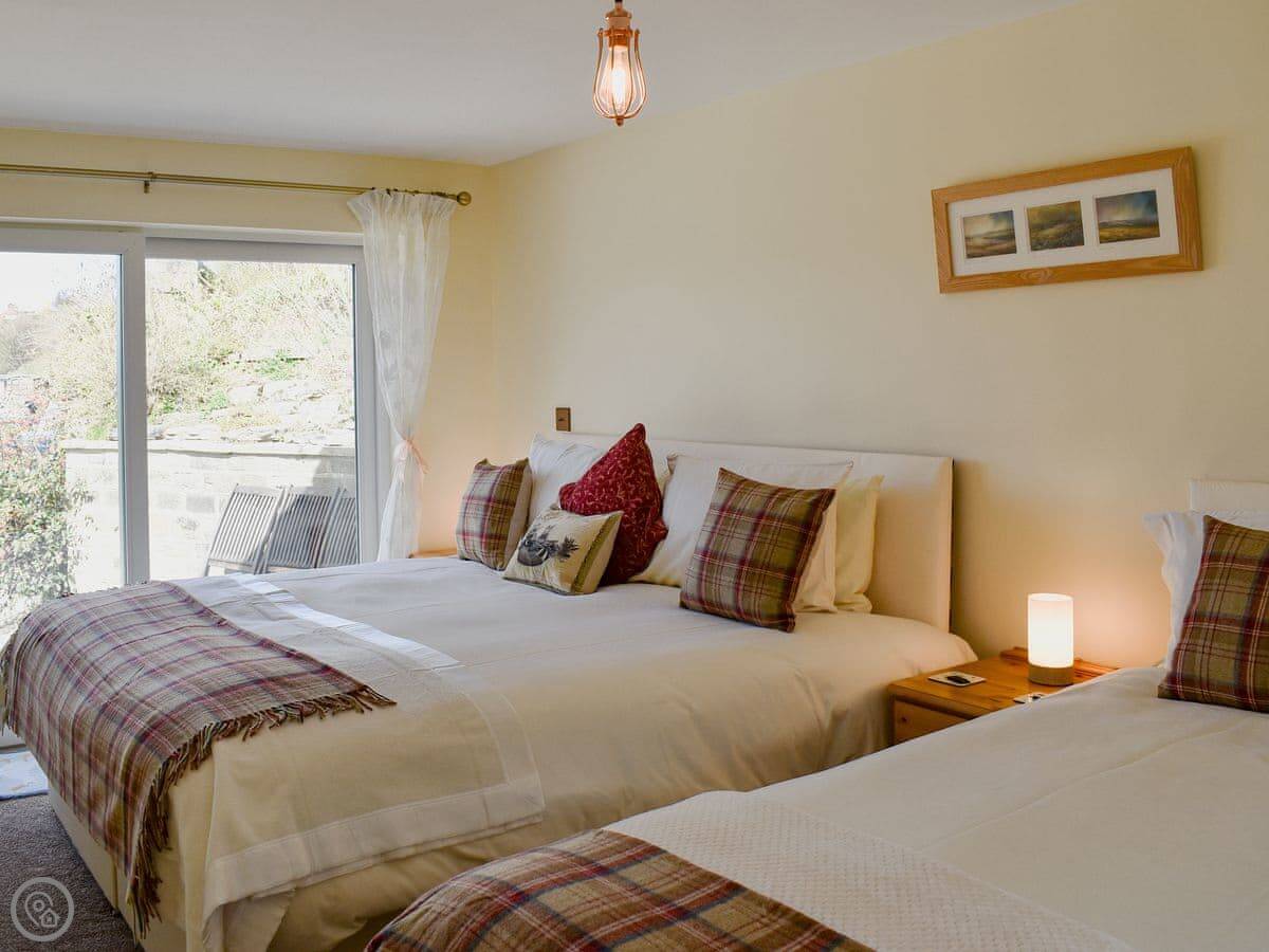 Teal Cottage is in Holmfirth, just outside the town centre. It’s a detached bungalow, so everything’s on one level. It sleeps ten, with four bedrooms and three bathrooms.