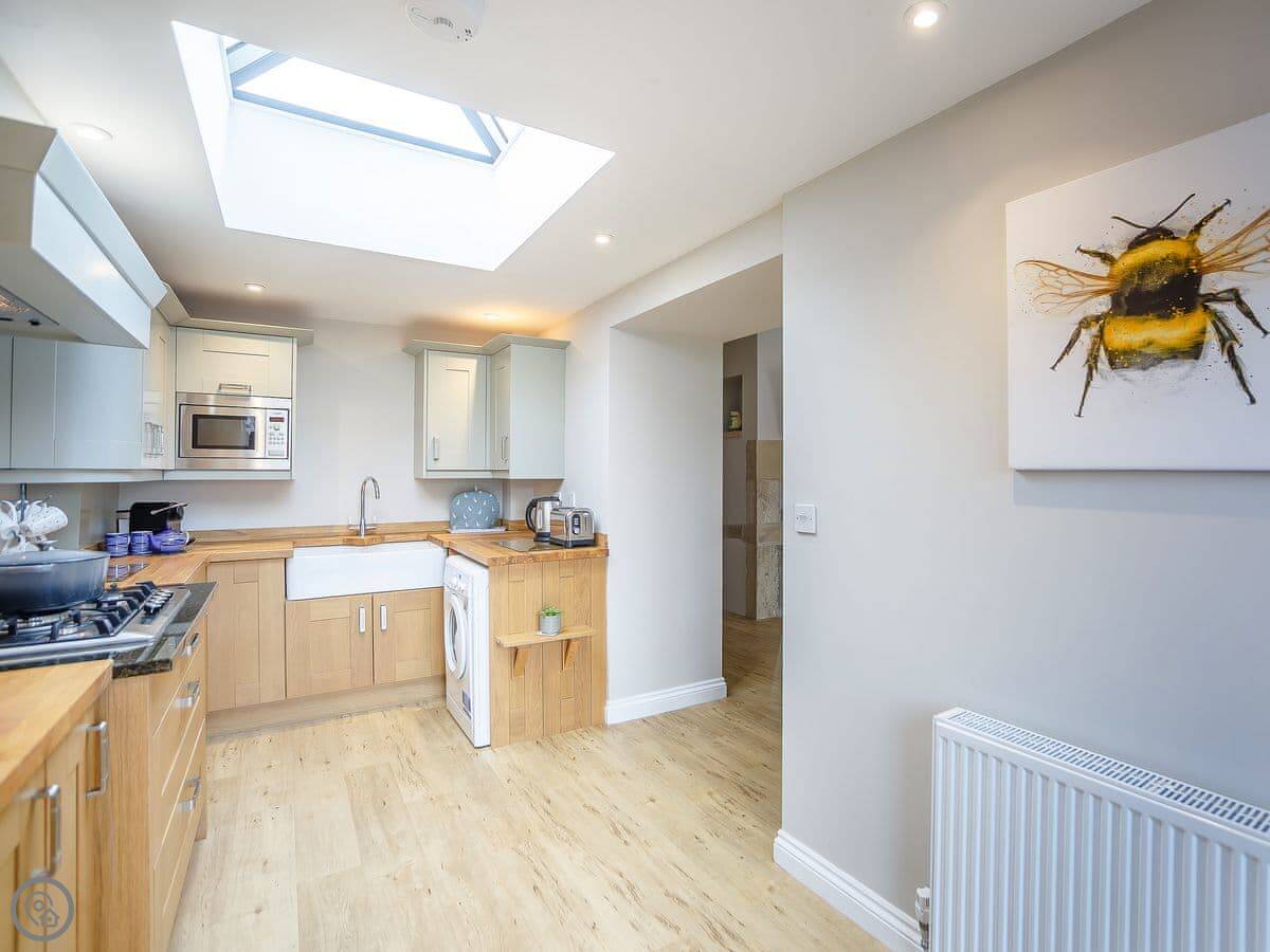 Glebelands Lodge is a small, detached stone house in Alnwick. It's got two bedrooms and two bathrooms, so it sleeps four. It's recently been done up to a high standard. It's all on one floor but there are four steps up to the front door. There's also a level access route around the side if steps are a problem.