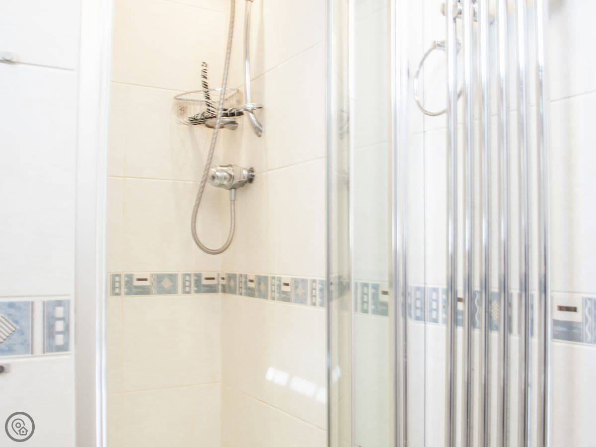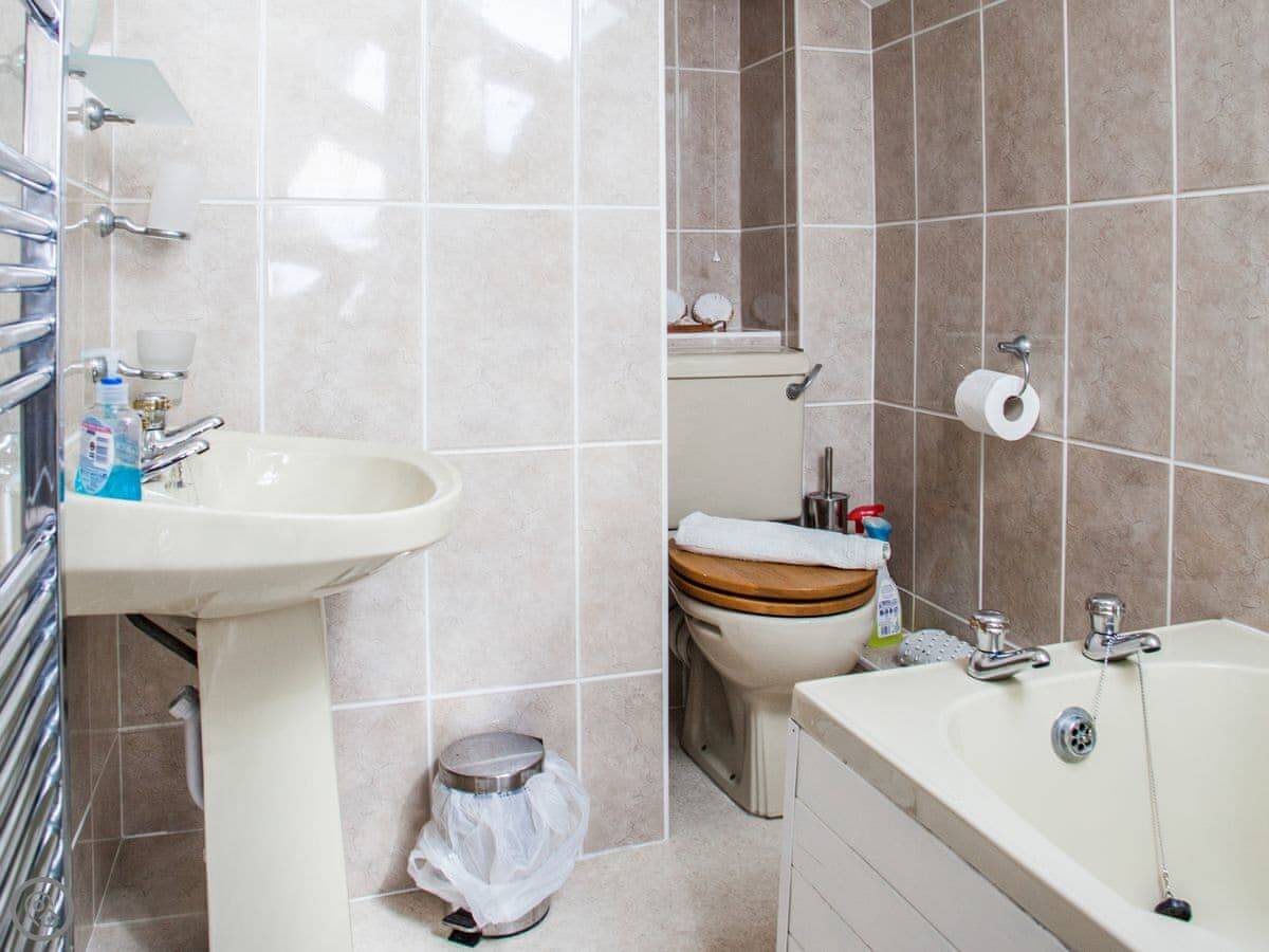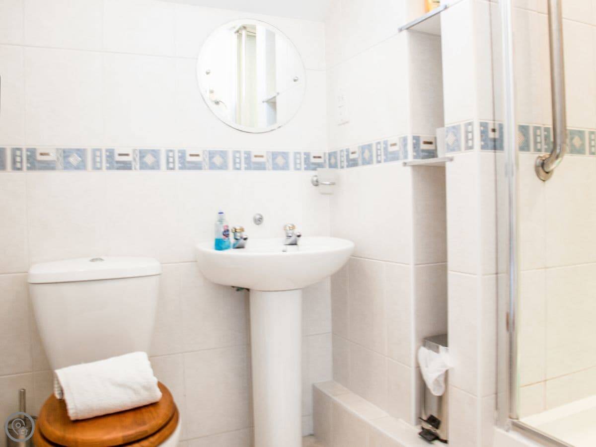 It sleeps five. Three bedrooms, two bathrooms so that helps in the mornings. One of them's an en-suite off the main bedroom. It's got a 4 Star rating, it's comfortable. The stairs are a bit uneven, older house.