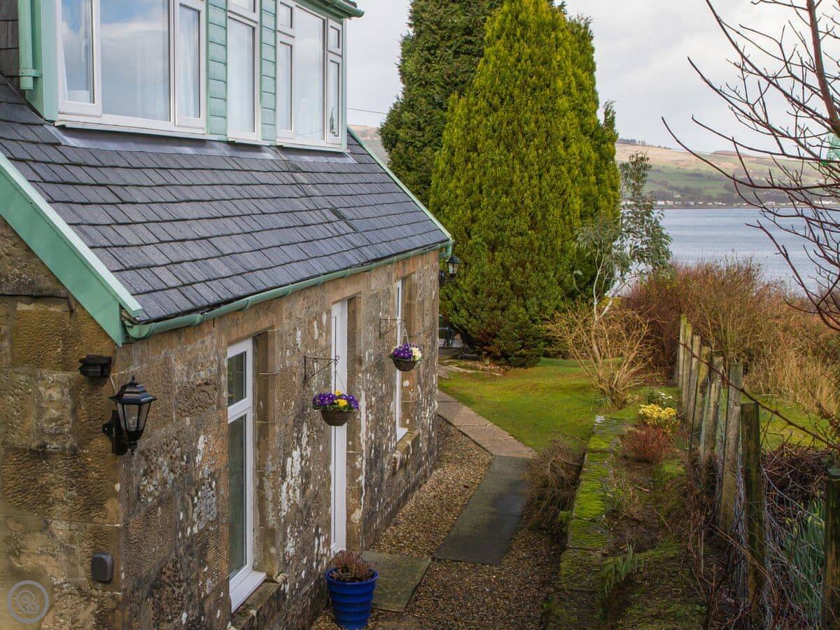 This is Alt Ardoch Cottage. It's up near Gortonallister on Arran. The position is high, so you get good views out to the sea and back to the hills.