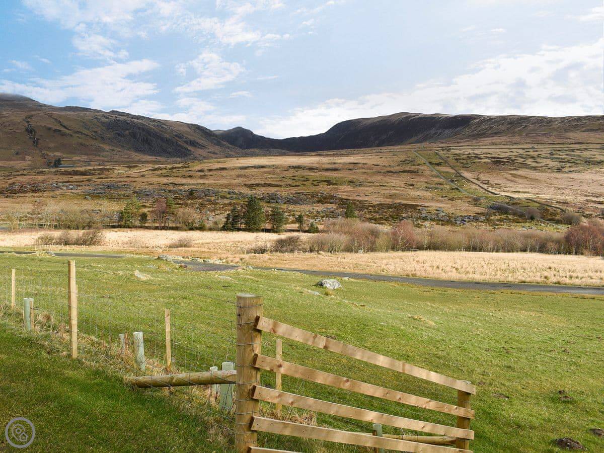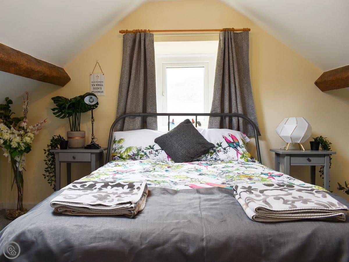 Once inside, if you can tear yourself away from the stunning outside views, you’ll be greeted by a traditional inglenook fireplace ready for a roaring fire to be lit. The seating area is a lovely cosy setting with beams and stacks of character, a door from here will lead you out to the outside courtyard, a fantastic private spot to relax in after a day exploring this renowned region of the National Park. Upstairs there are two conjoining bedrooms, that have been furnished with your comfort in mind. Nestled in the foothills of the Carneddau and Glyderau mountain ranges, and near all the popular Mount Snowdon paths, it’s a walkers paradise.