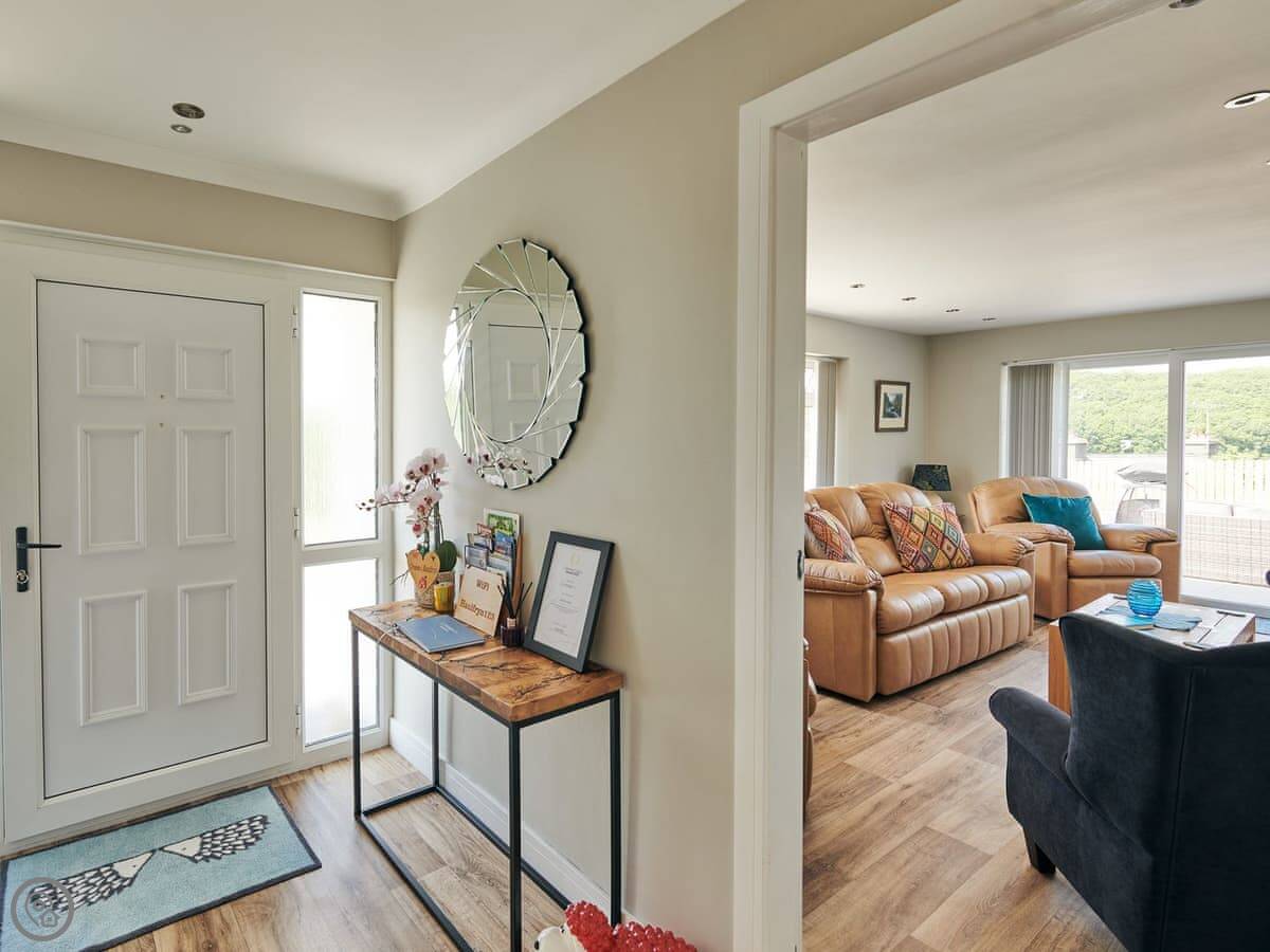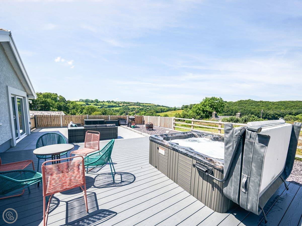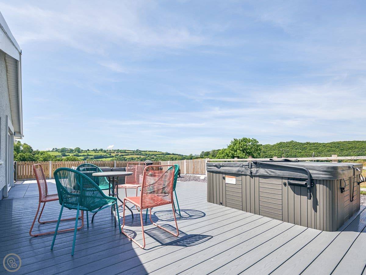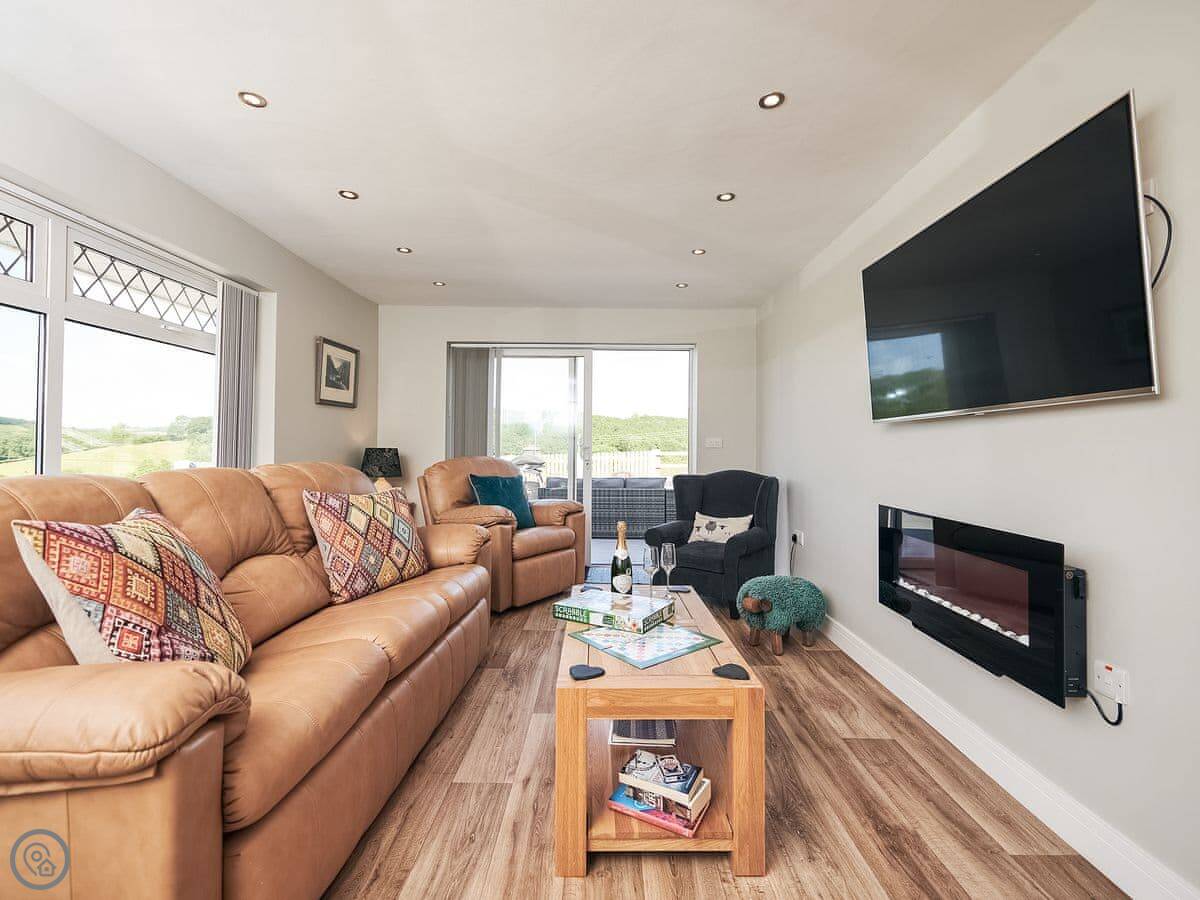 Standing detached, Haulfryn has been renovated to a high standard in 2021 and has great views of the rolling countryside. The open plan kitchen/dining room has a breakfast bar and the separate living room has a Smart TV. The master bedroom has a kingsize bed and en-suite shower room, and there are also a twin bedroom and double bedroom, together with a family shower room. Outside guests can enjoy and enclosed garden with a decked patio area and a private hot tub.