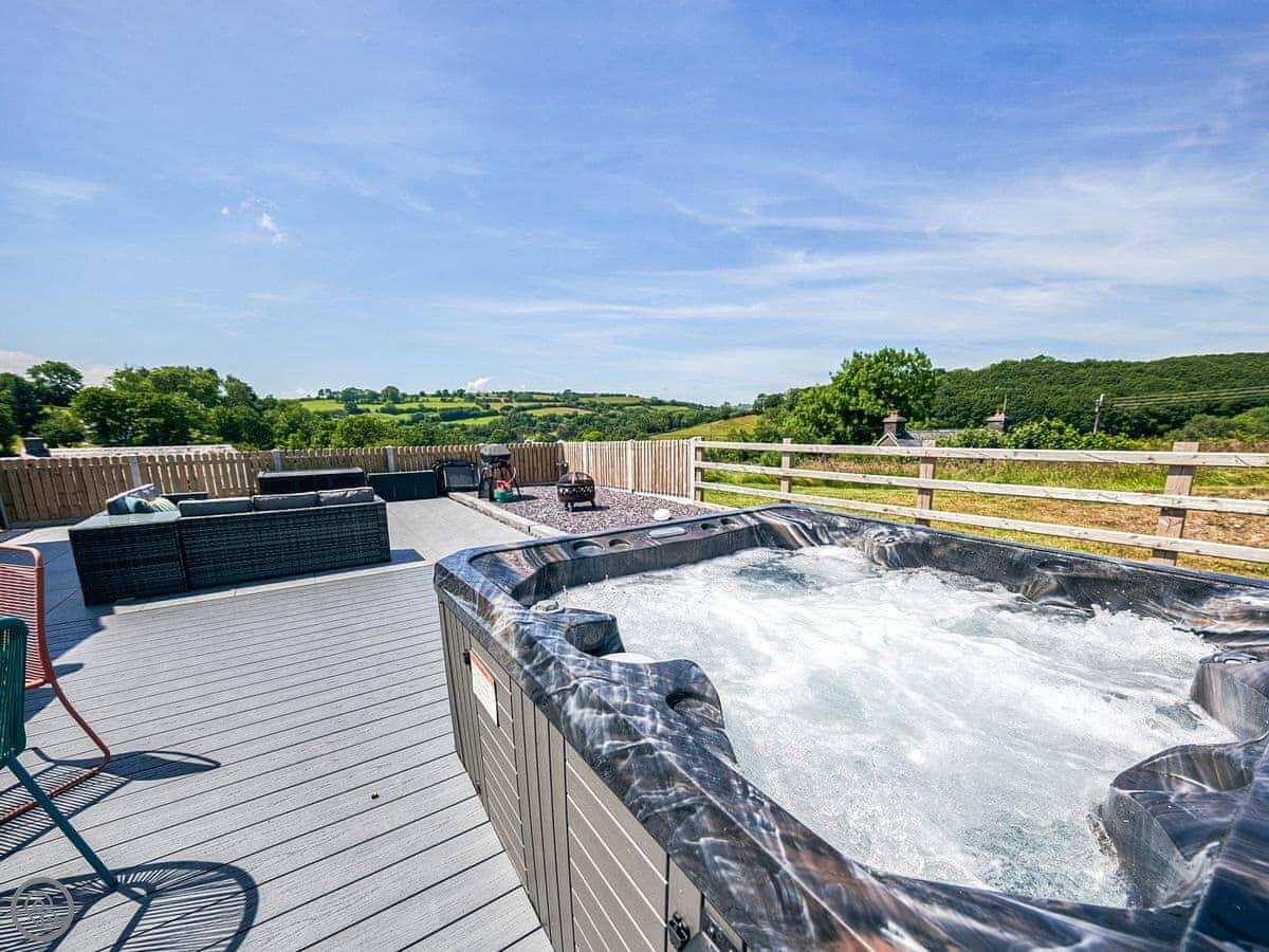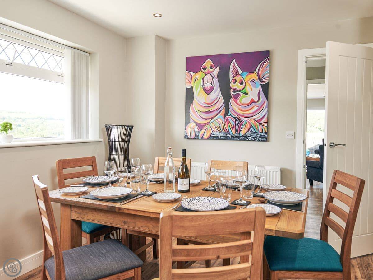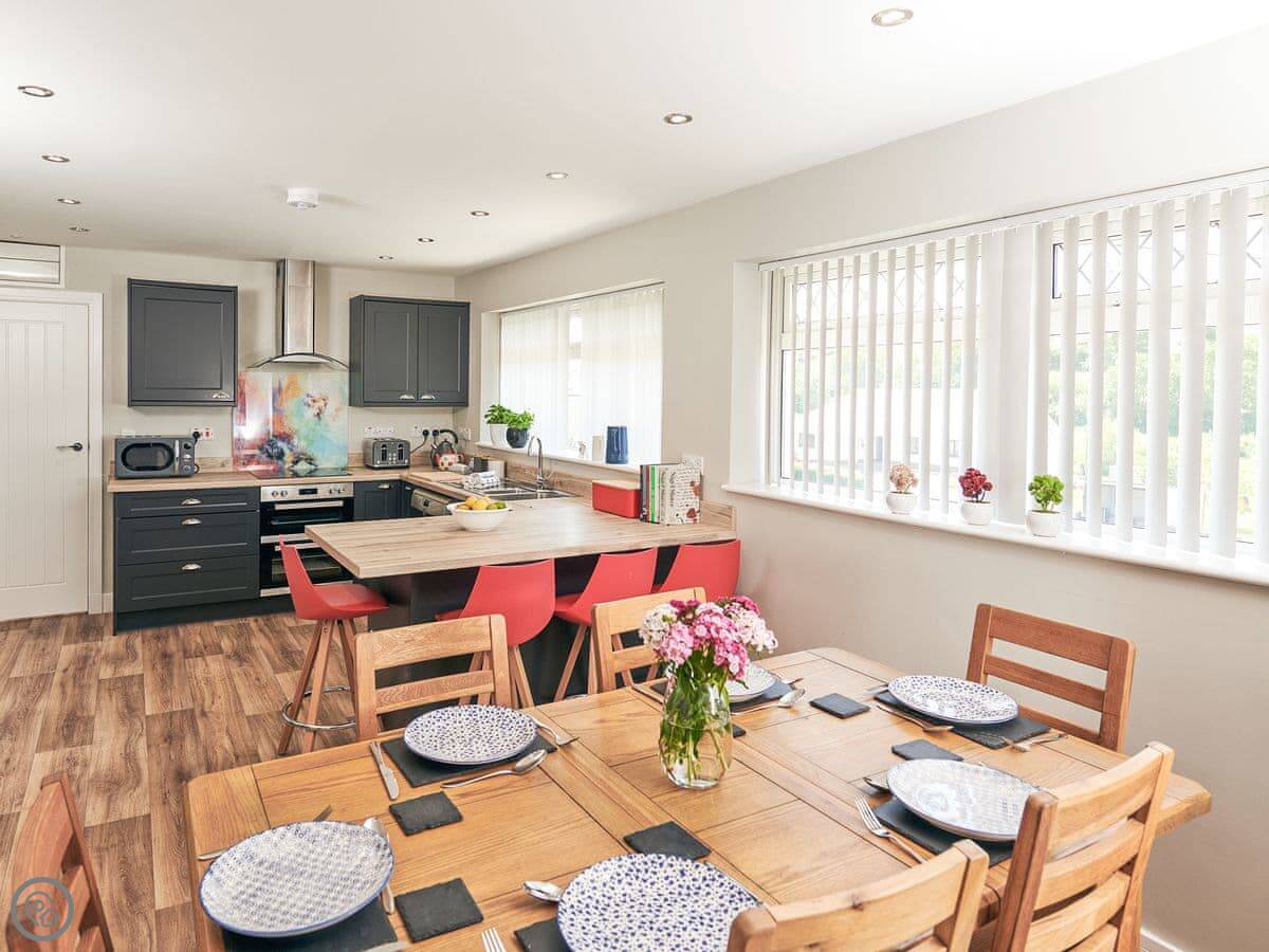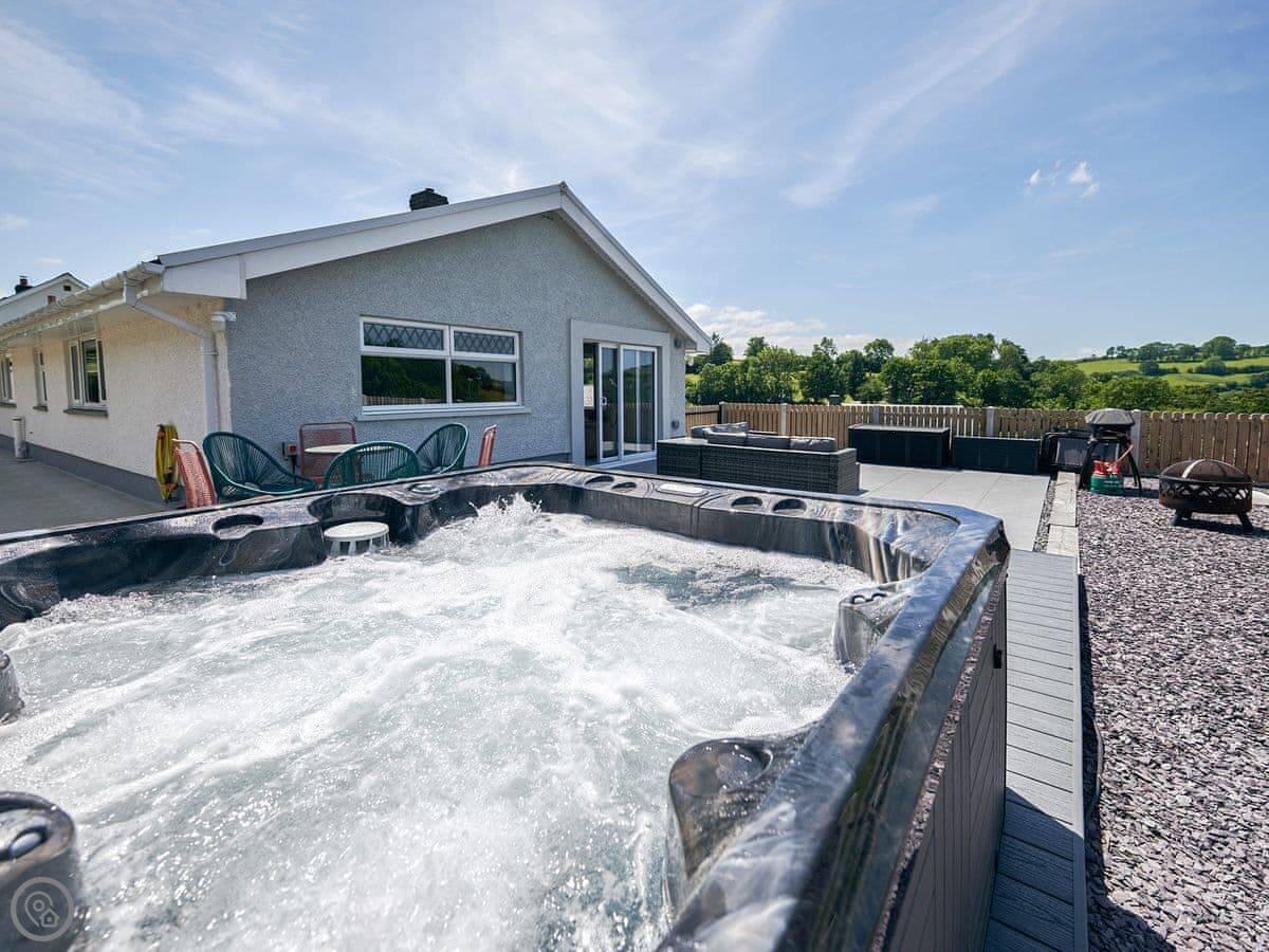 Standing detached, Haulfryn has been renovated to a high standard in 2021 and has great views of the rolling countryside. The open plan kitchen/dining room has a breakfast bar and the separate living room has a Smart TV. The master bedroom has a kingsize bed and en-suite shower room, and there are also a twin bedroom and double bedroom, together with a family shower room. Outside guests can enjoy and enclosed garden with a decked patio area and a private hot tub.
