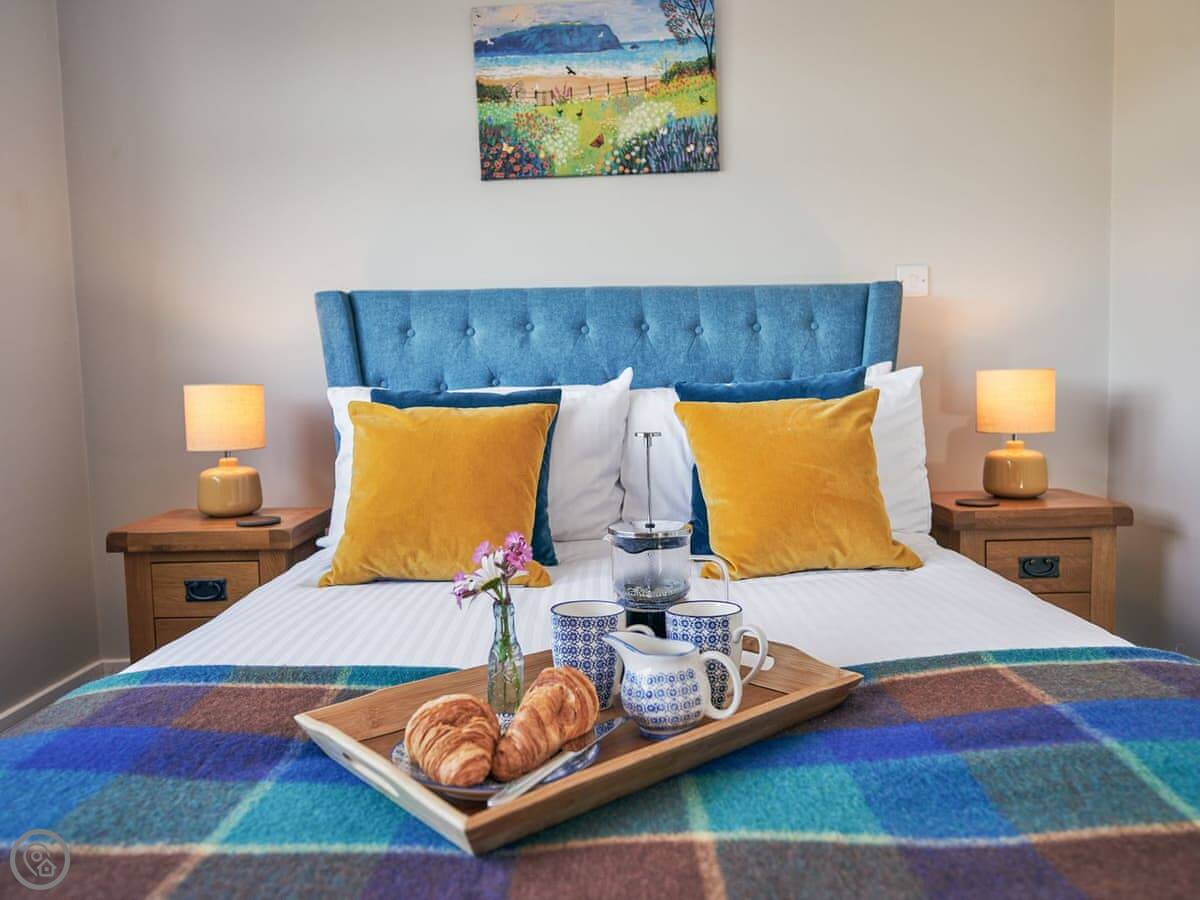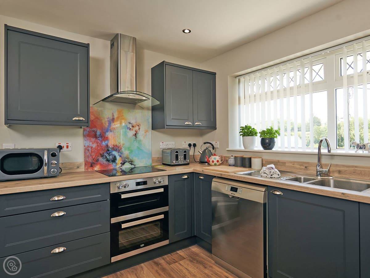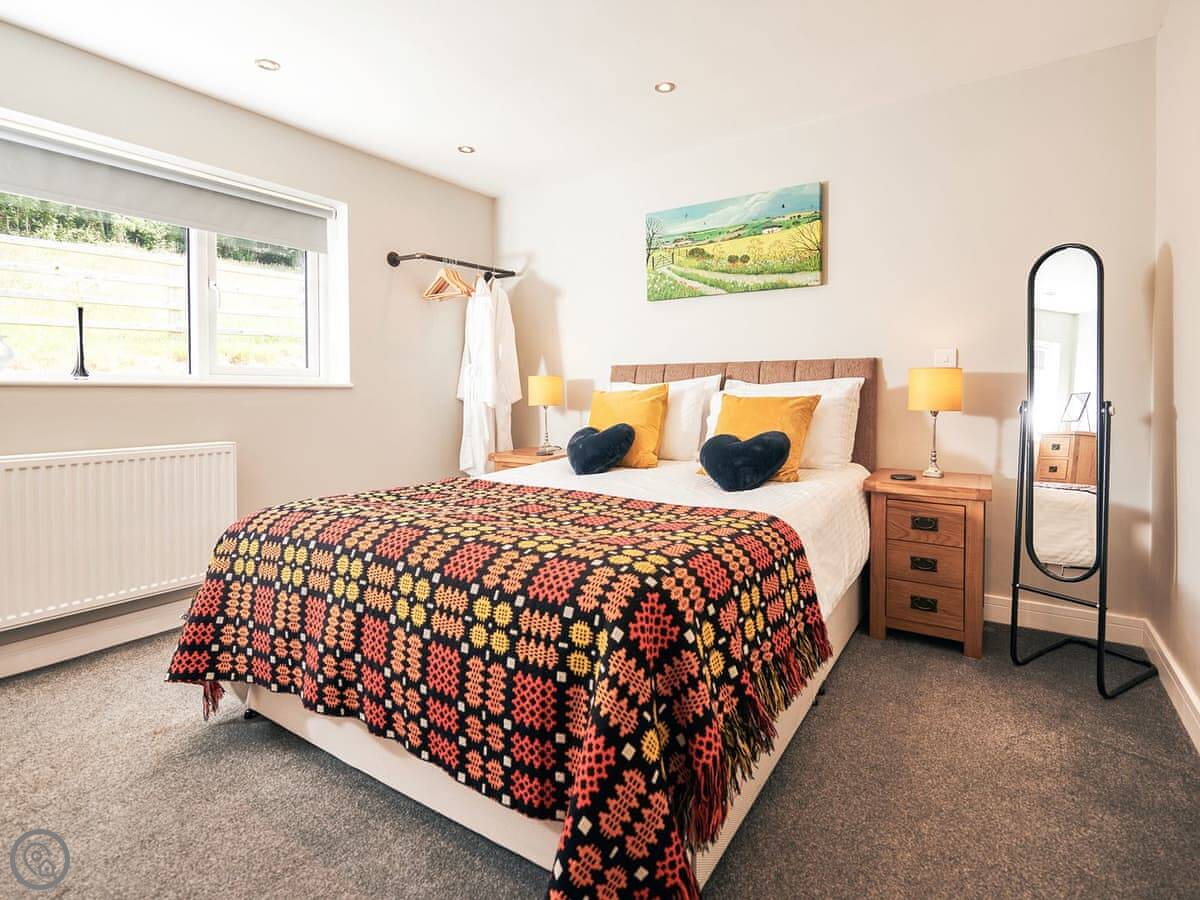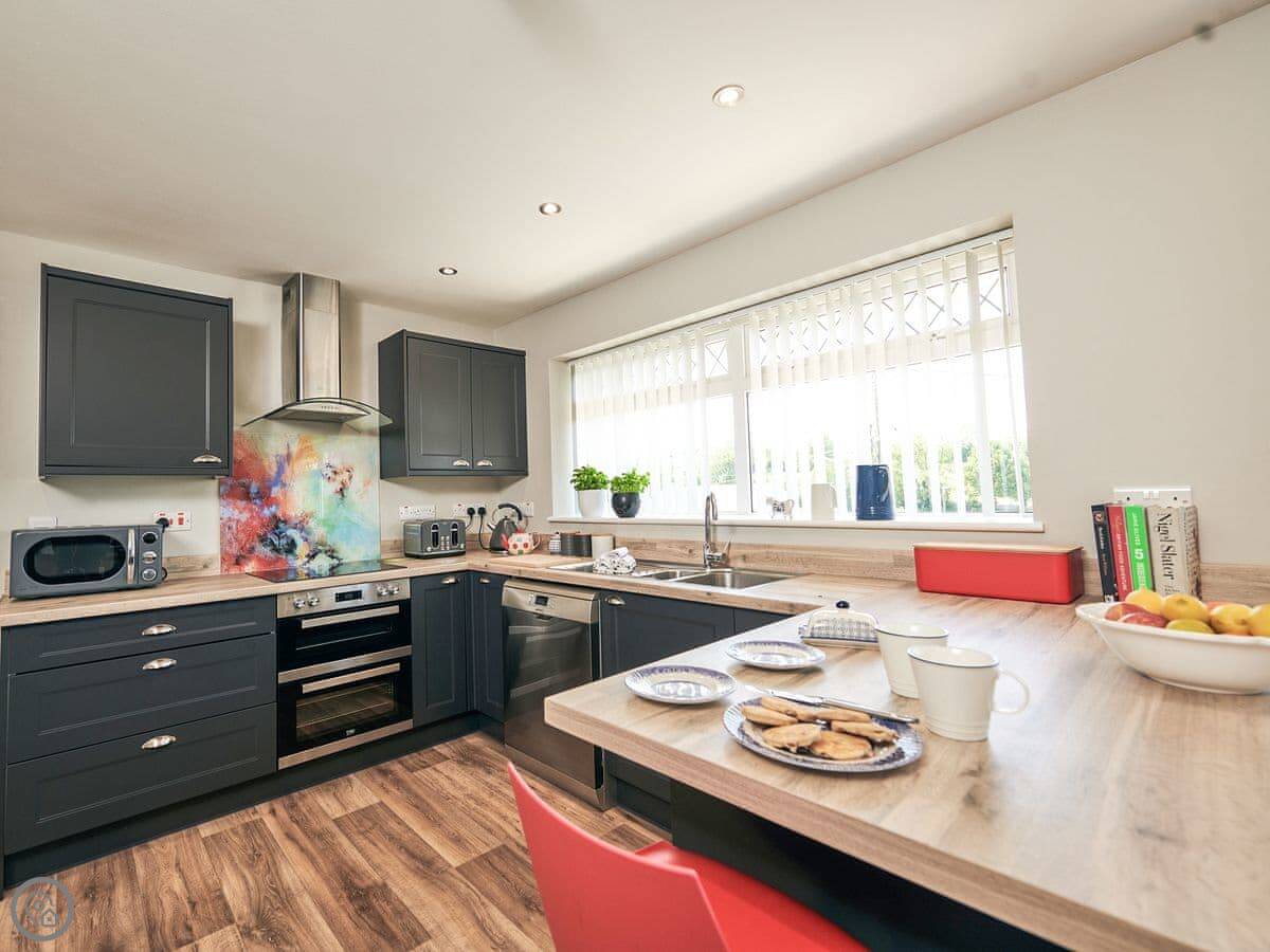 Standing detached, Haulfryn has been renovated to a high standard in 2021 and has great views of the rolling countryside. The open plan kitchen/dining room has a breakfast bar and the separate living room has a Smart TV. The master bedroom has a kingsize bed and en-suite shower room, and there are also a twin bedroom and double bedroom, together with a family shower room. Outside guests can enjoy and enclosed garden with a decked patio area and a private hot tub.