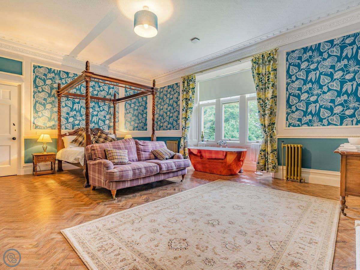 Perfect for large family get togethers and special occasions or surprise celebrations. A stunning property with two hot tubs, mature manicured gardens and woodland walks, set on its own private grounds in the heart of the picturesque Cumbrian village of Ravenstonedale. Featuring eleven spacious bedrooms and nine bathrooms, you’ll find the combination of rooms, beds and flexible sleeping arrangements ideal for a get together. The impressive building, sweeping staircase, high ceilings and panelled walls offer a glimpse to the past but with modern day living. The hallway has original Victorian tiled floor and the cloakroom an original Victorian toilet. Offering spacious bedrooms with luxurious beds, high quality furnishings, lovely interior décor and plenty of storage space, all have views to the grounds and gardens.