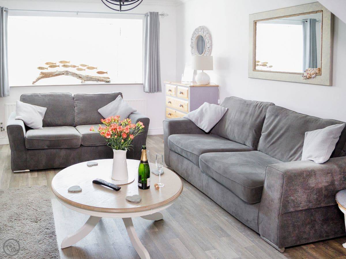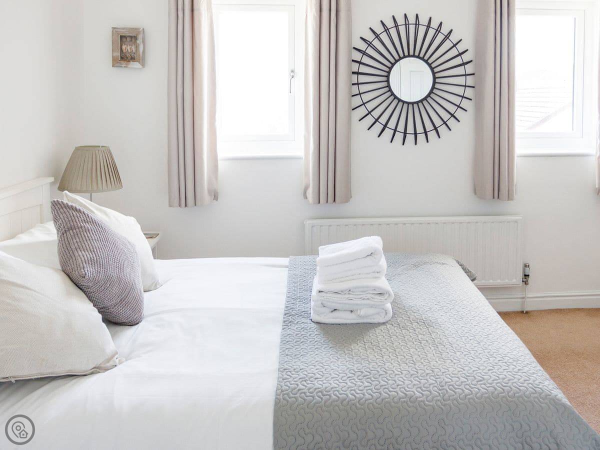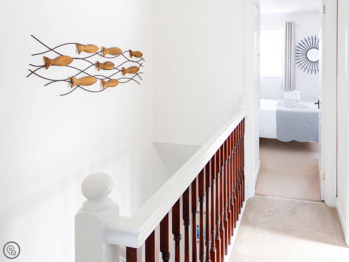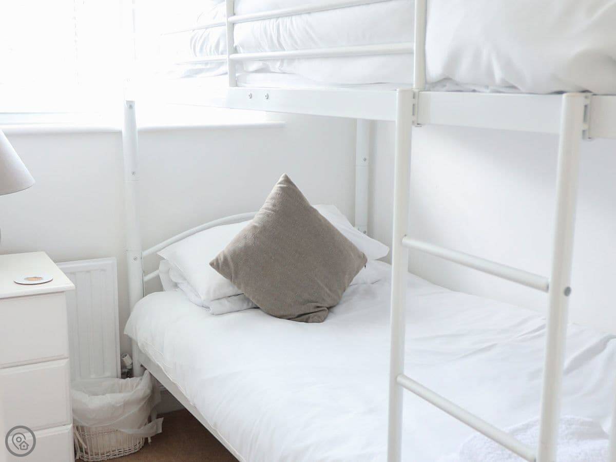 The Pad, wonderfully named and offering modern features with a nautical charm, has all you need for the ideal break in one of Cornwall’s best known harbour towns, Padstow, which is a leisurely 10 minute walk away. Whether you wish to explore the beaches, villages, coastline and coves, or just relax and unwind, The Pad accommodates both with ease. Many of the features are expertly hand crafted, including the dining room wall, bathroom wall, bedside lights, and the super lobster pot unit! The inviting living room has ample seating for six, with two sofas and single chair. The stunning electric fire here provides fantastic heat and light and creates a space you may well find hard to leave if the weather outside is unpredictable. The dining room provides space for six and sliding doors lead onto your private patio, with picnic style bench where you can enjoy a meal or favourite tipple whilst exchanging tales of your day. The excellently equipped kitchen, with lots of space, is thoughtfully presented. Upstairs you will find two good sized bedrooms, one with TV and both with sumptuous double beds along with a single room which sleeps one in a bunk-bed format. The spacious family bathroom boasts lovely wooden tones and has an excellent shower cubicle.
