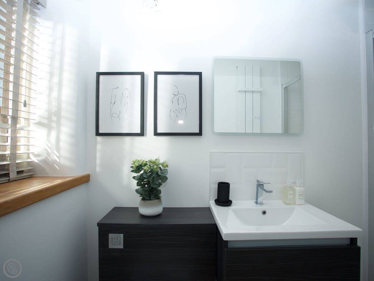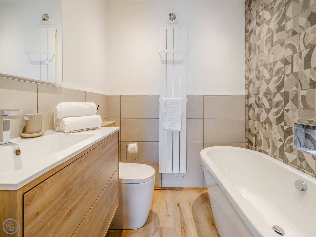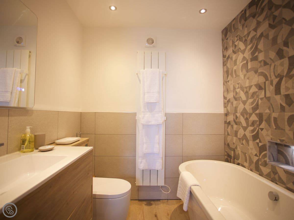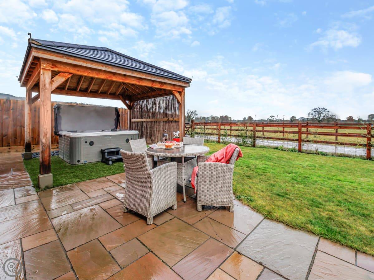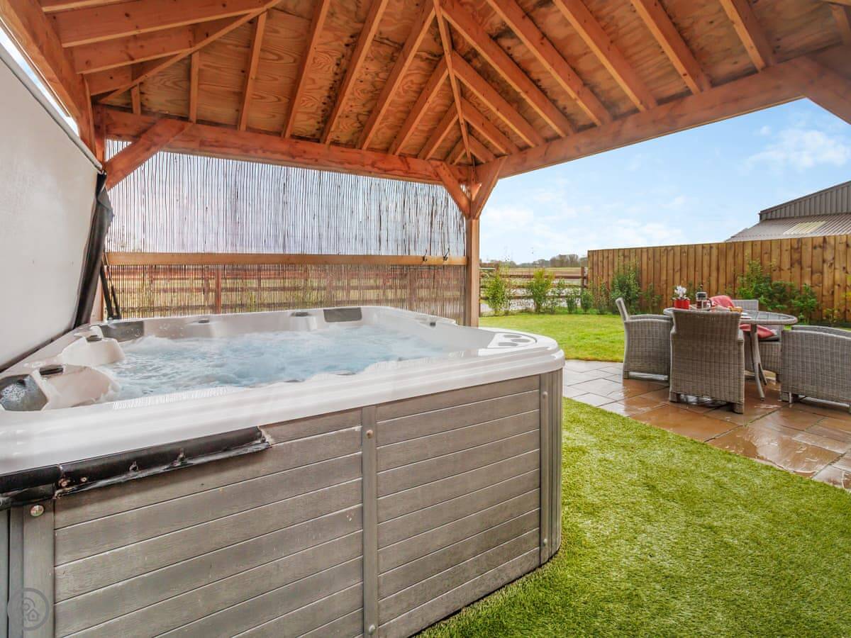 It sleeps four people. Two bedrooms, both ensuite. So you've got a bit of privacy. There's a hot tub on the private patio.