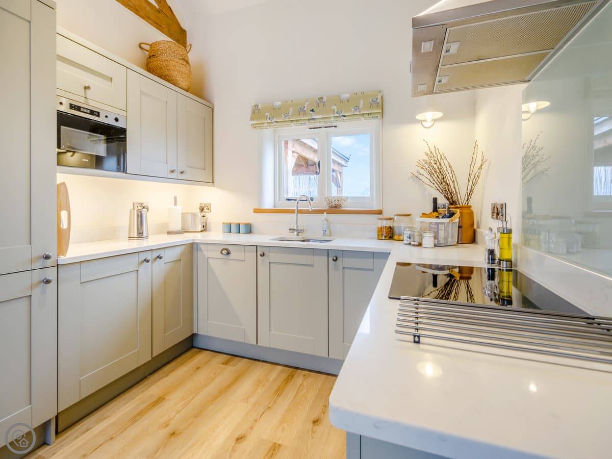 Pheasants Folly is one of a few barn conversions here on our farm in Llanymynech. It's detached, so it's just you. There's an enclosed garden and a patio. The property is rated 5 Star, which in our case means it's been done to a high standard and everything is quite new.