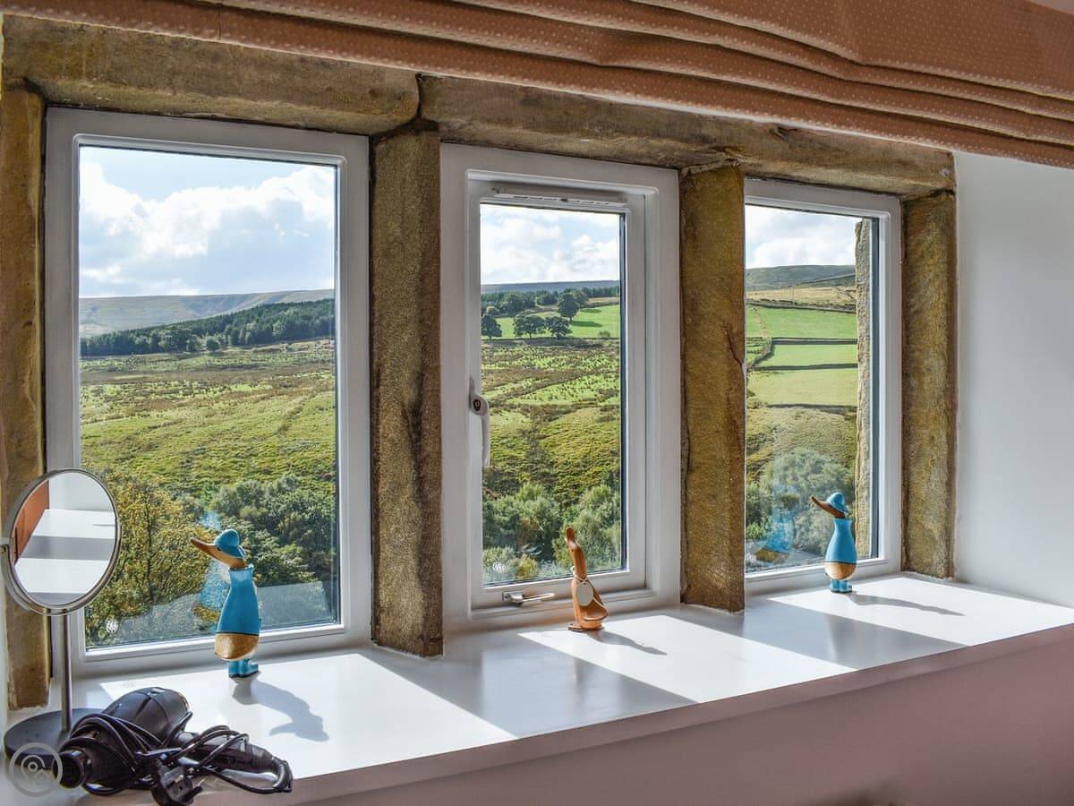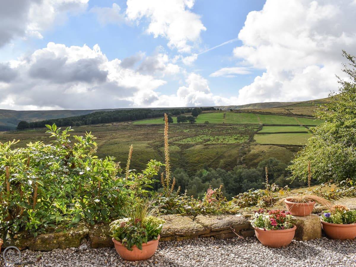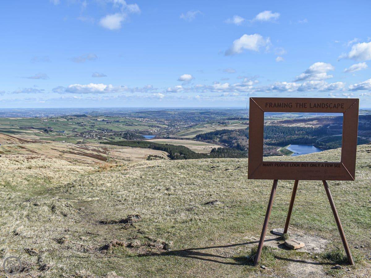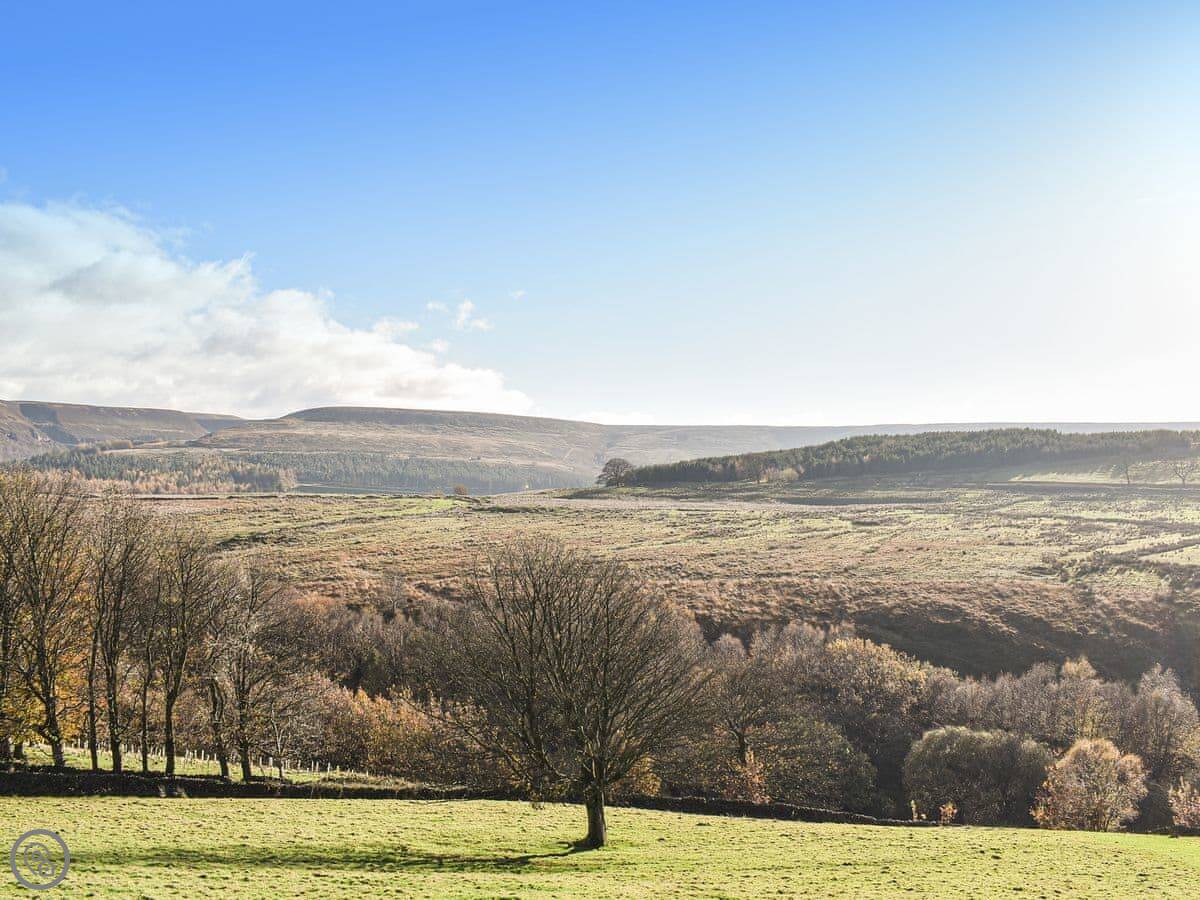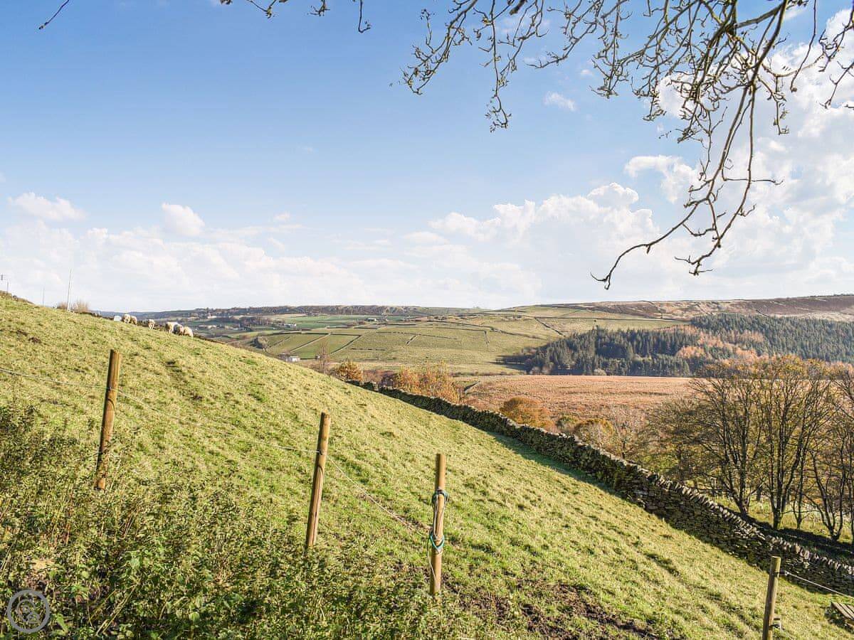 The views are very good. You look out over the Holme Valley. Holme village is about half a mile walk. There's a pub there that does food.