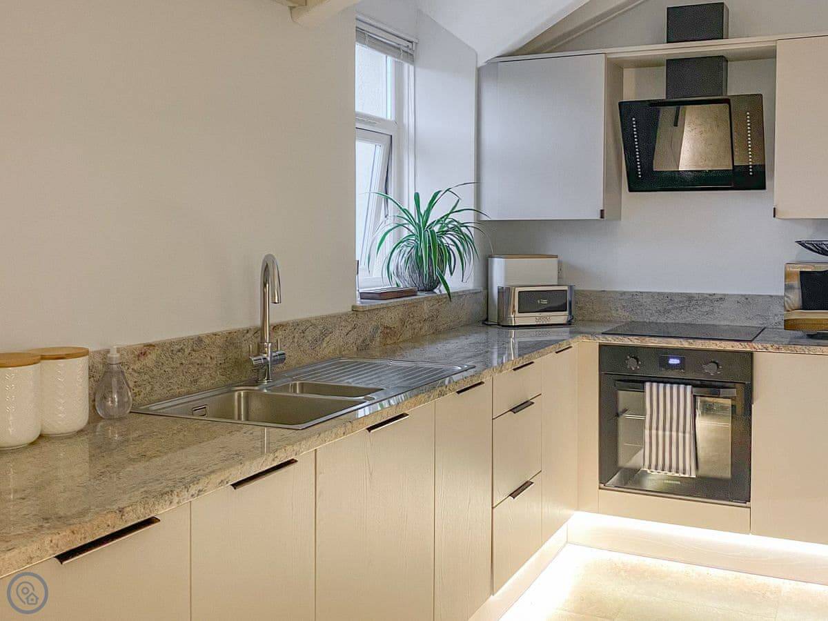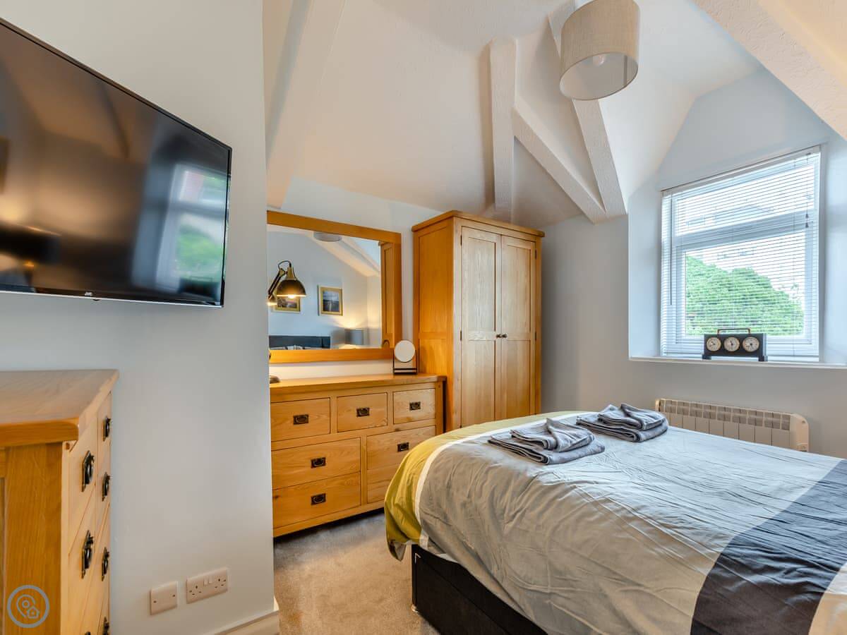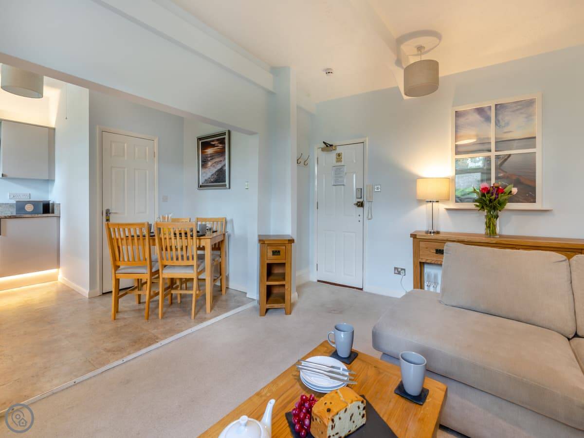 As you enter the apartment, you will find yourself in the open plan living/dining and kitchen area. The space features a comfortable sofa bed and Smart TV, as well as dining table and chairs in the fully equipped kitchen area, perfect for rustling up breakfast before a day exploring. The bathroom is contemporary and benefits from a bath with shower over. The double bedroom is light and airy and boasts plenty of storage to pack those cases away.
