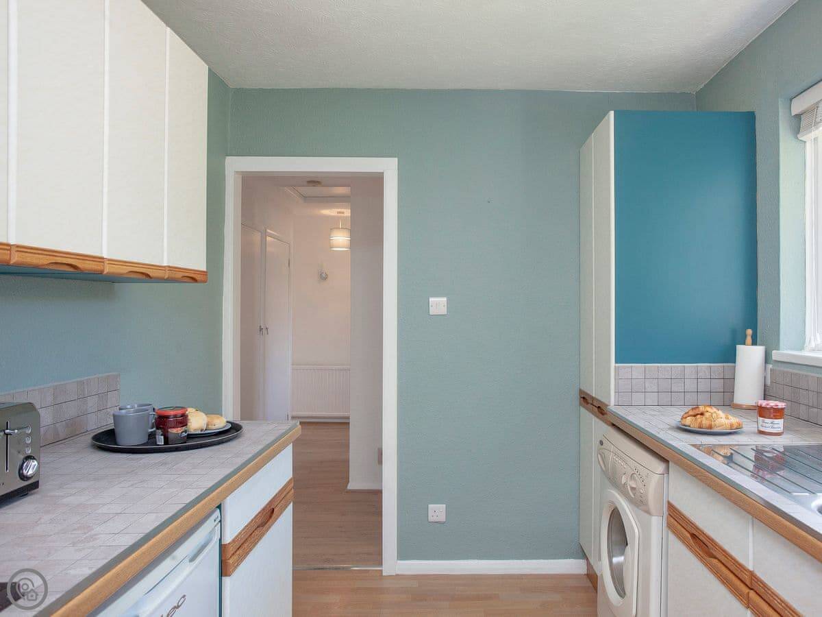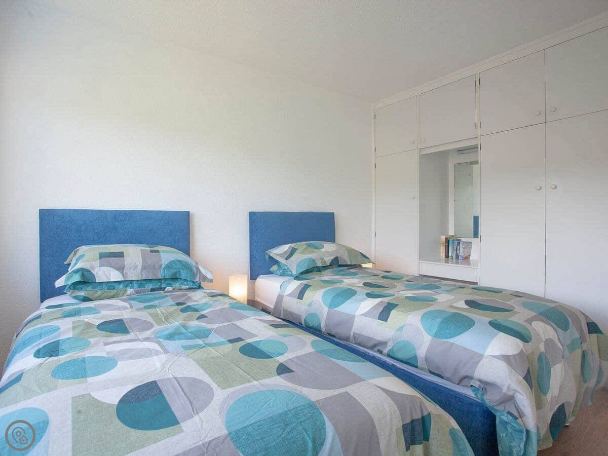 It sleeps four in two bedrooms. One double, one twin. There’s one bathroom with a shower. It’s got a separate toilet, which is handy.