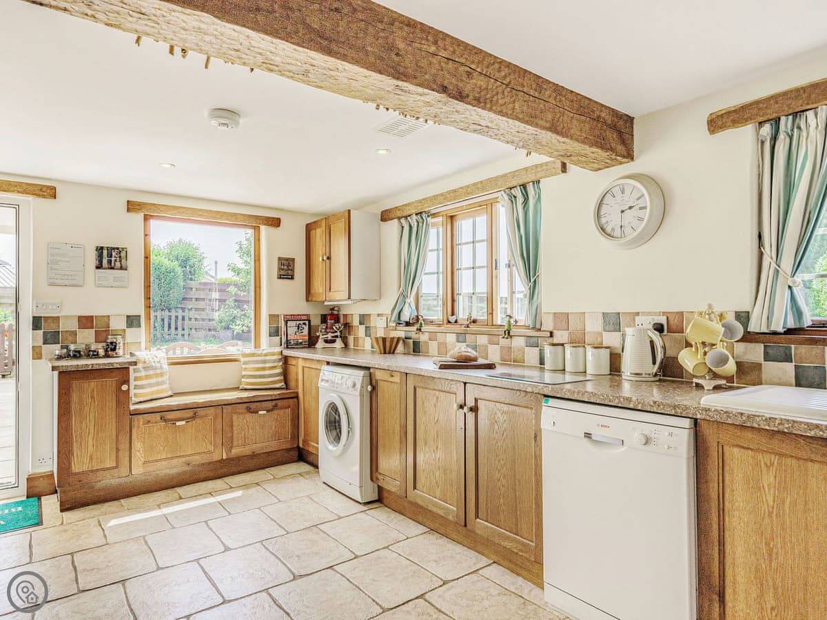 The kitchen is a good size and has everything, including a range cooker, dishwasher, and washing machine. There's a woodburner in the living room. The garden gets the sun and has a barbecue and seating.