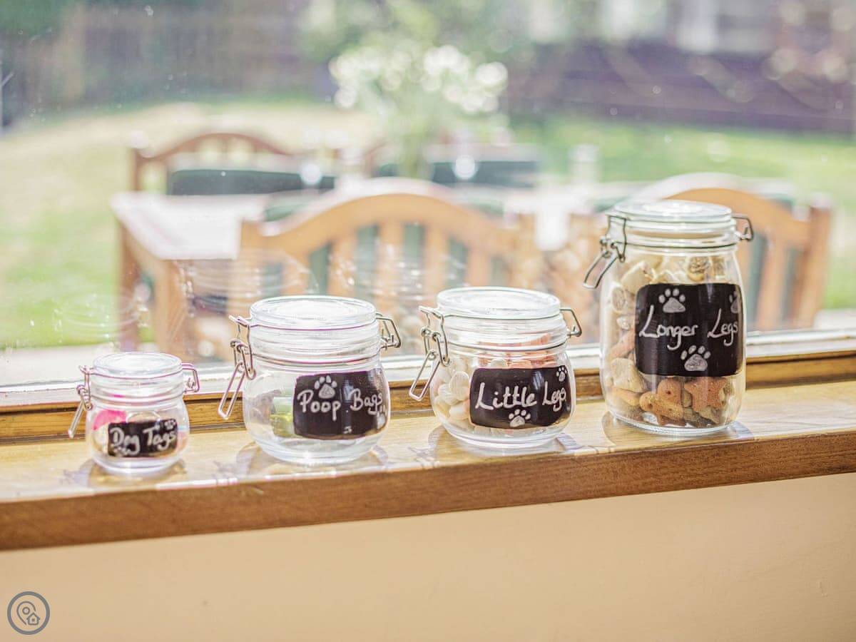 It's a very dog-friendly place. You can have up to four dogs. The owner provides towels and treats for them, and offers a dog-sitting service in their own field if you want to go out without them.
