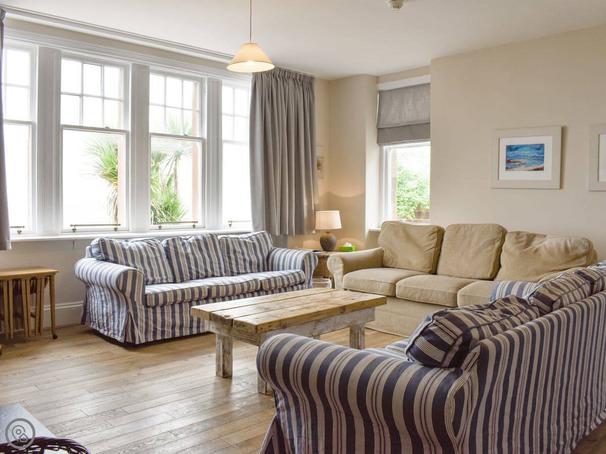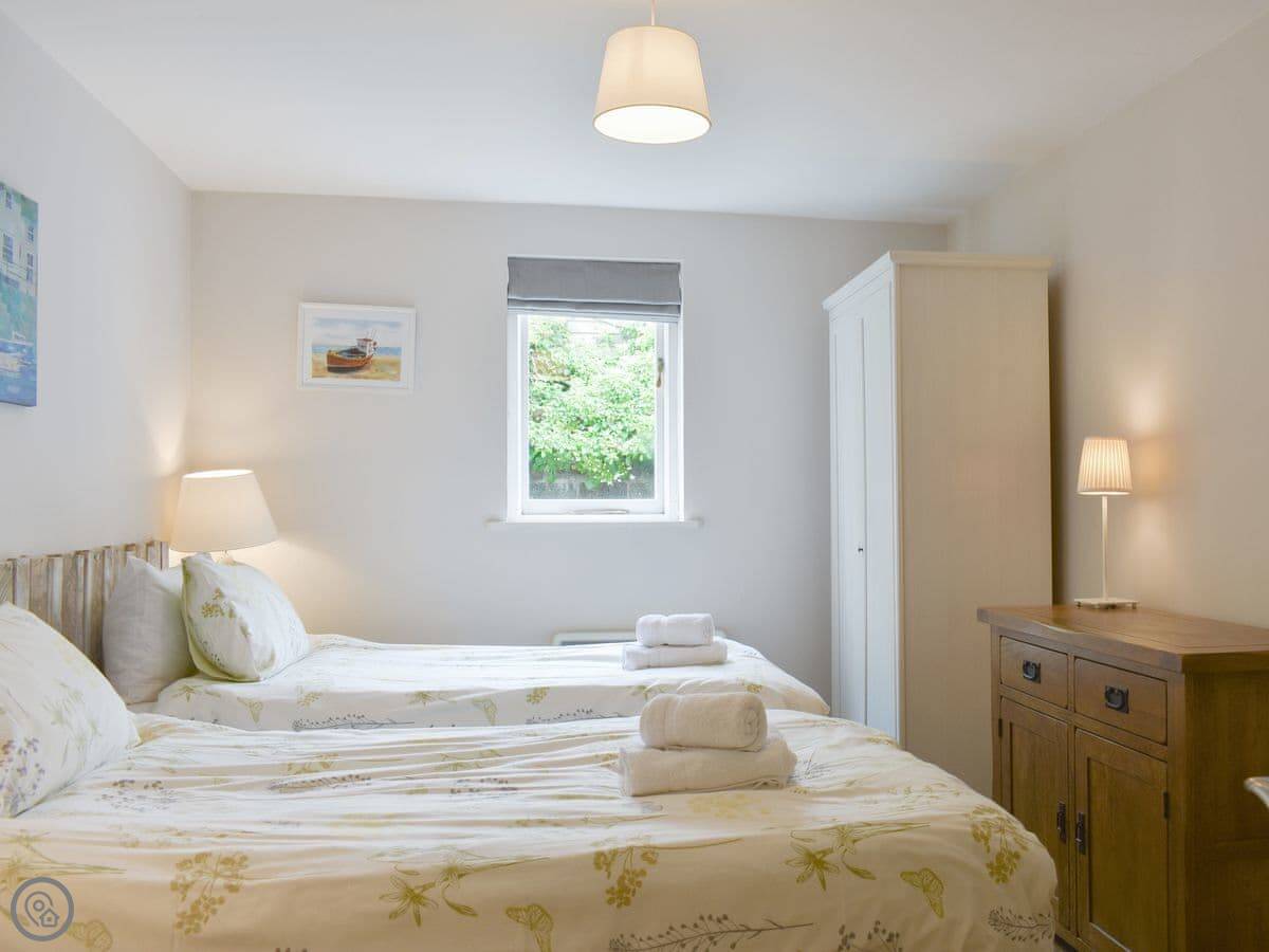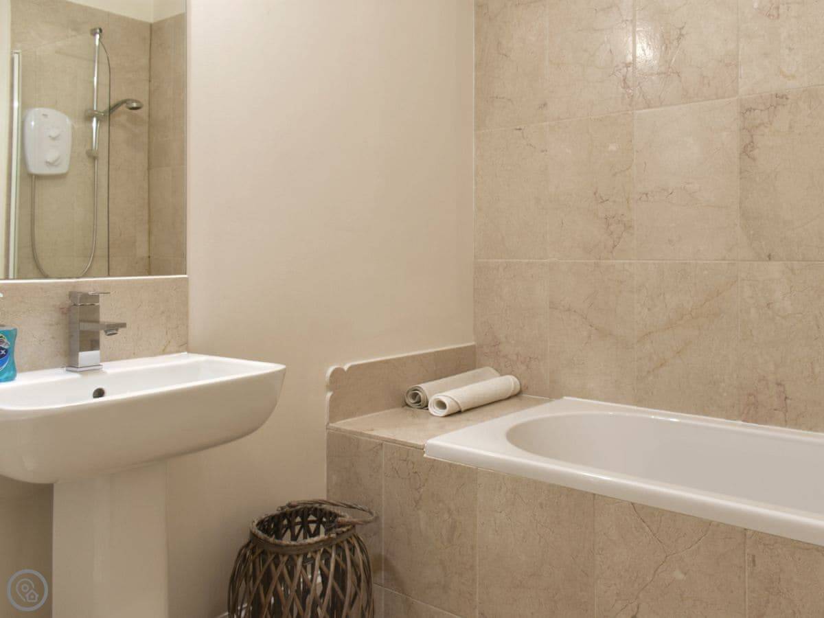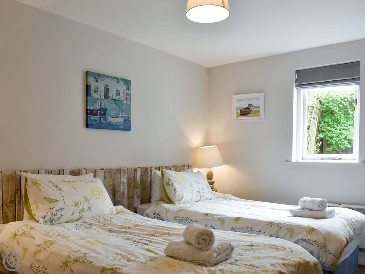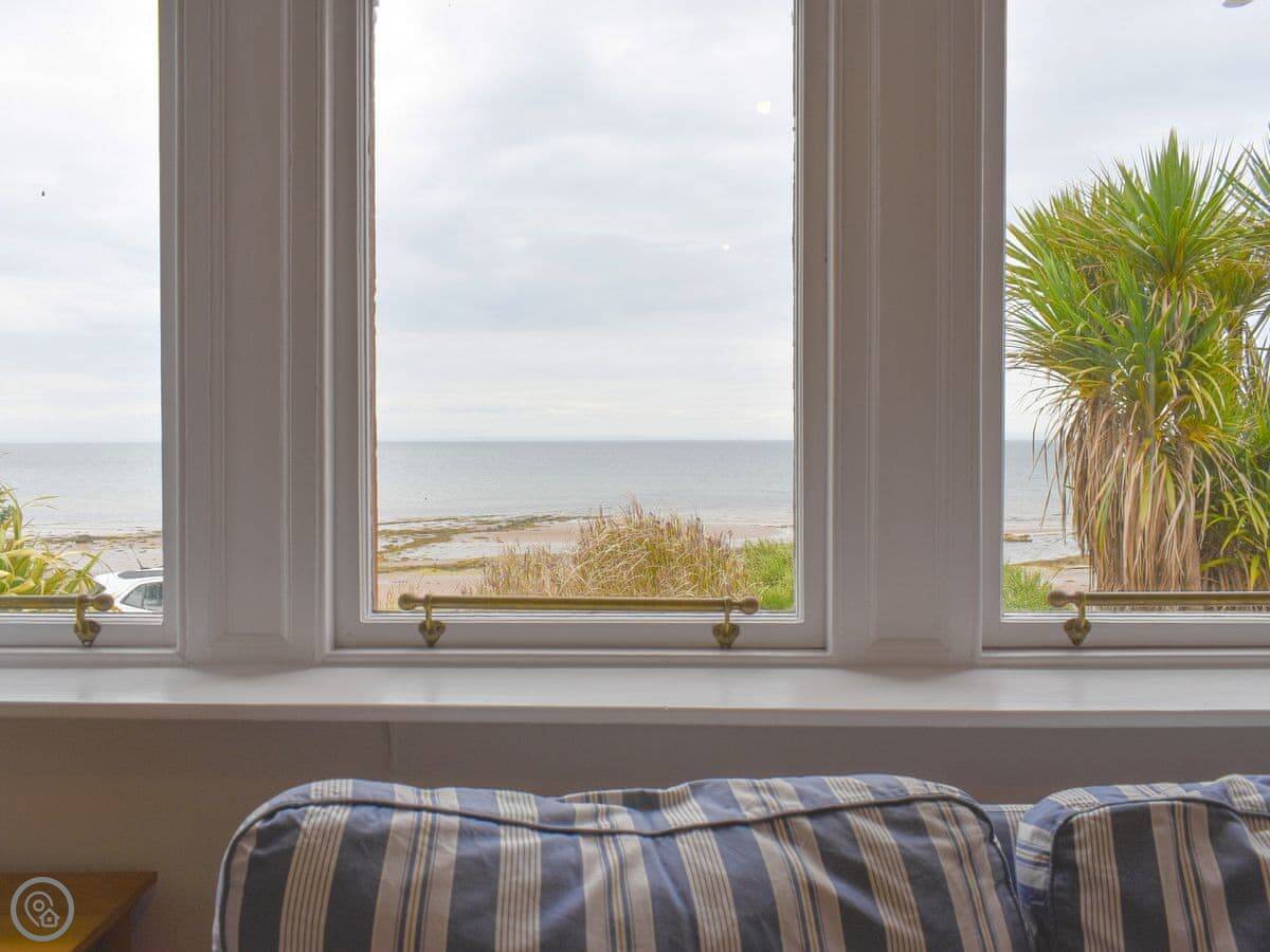 Out the front, there's a bit of garden with seating. You can sit there with a drink and look at the sea. The house is on the road, so you're right in the middle of things. The village shop, a couple of places to eat, a coffee shop, and the golf club are all a short walk away. The beach is just down the path, maybe two minutes.