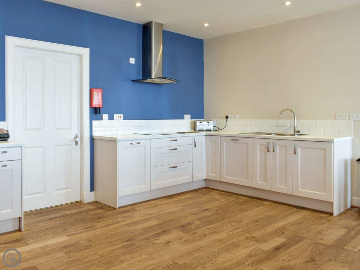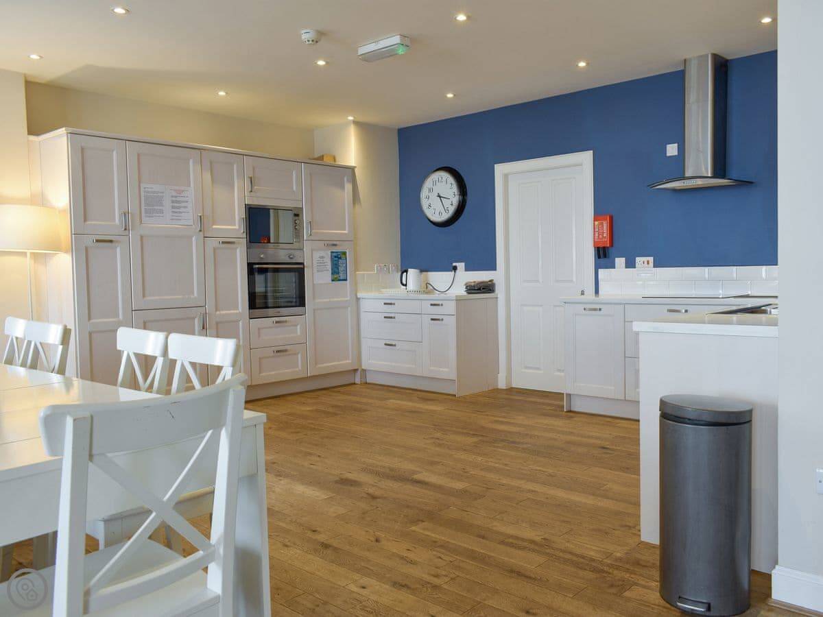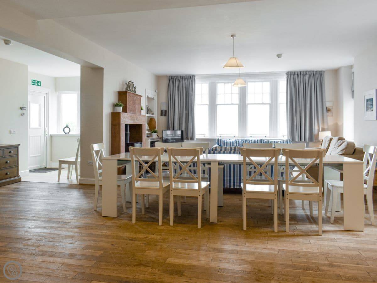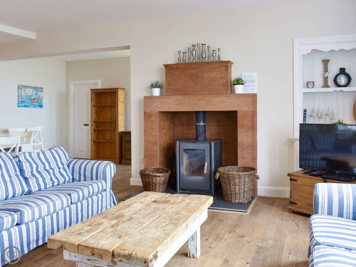 The main thing is the view. The living room is open plan, with big windows looking right out over Whiting Bay and across to the Holy Isle. There's a wood burner for cooler evenings. It's a good space for a group.