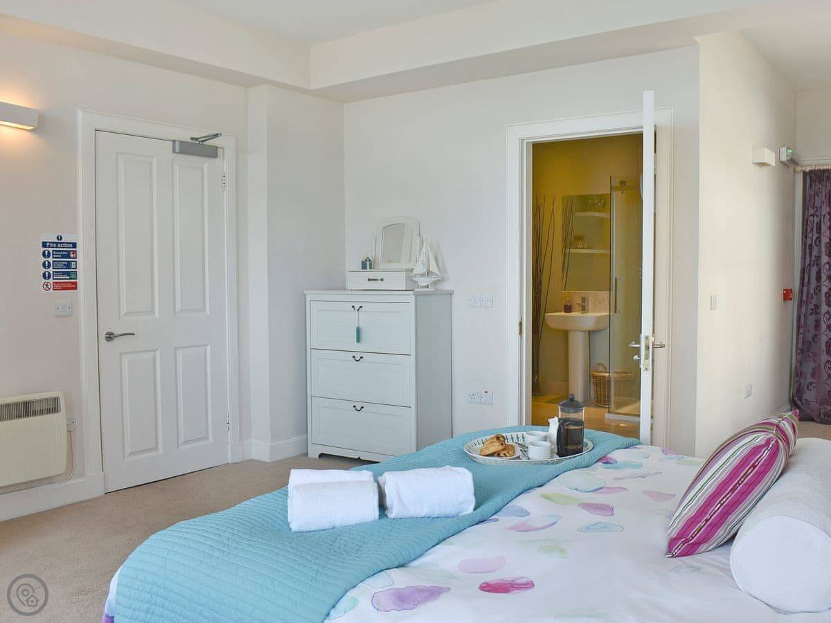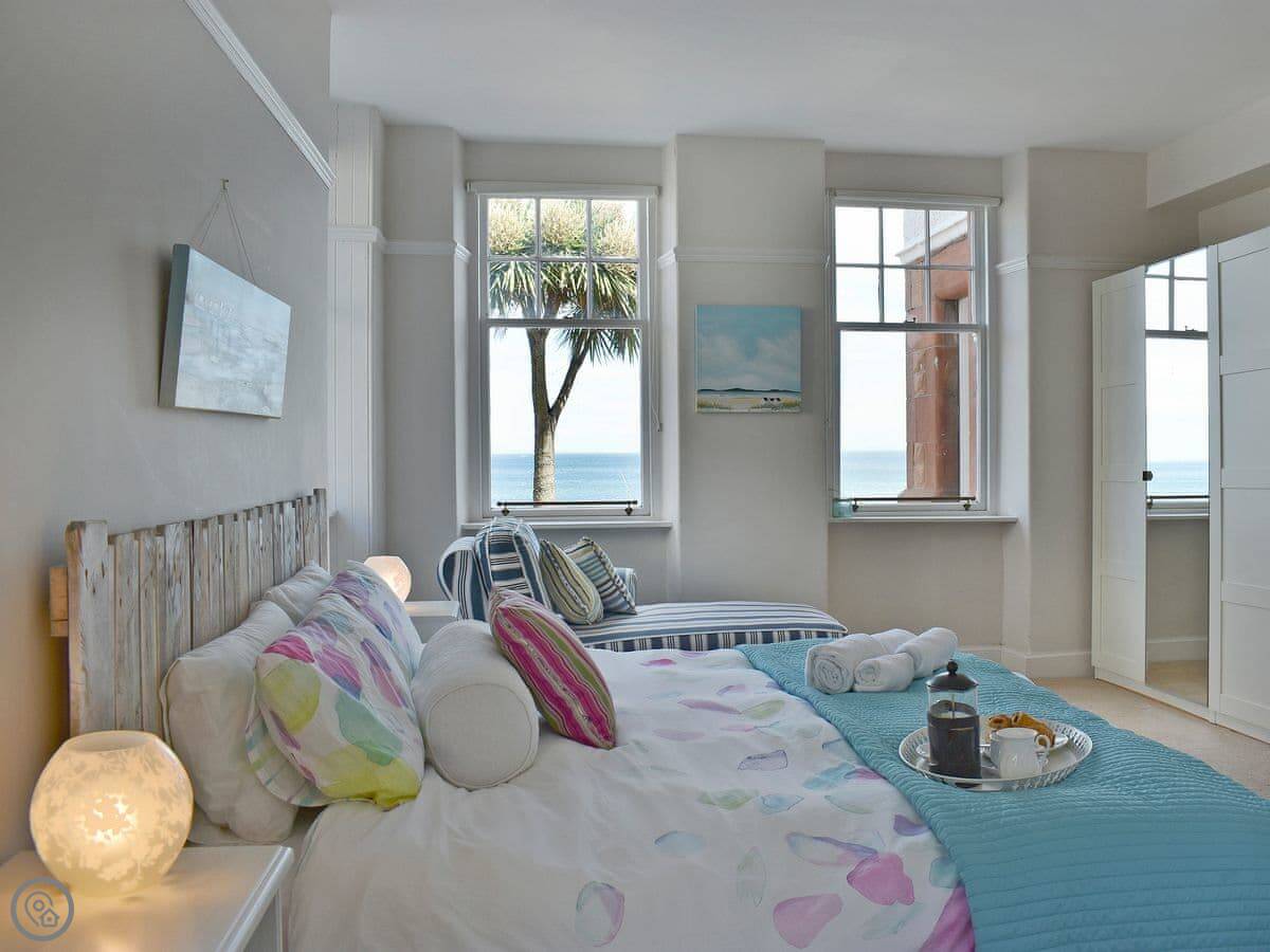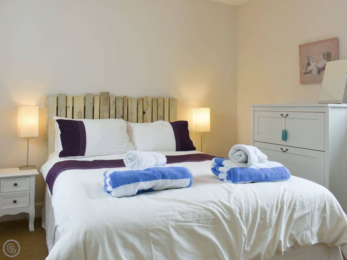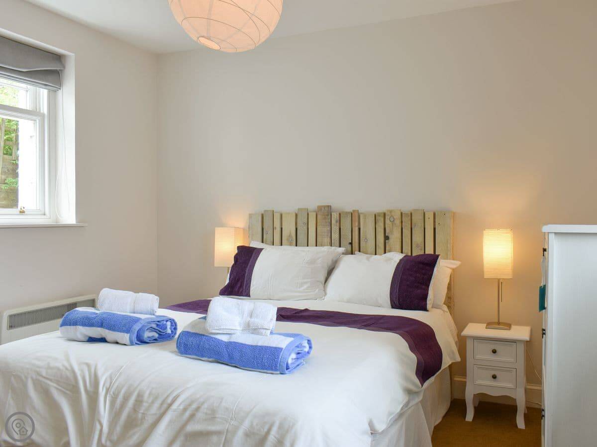 The main thing is the view. The living room is open plan, with big windows looking right out over Whiting Bay and across to the Holy Isle. There's a wood burner for cooler evenings. It's a good space for a group.
