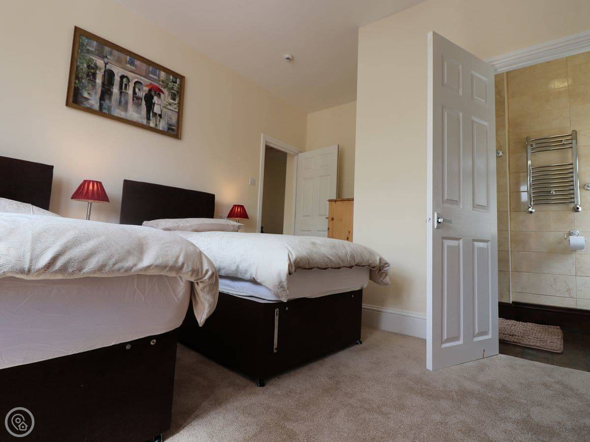 The four bedrooms are located upstairs on the first floor and all benefit from Smart TVs. There is a double bedroom at the back of the property and another double bedroom next to this with its own en-suite shower room. There is also a zip and link twin bedroom which can be configured as 2 single beds or as a superking bed, this bedroom also benefits from an en-suite. The final bedroom at the front of the property has a single bed.