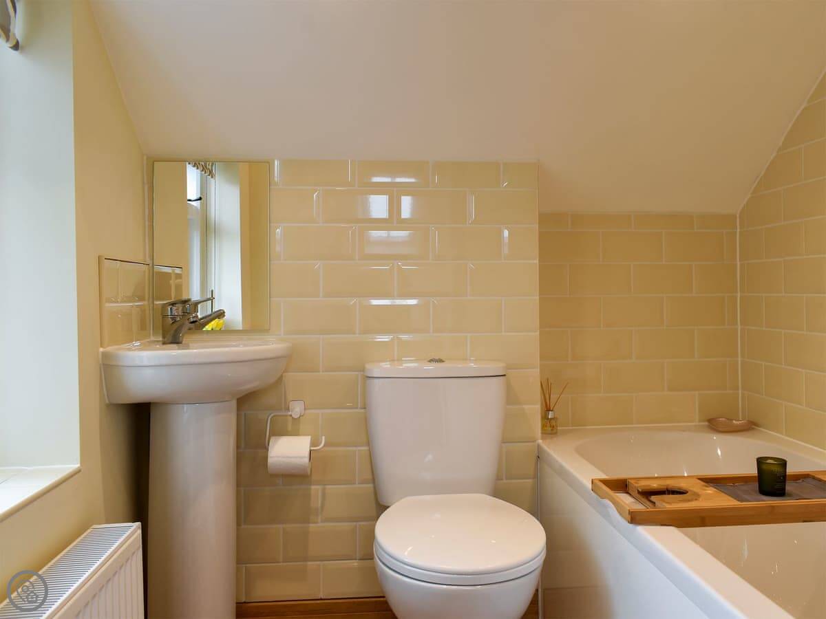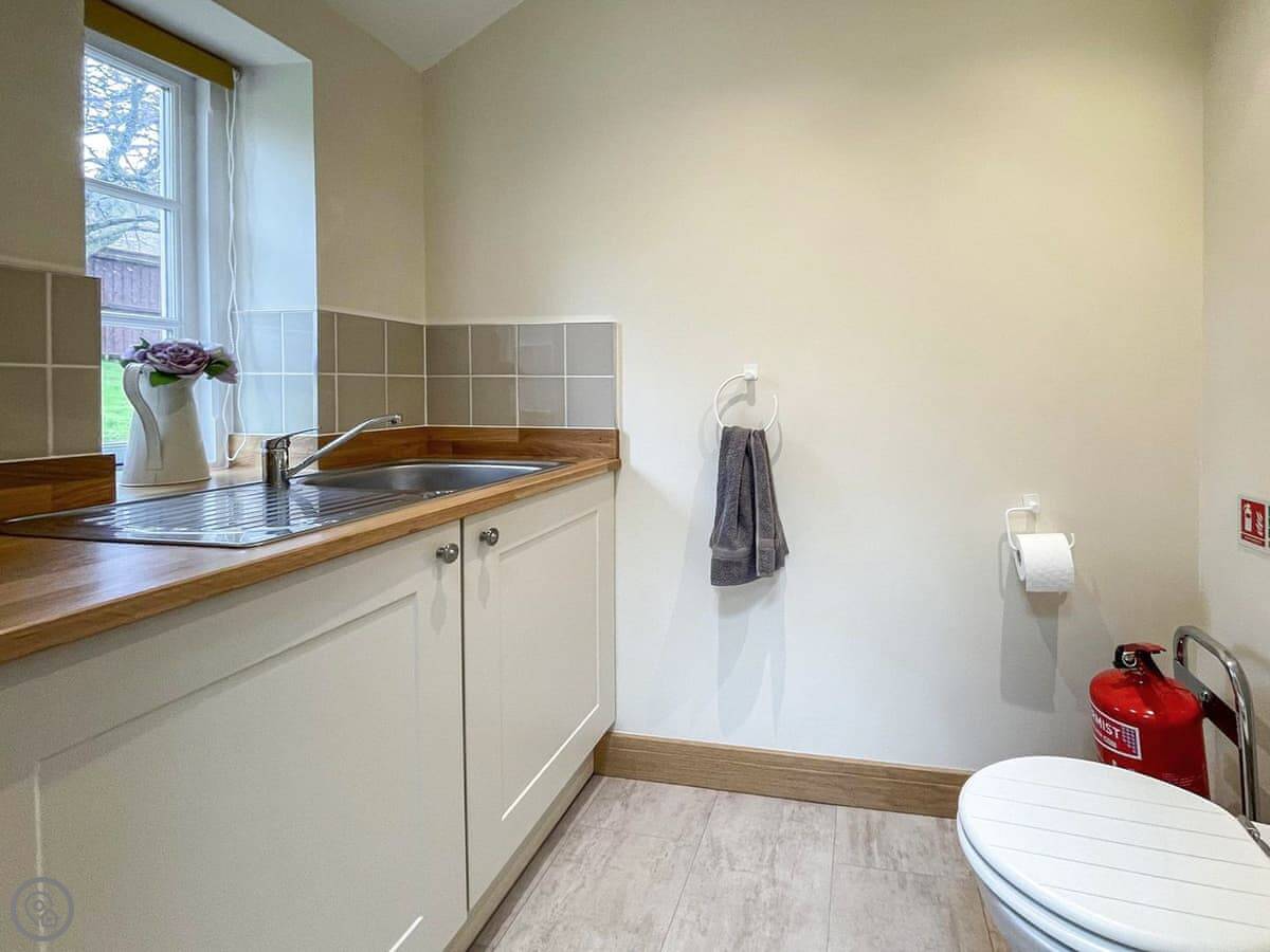 The Old Pump House is on two floors; downstairs there is a kitchen/diner and a separate living room, as well as a utility room with a washing machine and a downstairs toilet. Upstairs there is a comfortable double bedroom with changing area and en-suite bathroom with a bath and a shower attachment.