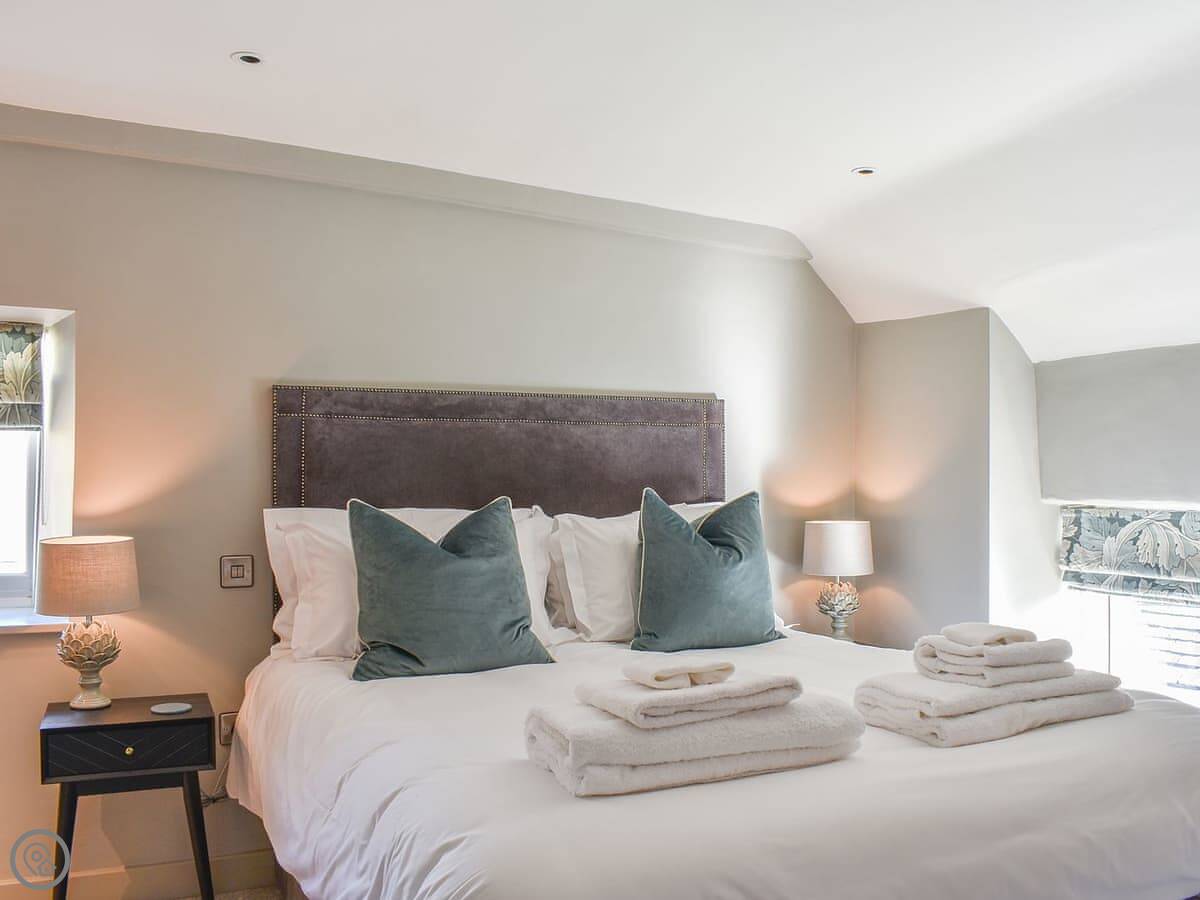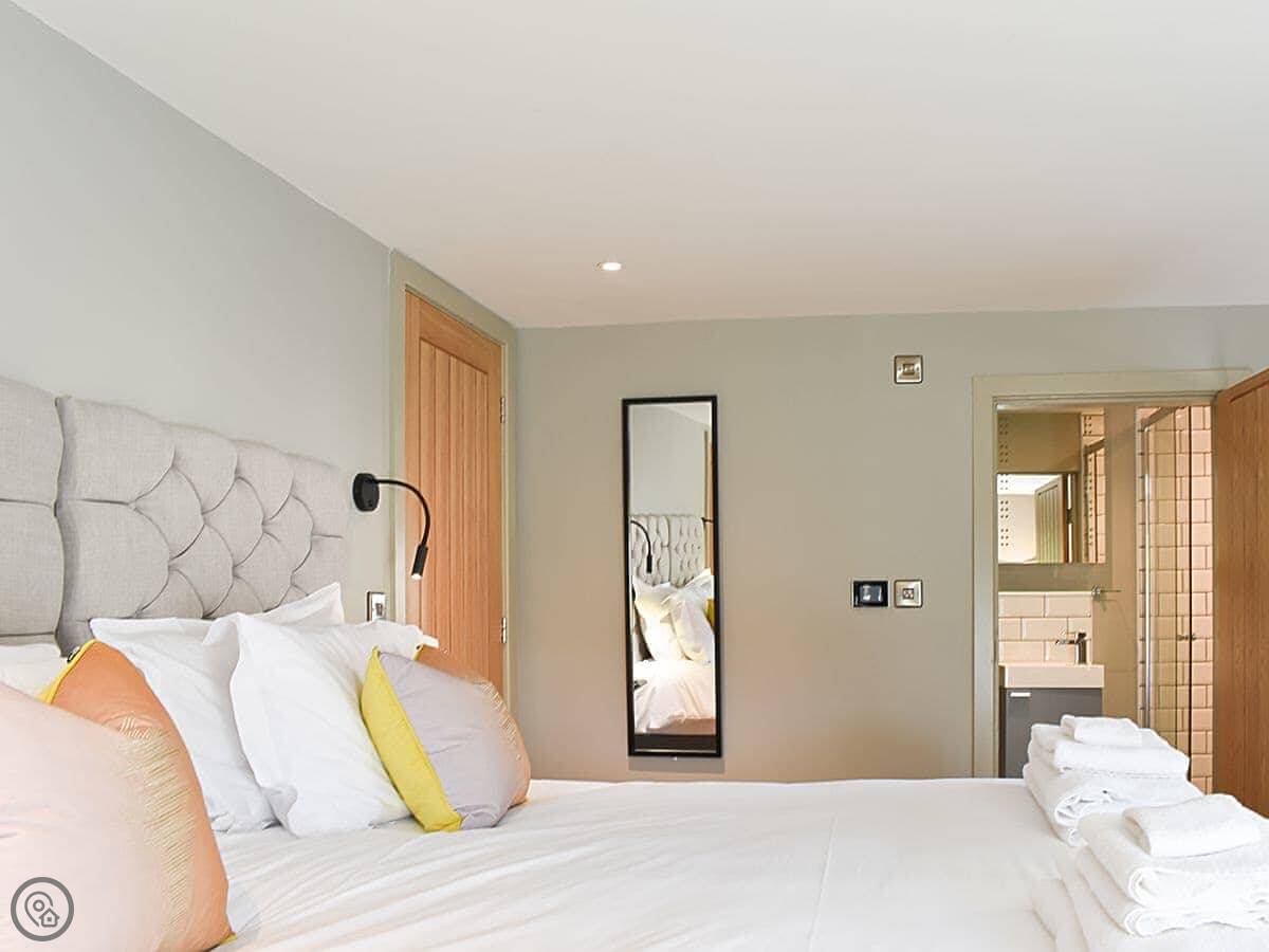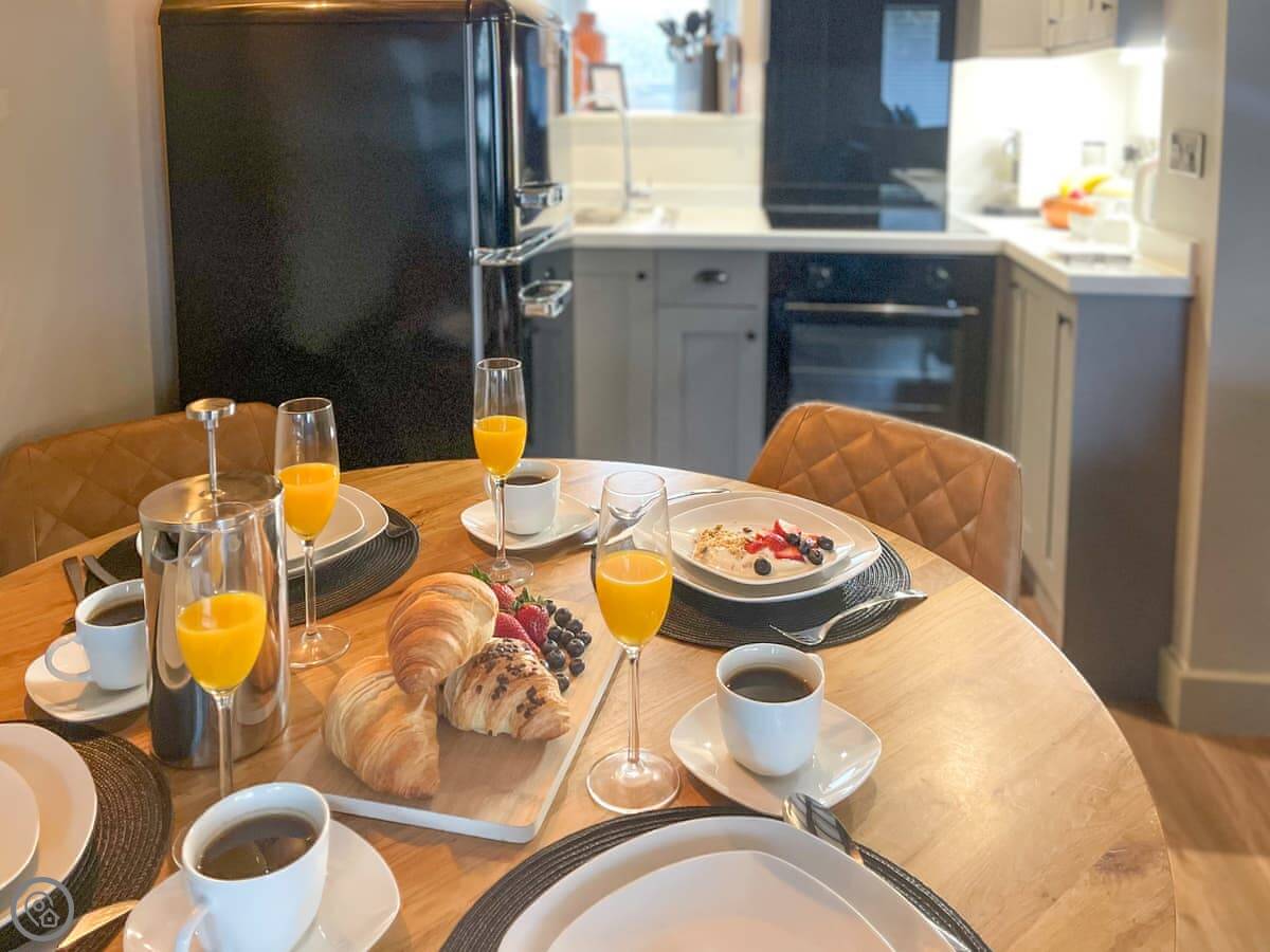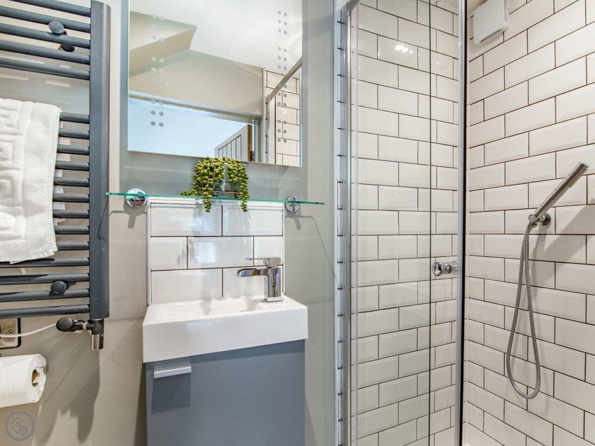 Step inside this boutique style cottage and you will find original features including beautiful wooden beams blending effortlessly with contemporary décor and accessories. A perfect social space with modern stove and Smart TV, perfect to return to and relax and chill after a day of exploring. A cosy dining space tucks under the staircase, and a compact shaker style kitchen is well-equipped with everything you need to rustle up a tasty brunch or supper. There’s even a handy Nespresso machine to make your morning brew! And so to bed…upstairs two beautiful bedrooms with plush carpets and tasteful furnishings, luxury linen and deep mattresses. To the first floor is a super kingsize zip and link bed which can be twin beds on request giving greater flexibility. It is decorated in relaxing hues of grey and lemon, with en-suite facilities underfloor heating. On the second floor is a kingsize bedroom, with vaulted ceiling and beams, a soothing decorative palette, built in wardrobe space and en-suite facilities and mood lighting. Outside is a raised seating area which catches the best of the afternoon sun and a welcome spot to enjoy a cup of Yorkshire tea after your day of exploring.