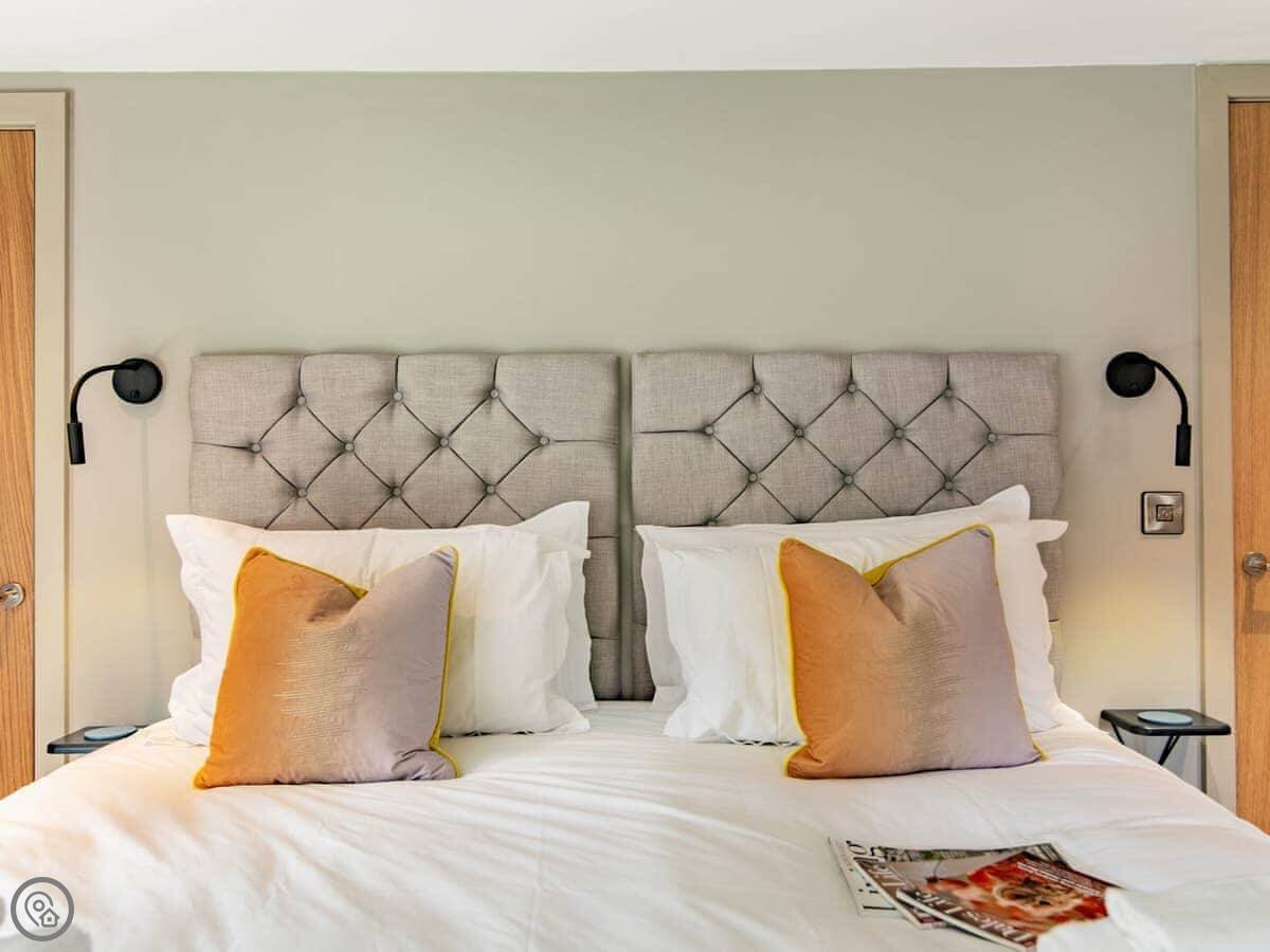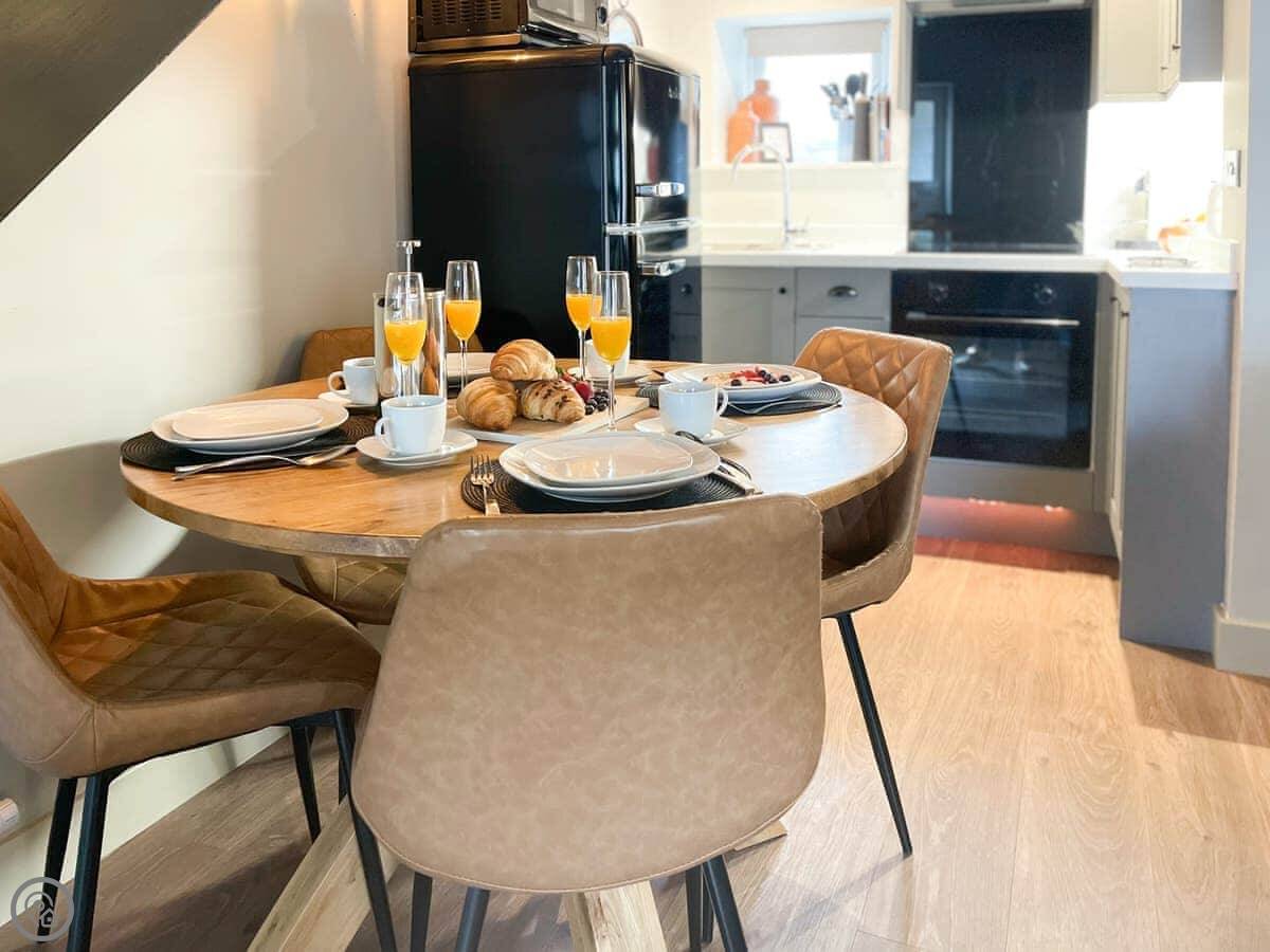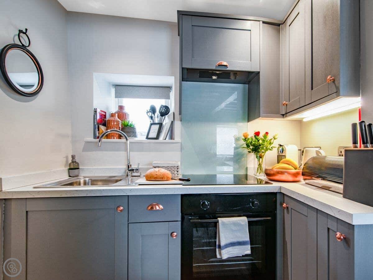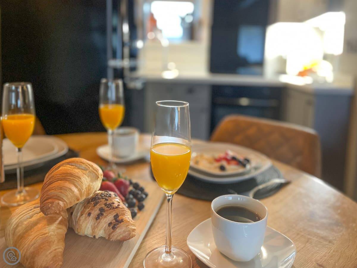Step inside this boutique style cottage and you will find original features including beautiful wooden beams blending effortlessly with contemporary décor and accessories. A perfect social space with modern stove and Smart TV, perfect to return to and relax and chill after a day of exploring. A cosy dining space tucks under the staircase, and a compact shaker style kitchen is well-equipped with everything you need to rustle up a tasty brunch or supper. There’s even a handy Nespresso machine to make your morning brew! And so to bed…upstairs two beautiful bedrooms with plush carpets and tasteful furnishings, luxury linen and deep mattresses. To the first floor is a super kingsize zip and link bed which can be twin beds on request giving greater flexibility. It is decorated in relaxing hues of grey and lemon, with en-suite facilities underfloor heating. On the second floor is a kingsize bedroom, with vaulted ceiling and beams, a soothing decorative palette, built in wardrobe space and en-suite facilities and mood lighting. Outside is a raised seating area which catches the best of the afternoon sun and a welcome spot to enjoy a cup of Yorkshire tea after your day of exploring.