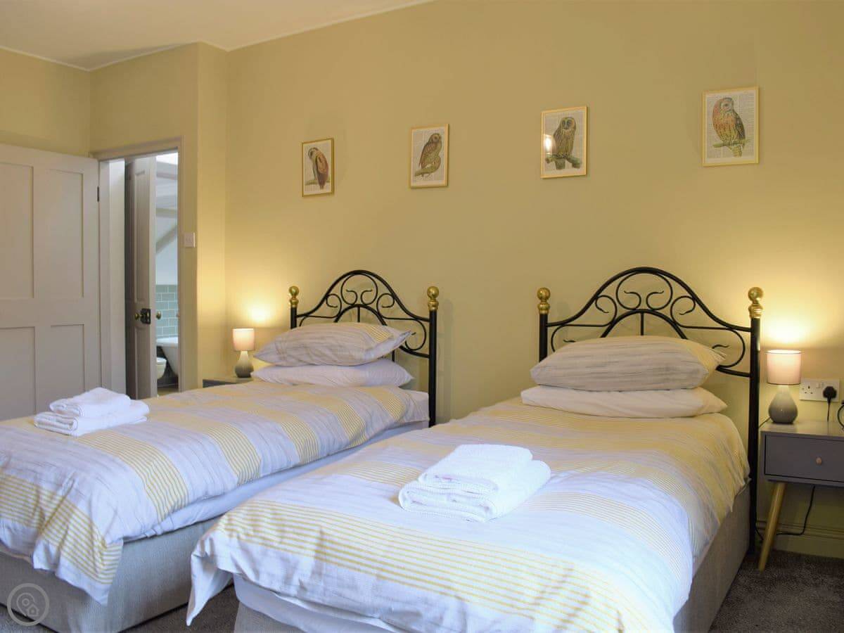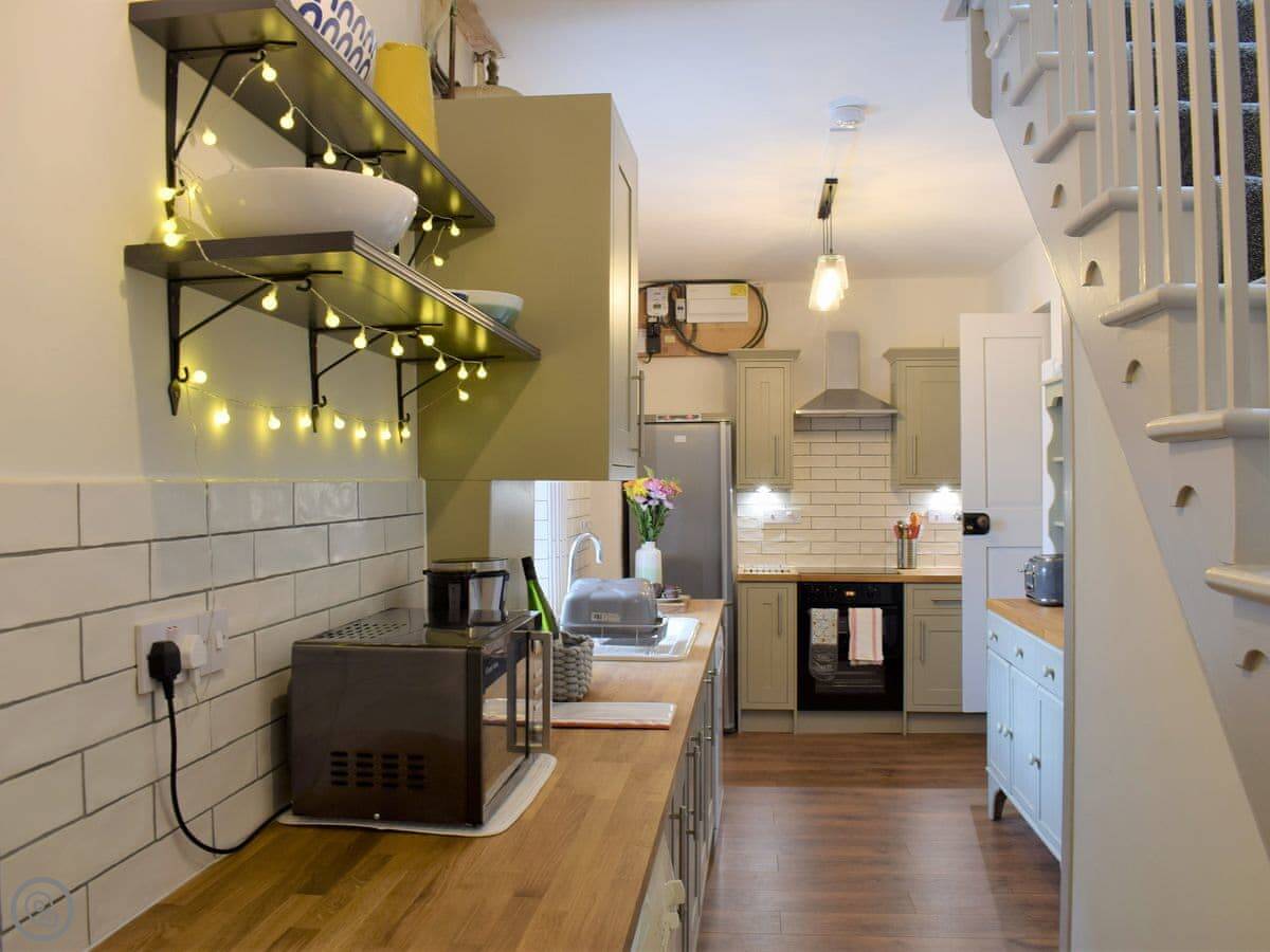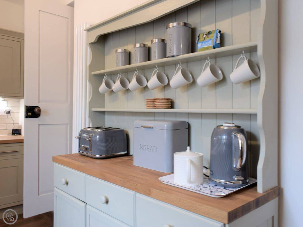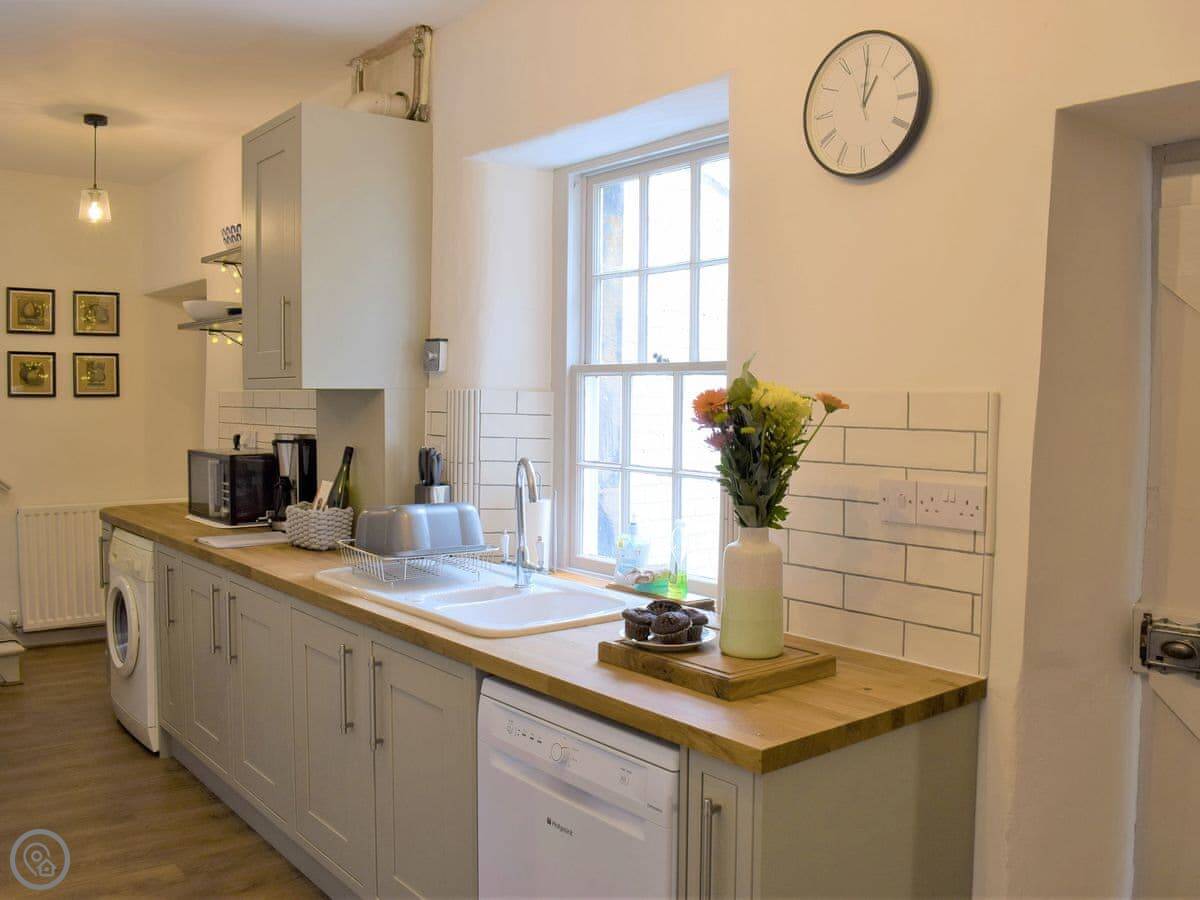 You get a garden with a patio. There's a chiminea out there. Inside, there's a wood burner in the main living room and a second living area if people want some separate space. It has all the usual things: washing machine, dishwasher, WiFi. Bedding and towels are included. You can bring up to two dogs.