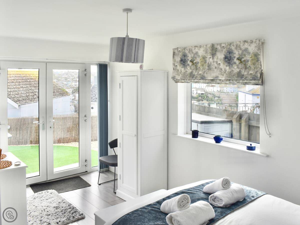The house is just outside the main town centre. It’s a walk down the hill to the harbour, which means you’re not right in the noise but you can still get to everything easily. The patio garden is enclosed.