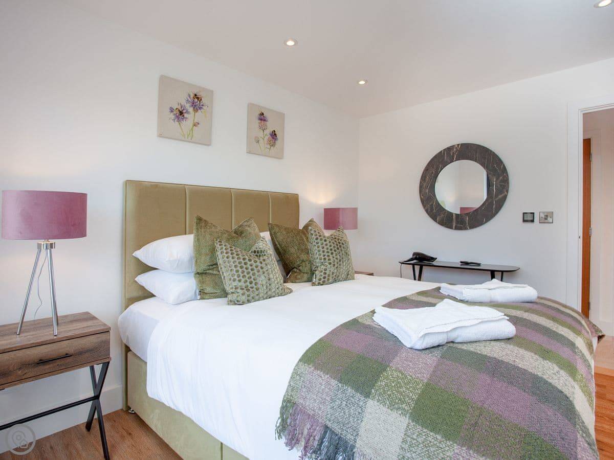 It's a new build, finished in 2021, so everything's modern and works properly. It's got a 5 Star rating, which means it's well-equipped and comfortable. It sleeps six, in three bedrooms. Two have king-size beds, one has a super king with its own en-suite shower room. There's also a family bathroom upstairs.