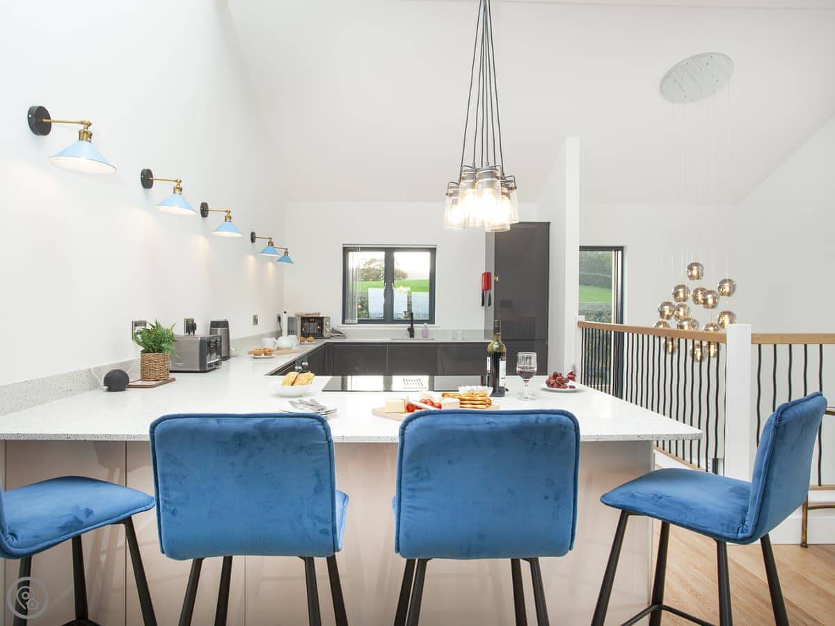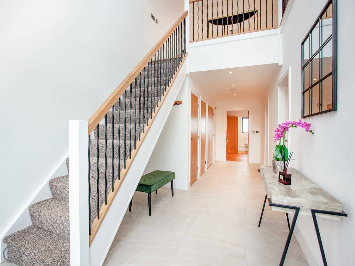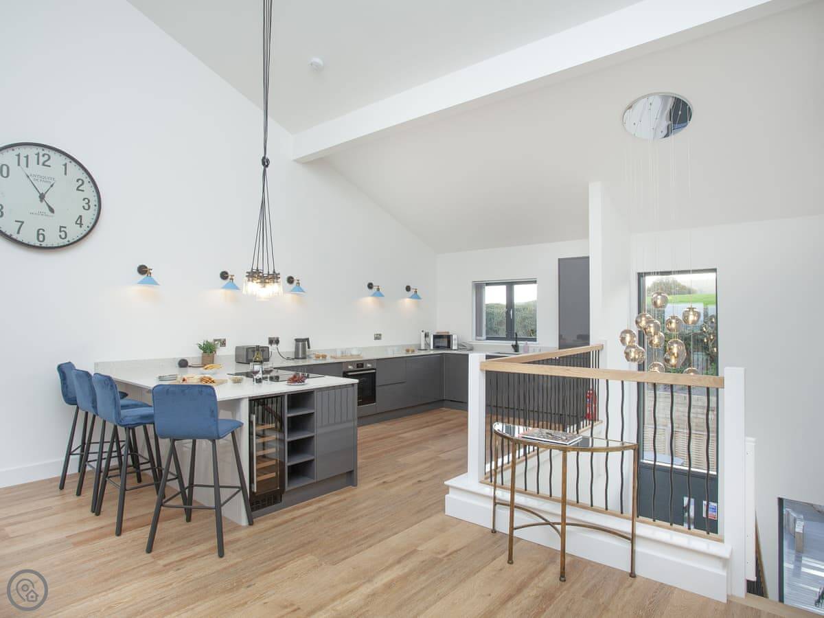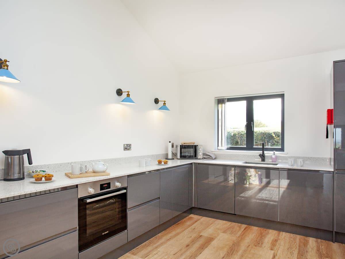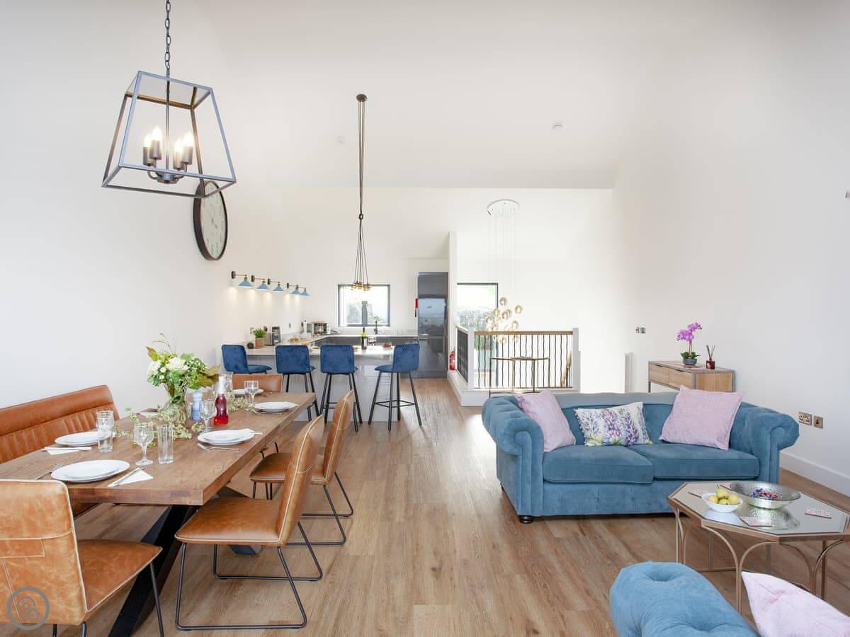 It's got a 5 Star rating. That means it's well equipped and finished to a high standard. Underfloor heating throughout, dishwasher, washing machine, WiFi. There's an electric vehicle charger on site. One well-behaved dog is welcome.