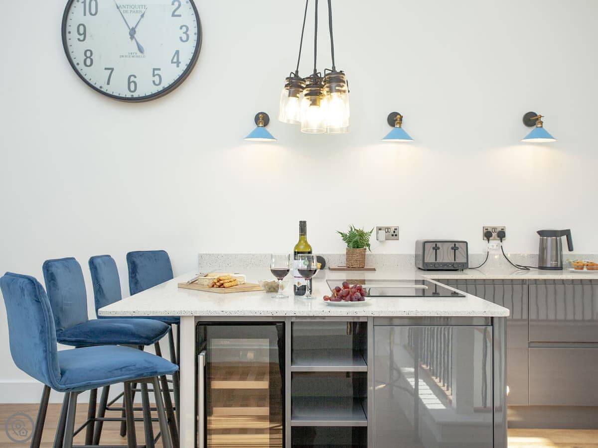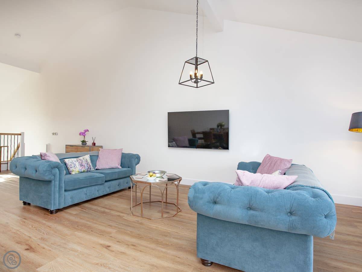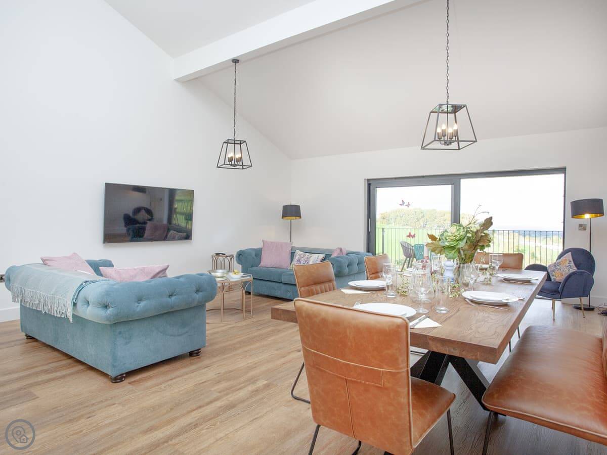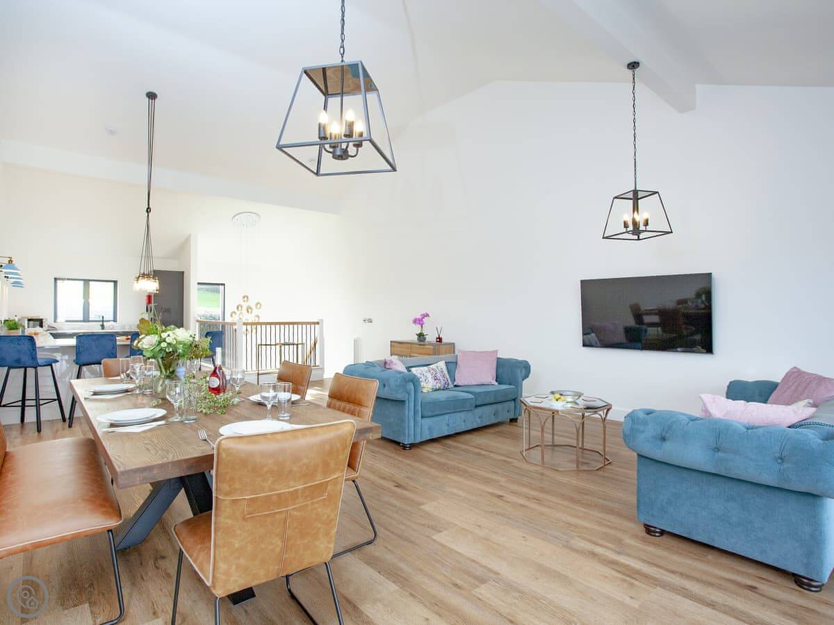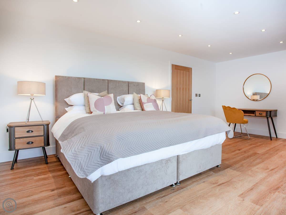 It's got a 5 Star rating. That means it's well equipped and finished to a high standard. Underfloor heating throughout, dishwasher, washing machine, WiFi. There's an electric vehicle charger on site. One well-behaved dog is welcome.