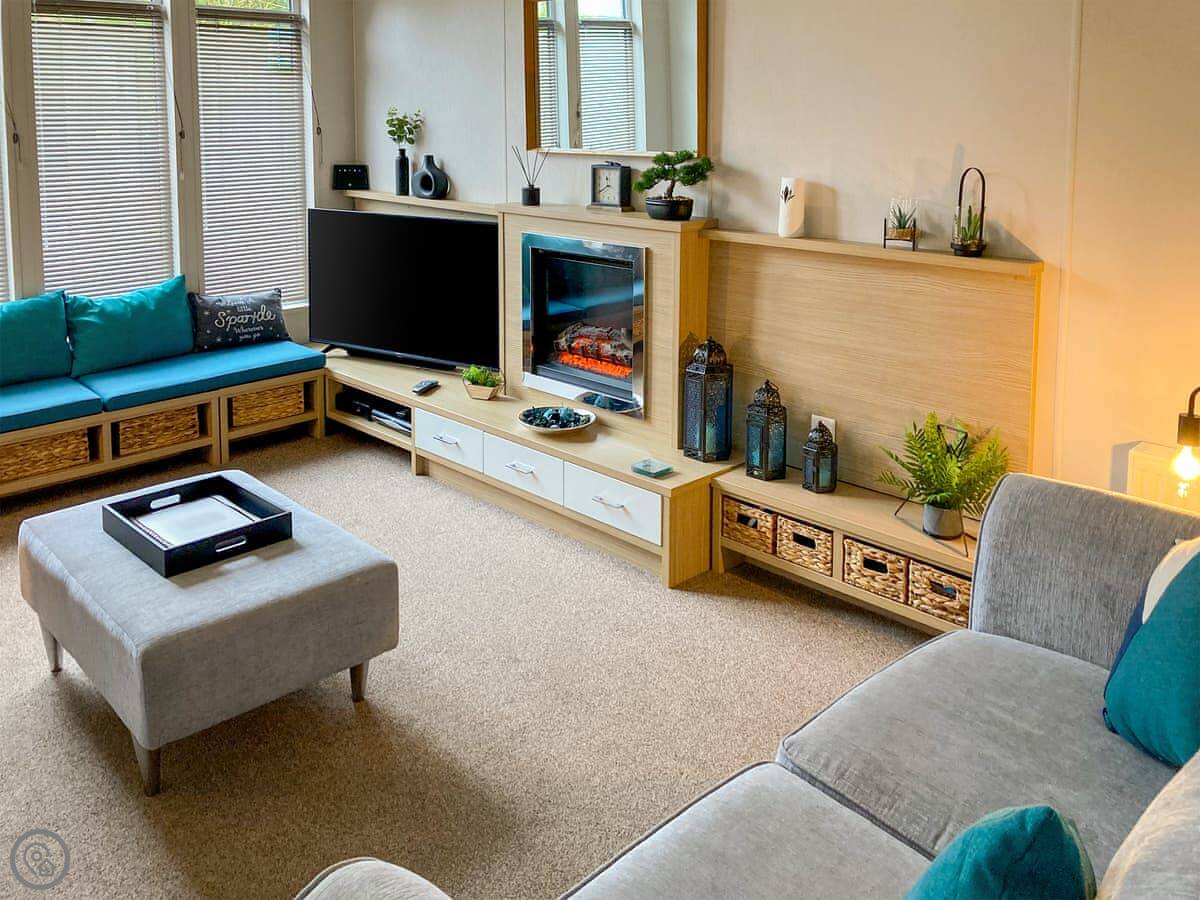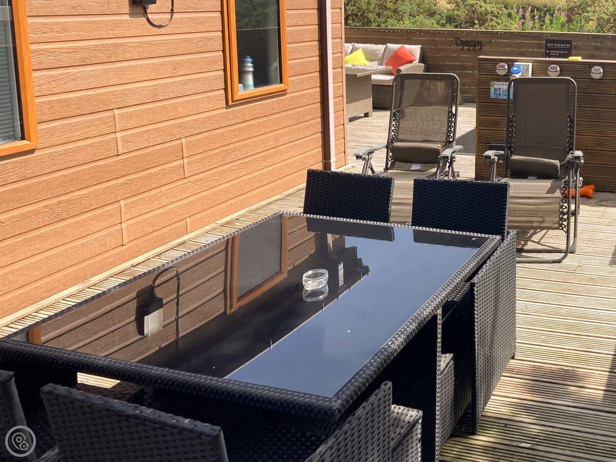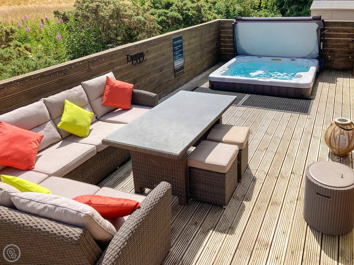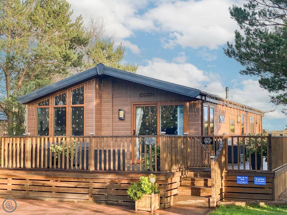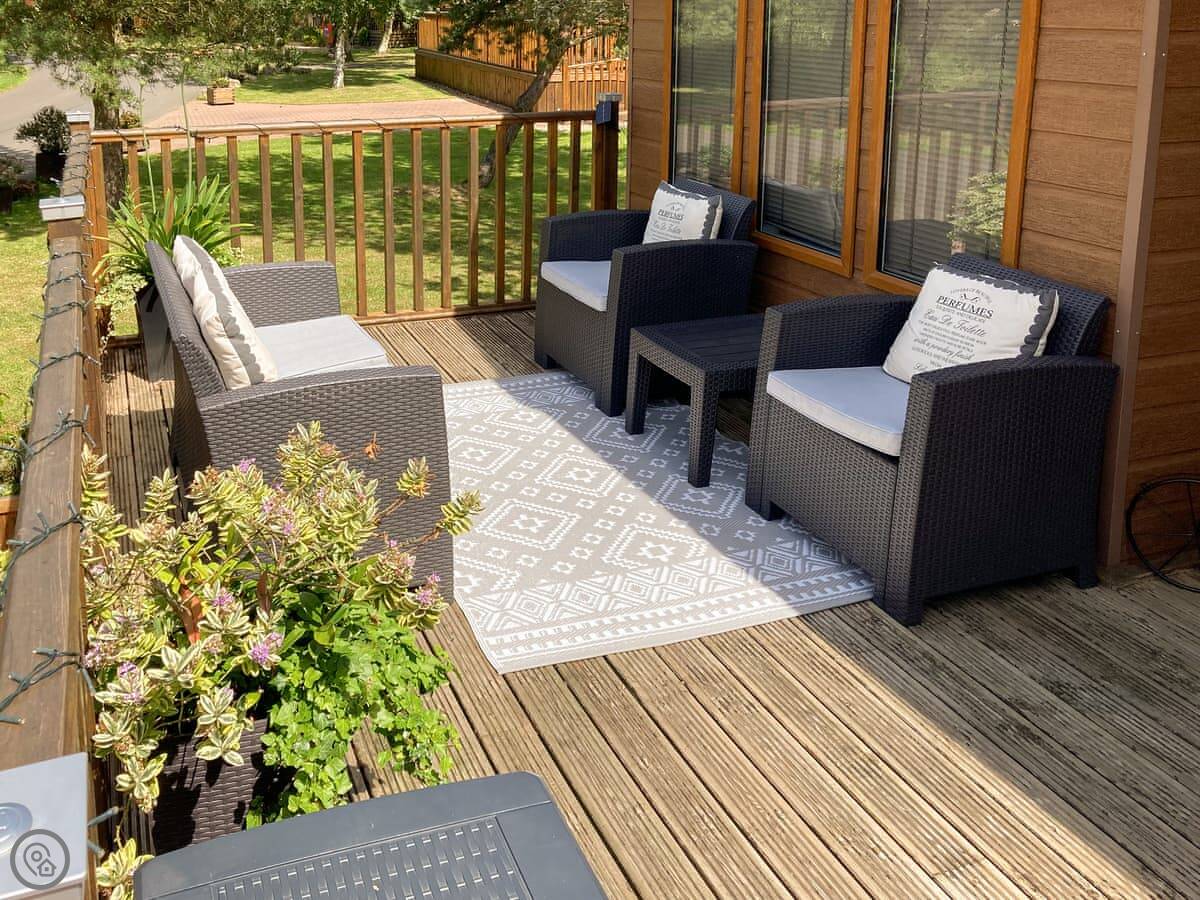 With a bubbling hot tub awaiting your arrival, Forget-me-Not Lodge is perfect for couples or friends who want to spoil themselves for a relaxing holiday or a well-deserved short break. it is located on Felmoor Country Park in the heart of Northumberland, close to the stunning Heritage coast with miles of golden sandy beaches and yet in a wonderful country setting. Forget-me-Not Lodge has been carefully designed inside to provide maximum comfort for up to four adults with two bathrooms and two king size bedrooms. The glorious, large, wraparound decked area offers varied sitting areas and catches the sun from morning to night. To the rear in a secluded position is the sunken hot tub, ready and waiting for you, with ample seating and tables where you can enjoy a glass of wine whilst relaxing on your holiday.