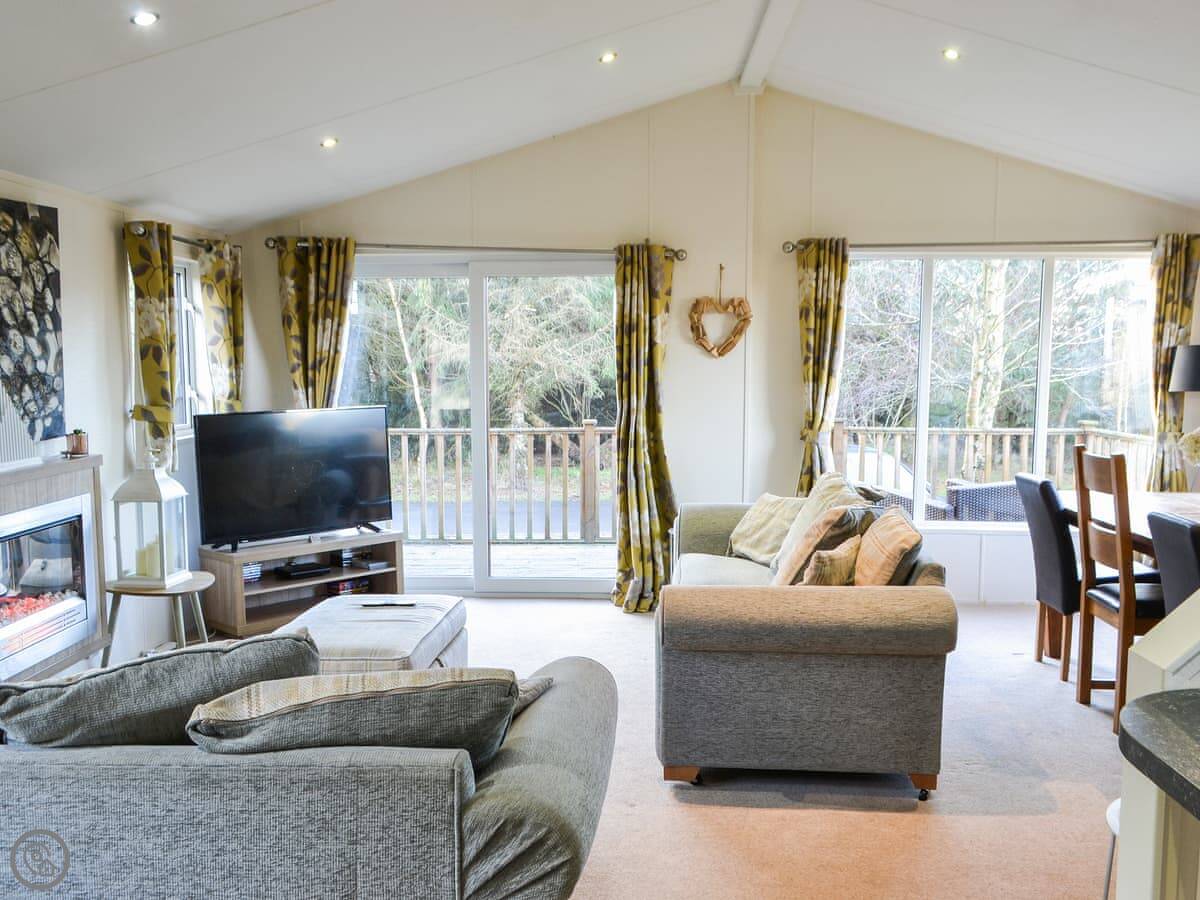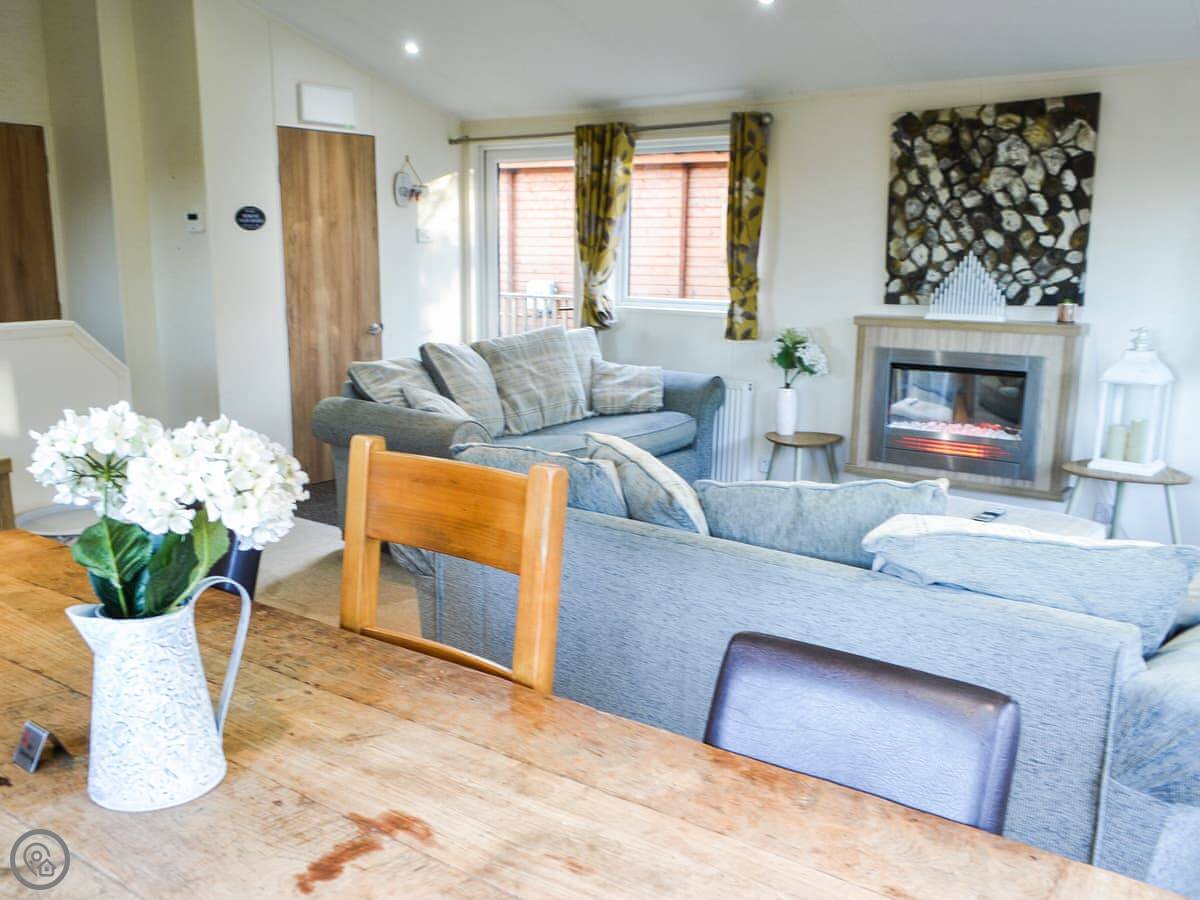 This idyllic lodge is a perfect place in which to relax and unwind, with a wonderful private hot tub tucked around the rear of the raised deck. Oakwood Lodge is in a super position on a 40-acre park, not far from the restaurant and café on-site. Offering plenty of privacy, the hot tub is an ideal way to soak and relax after a day exploring this magnificent county, with miles of golden unspoilt beaches and friendly villages. Meander around the small on-site lake and watch the resident swans and wildlife, then treat yourself to a lovely meal and drink in the restaurant and bar.