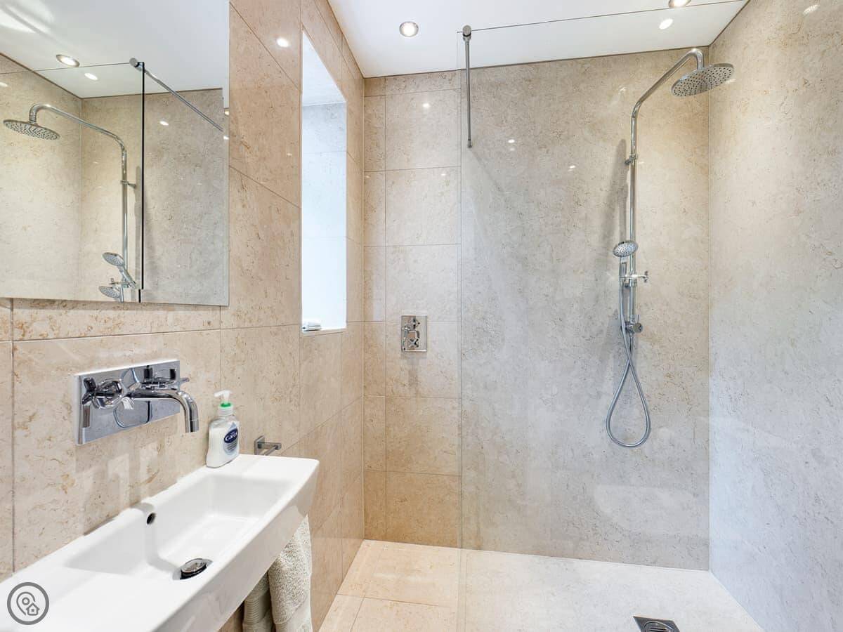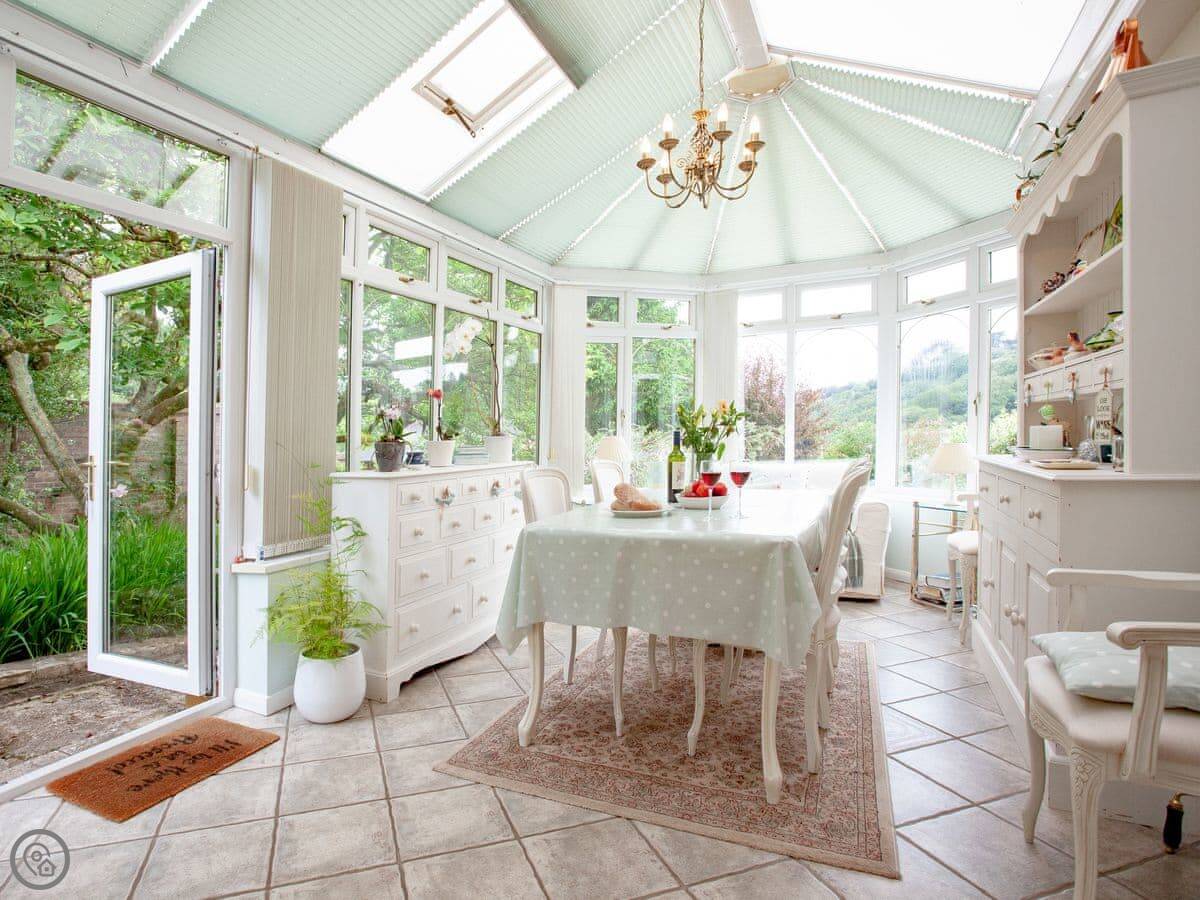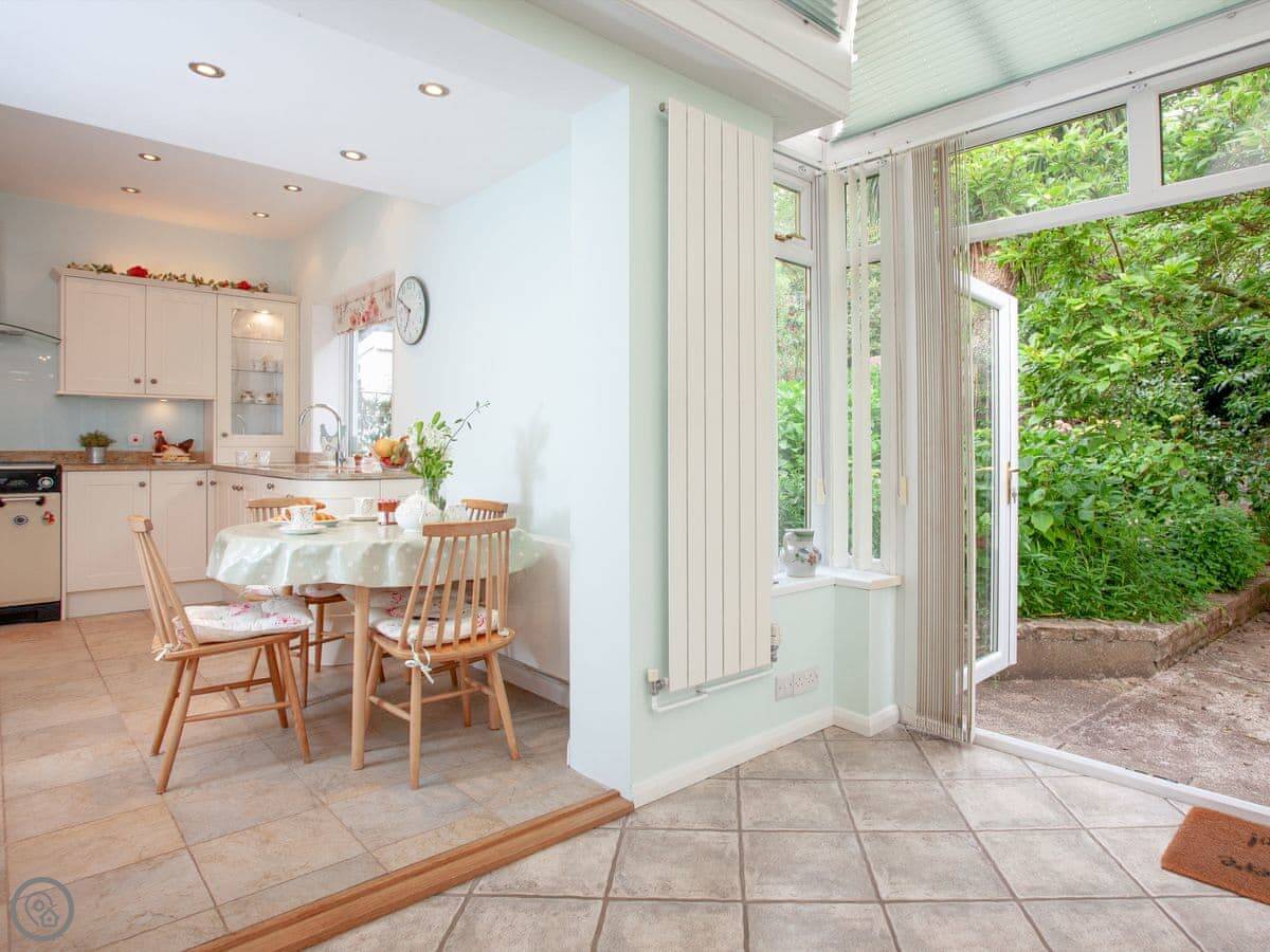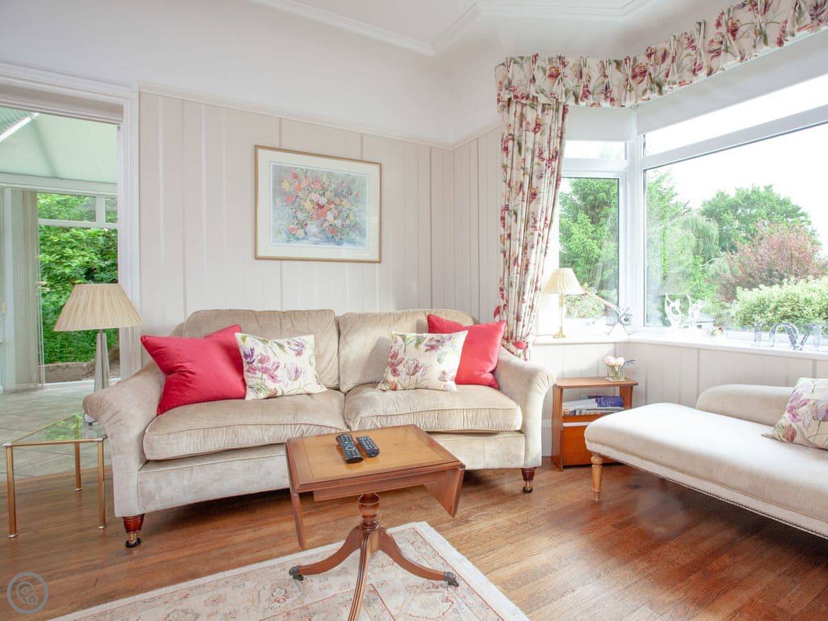 As you enter Glenridge Apartment you find yourself in the porch area, a very useful room for those sandy shoes after a long day at the beach. Into the hallway of the property and to your left is the fully equipped kitchen, with solid stone worktops and a large range-style induction cooker, guests will have no problem cooking up a meal here if not wanting to venture out. The kitchen leads around into the large conservatory/dining area, flooded with light and a very social space. There are doors leading from the conservatory/dining area, as well as from the main hallway leading into the large living area. This room looks out over the pleasant lawned garden with various beautiful flowers and shrubs, and it also benefits from a Smart TV, chaise lounge, sofa seating and armchair seating. The bedroom is just down the hallway and contains a double bed with plenty of built-in storage for guests to use and en-suite with shower bath. The garden area is partly patio with table and chair seating, great for sitting out and enjoying the last of the evening sun. There is also a large well maintained lawn area. Glenridge Apartment is tastefully decorated and has a large amount of space for the two guests it accommodates, perfect for couples and individuals alike.