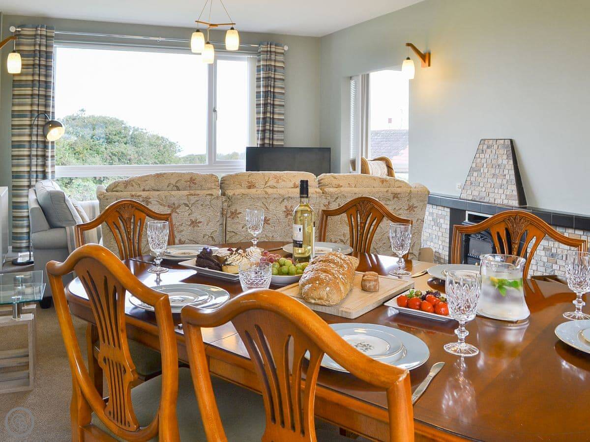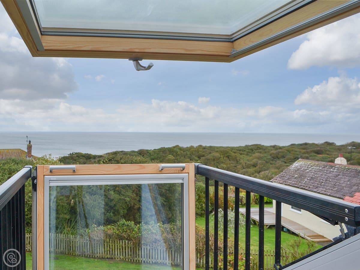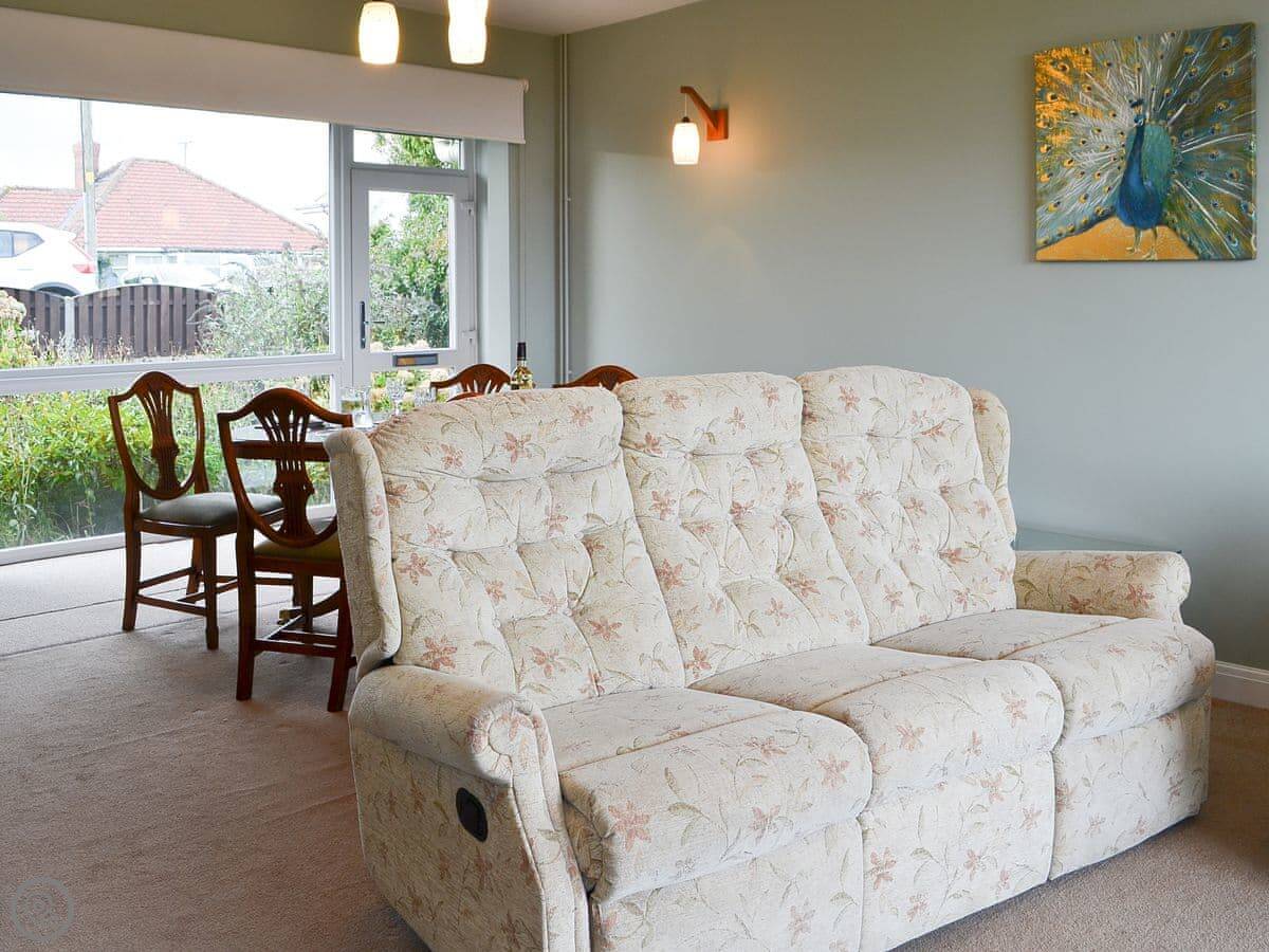 The living room has those sea views. There's a sun room off the kitchen with more seating. The sofas are arranged to face the window. One of them is a sofa bed, which is where the extra two people would sleep.