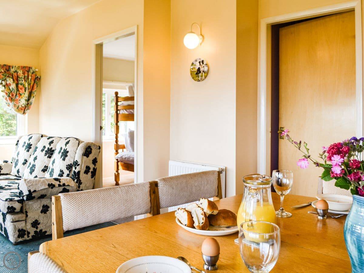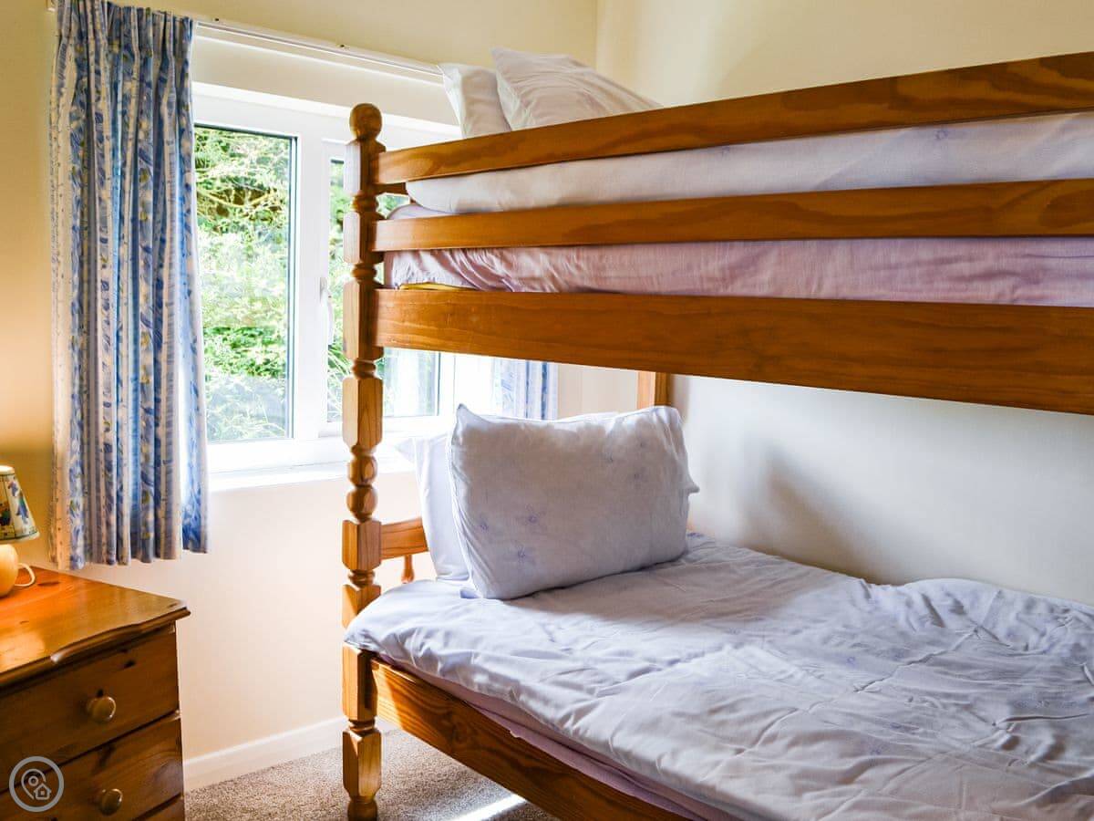 It sleeps four. Two bedrooms, one is a double and the other has bunk beds. One shower room. It's got a 3 Star rating, so it's clean and comfortable but not fancy. Everything's on one level.
