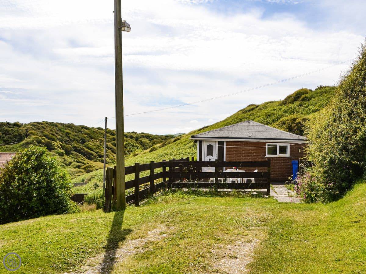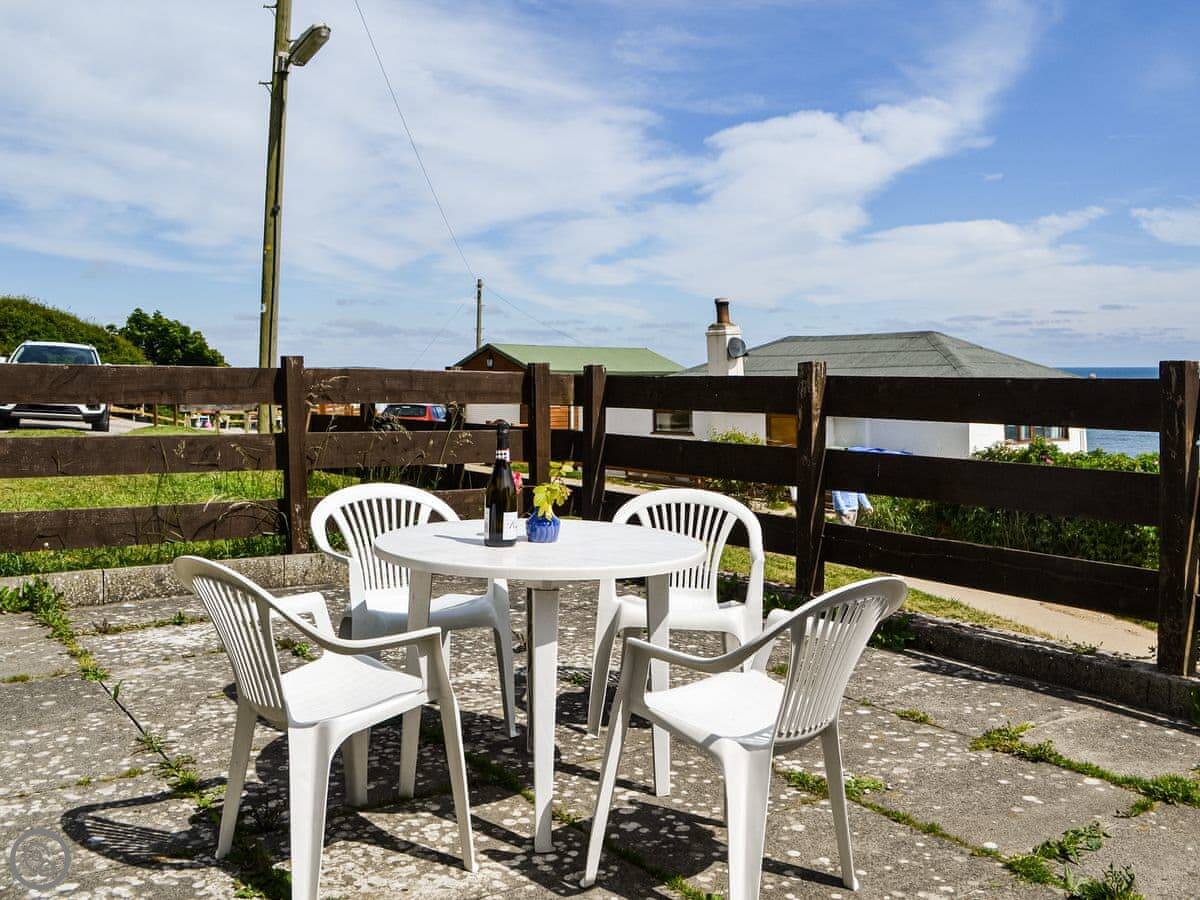 Outside, there's a small enclosed patio with a table and chairs. It's a sun trap in the morning. The beach is about thirty seconds' walk through the gate. The sand is great for kids and dogs.