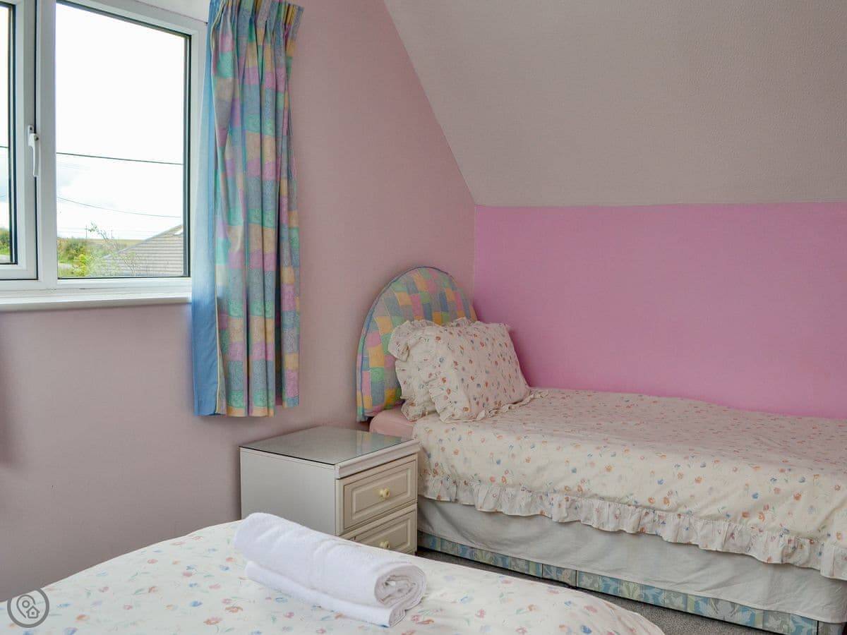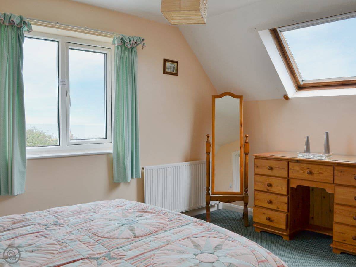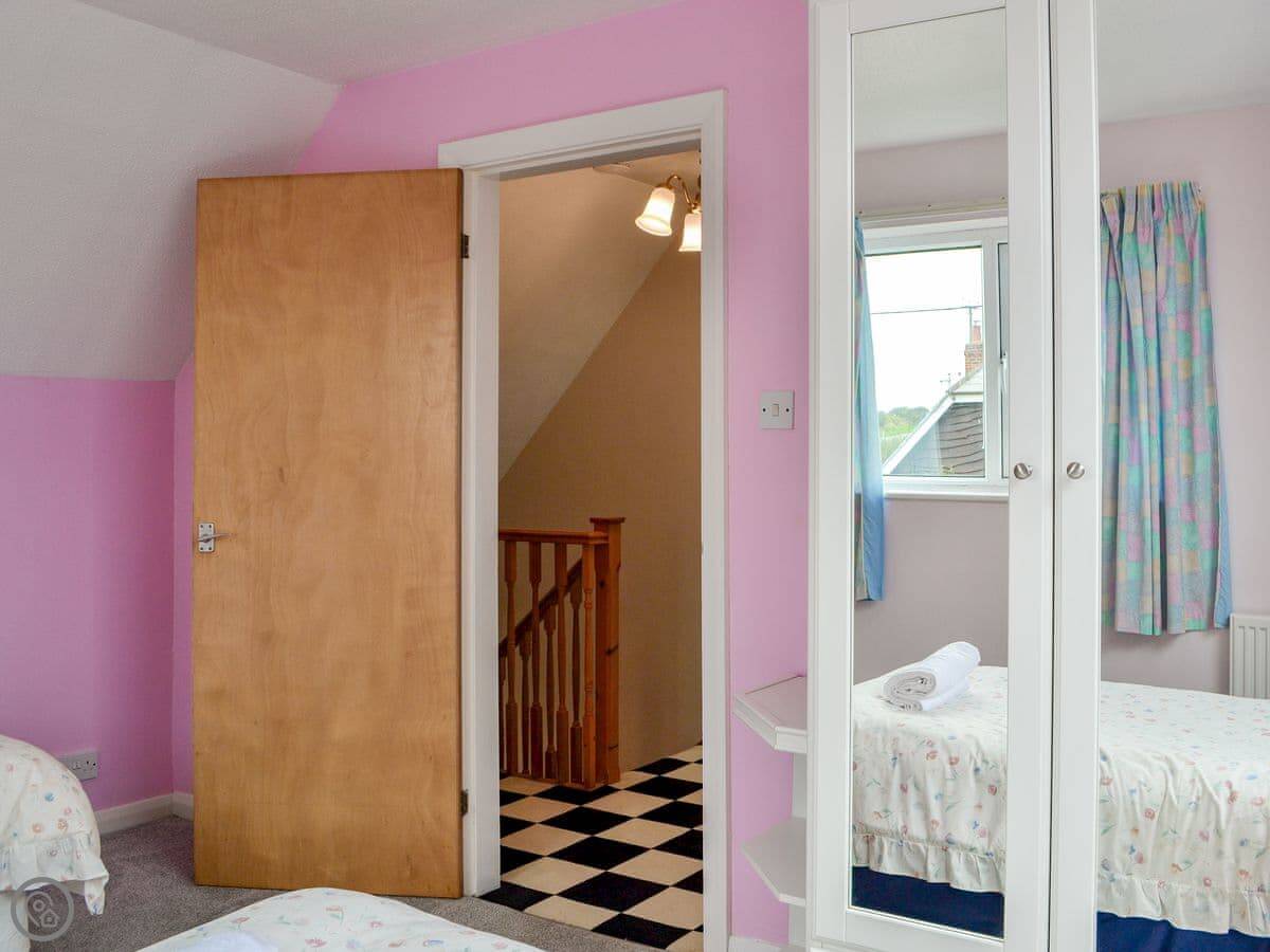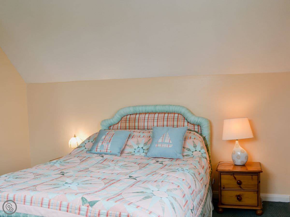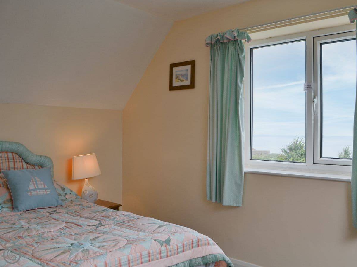 There's a double bedroom and a bathroom on the ground floor. Upstairs there are two more bedrooms. They share a shower room that's between them, a Jack and Jill style. Both upstairs rooms have sea views.