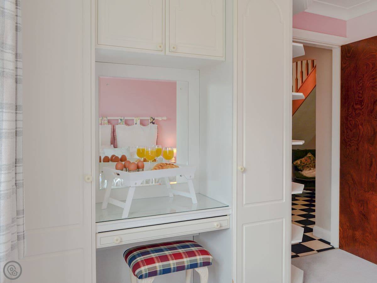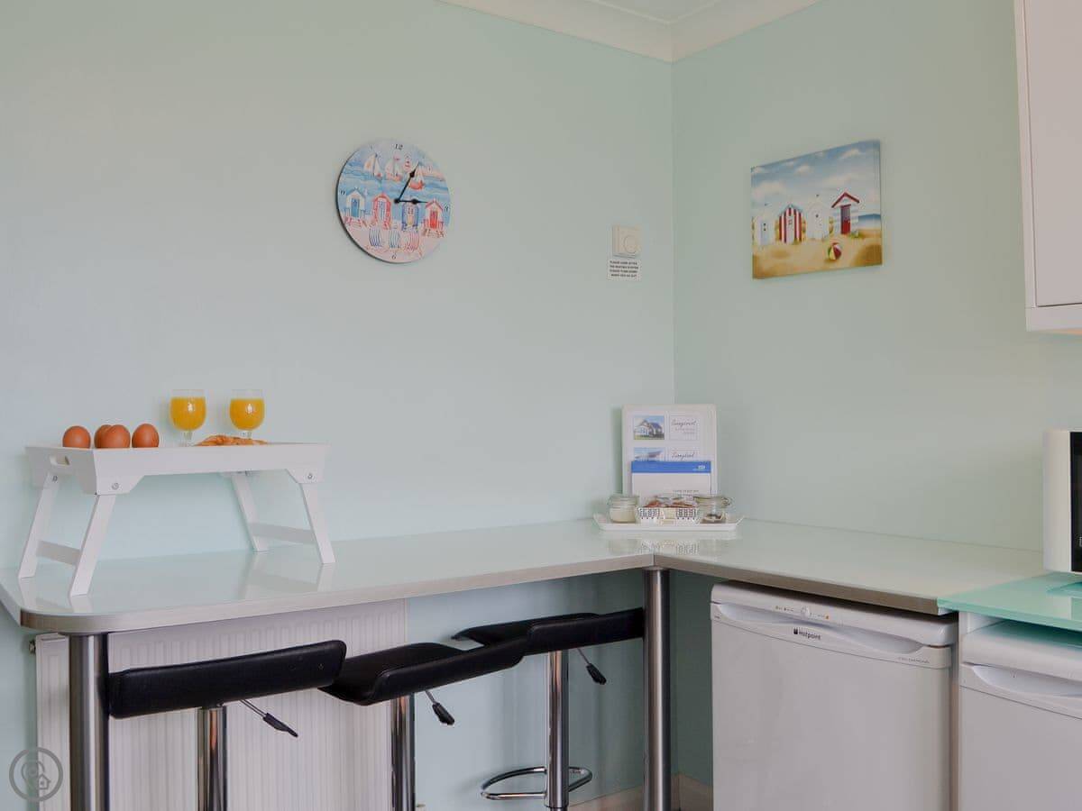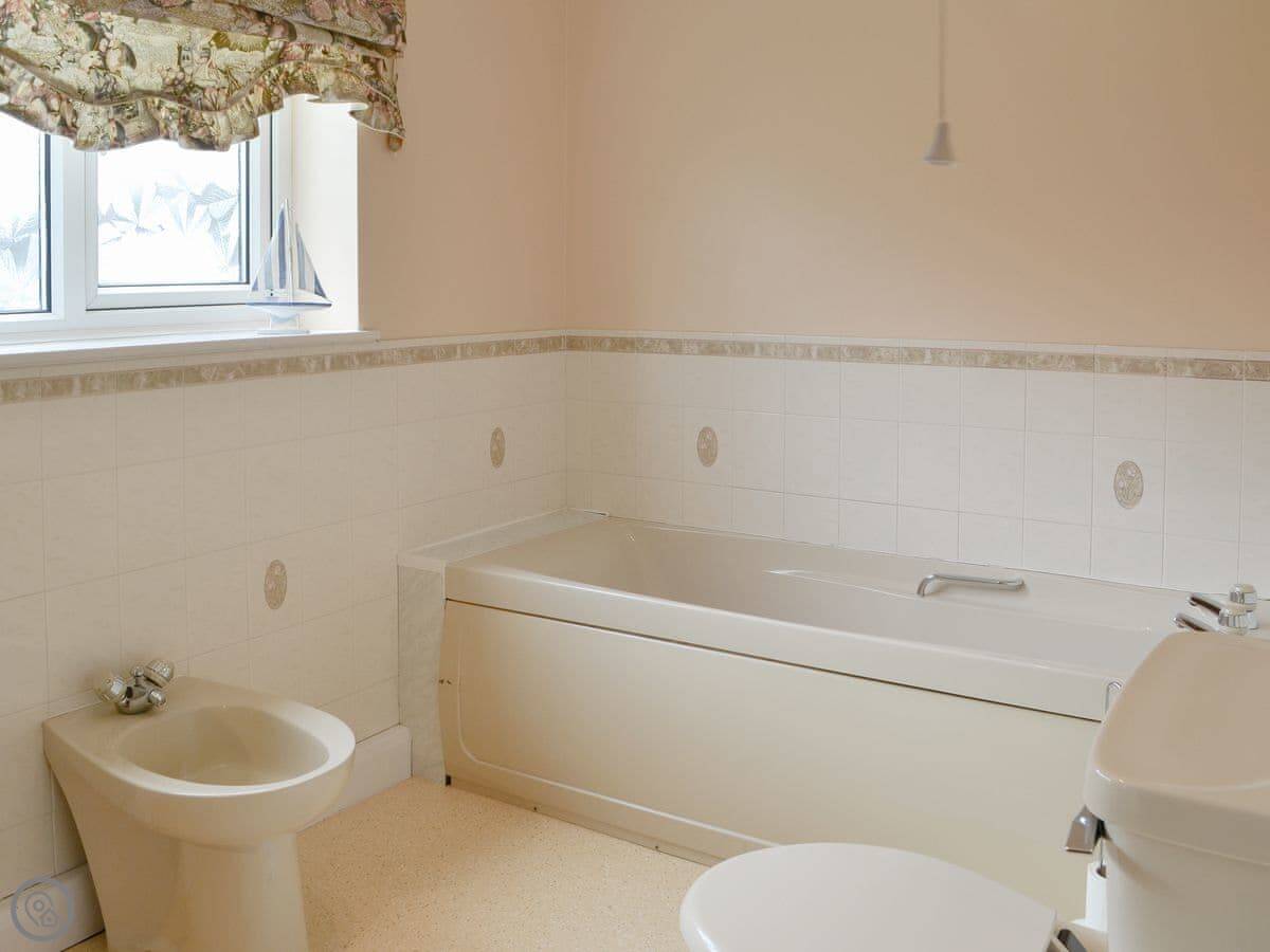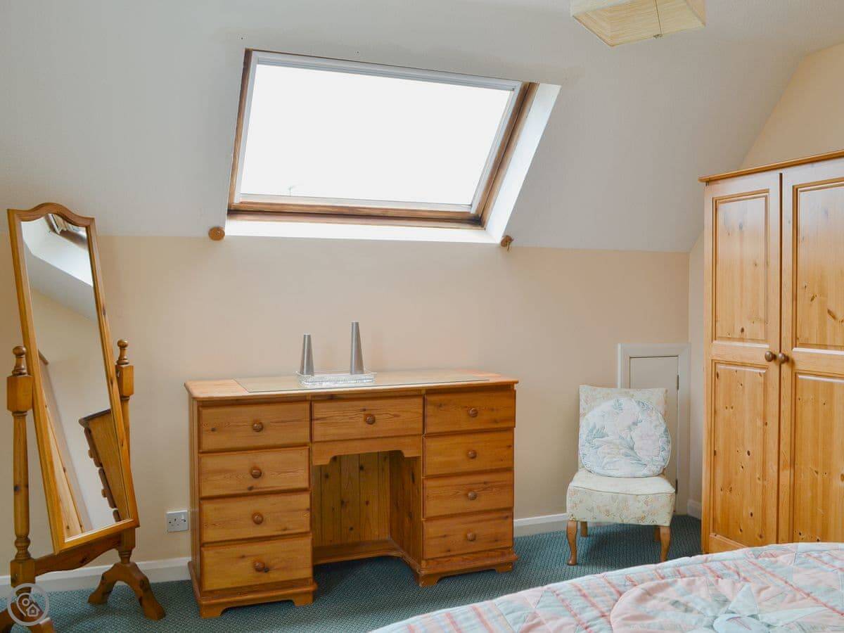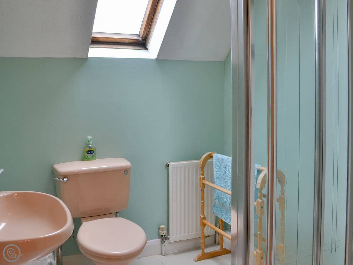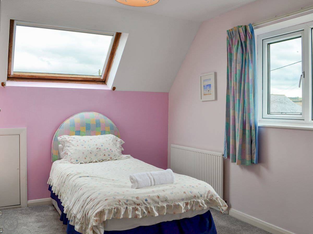 There's a double bedroom and a bathroom on the ground floor. Upstairs there are two more bedrooms. They share a shower room that's between them, a Jack and Jill style. Both upstairs rooms have sea views.