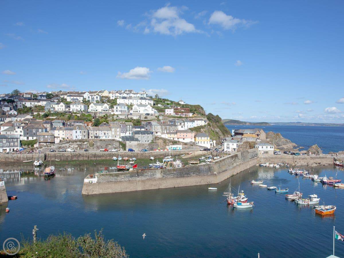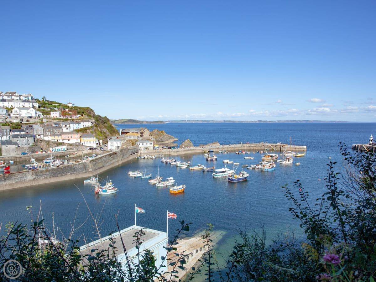 Mevagissey is a proper fishing village with a working harbour. There are shops, pubs, and places to eat all within walking distance. The beach is there too.