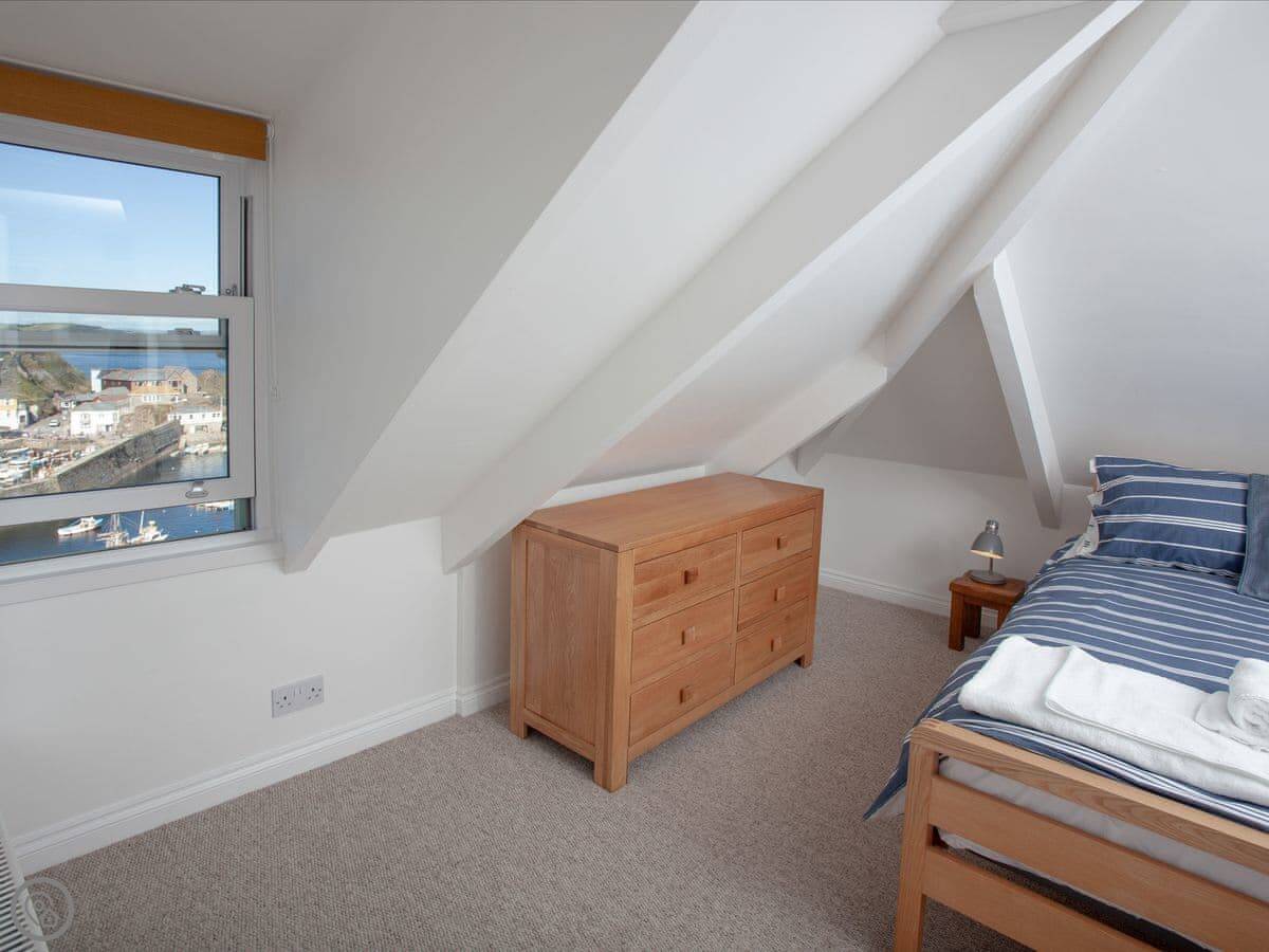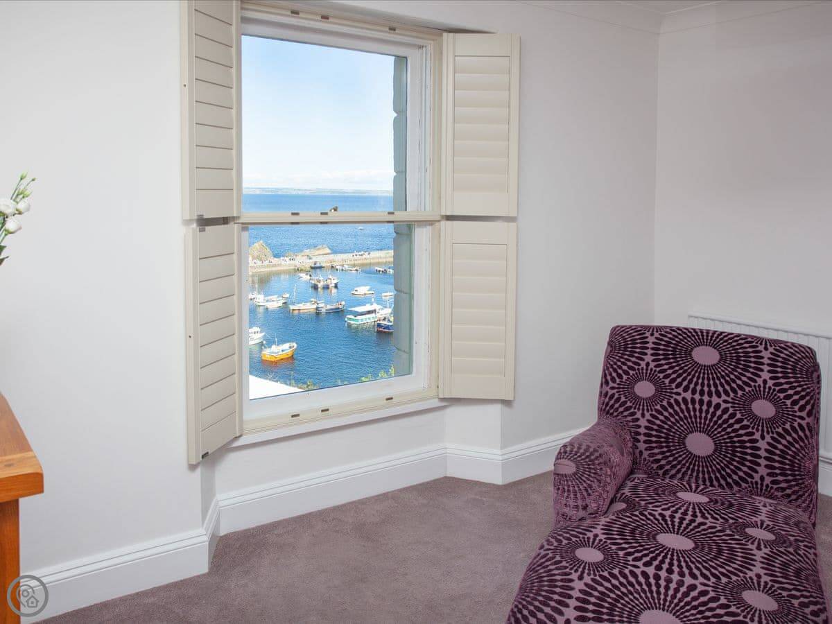 The view is the main thing. From the front rooms, you look right over the village and the harbour and out to sea. You can see it from a few windows.