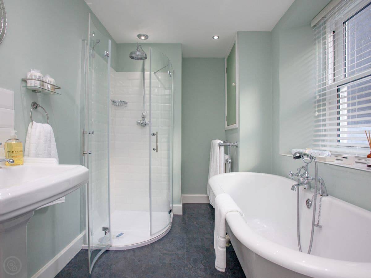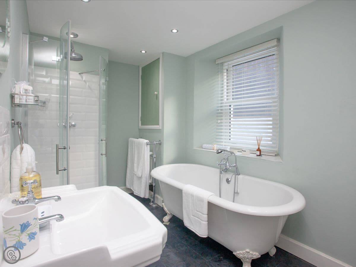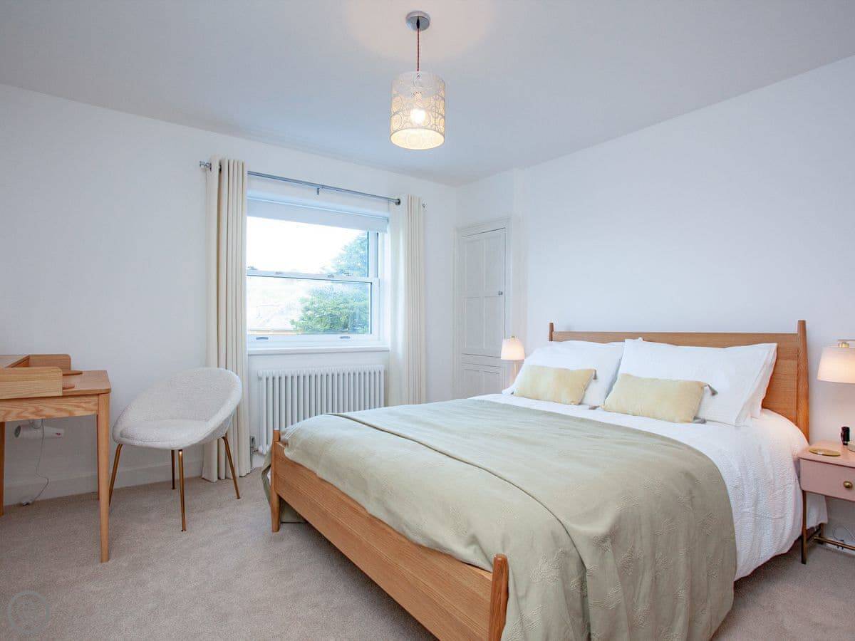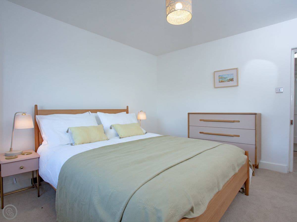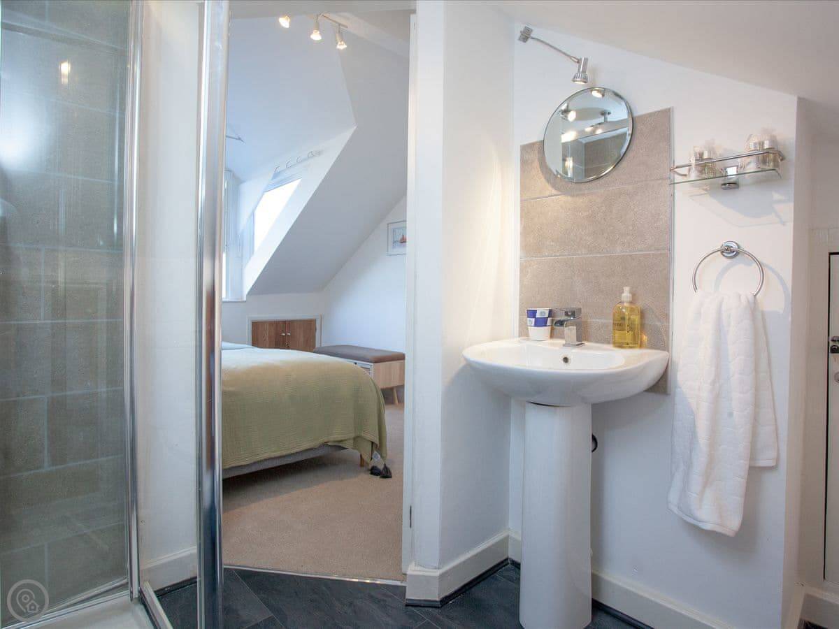 It sleeps four. Two bedrooms and two bathrooms, which is handy. The main bedroom is on the first floor with a king size bed. The twin room is up another flight of stairs in the eaves. It has its own shower room. Both have a view of the bay.