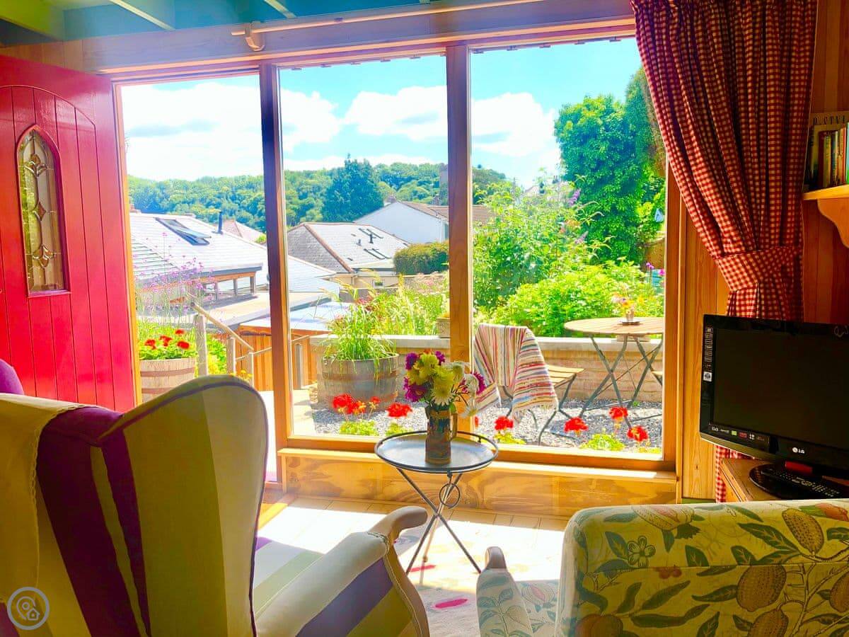 As you approach Merrybank through the well maintained garden, you immediately notice the array of beautiful plants and shrubs which give privacy to the lodge. With table and chair seating as well as bench seating, the outside area is a great place to sit back and unwind, taking in the nature around you. Upon entering the lodge, you find an open plan layout. The living area is bright and airy and looks out over the lovely garden through floor to ceiling glass panels. Towards the back of the lodge is the kitchen/dining area, equipped with all you could need to rustle up that early morning breakfast or lunch before heading out for the day. The bedroom area is also located towards the back of the lodge. The bathroom is accessed via a separate door and benefits from a bath and a shower attachment, perfect for a nice long soak to relax after a long day exploring.