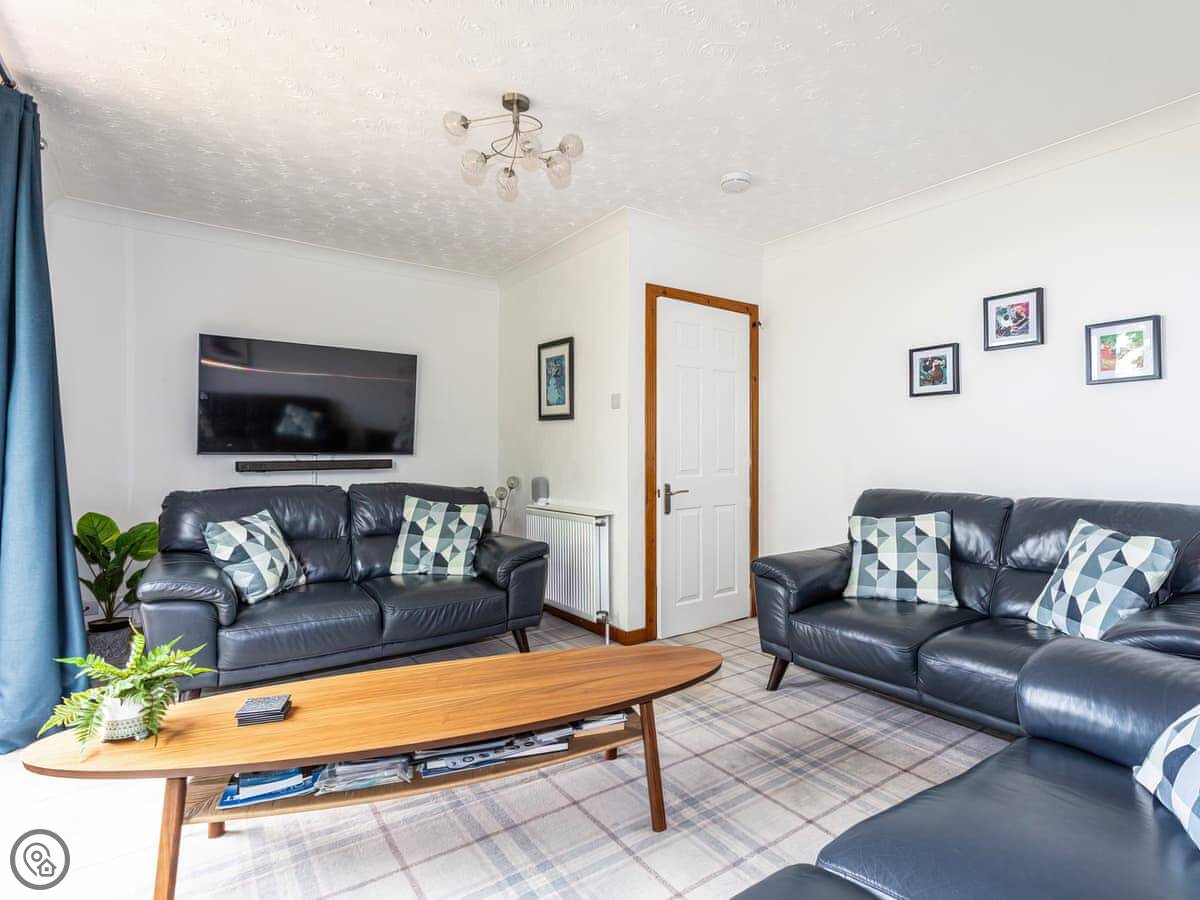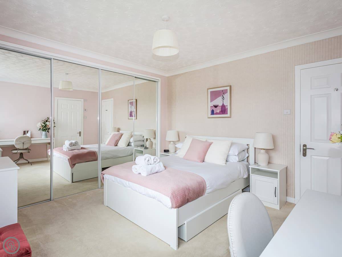 It sleeps eight, in four bedrooms. There are three bathrooms, which helps with a full house. It's got a 4 Star rating. It's spacious and well equipped, not ancient or particularly fancy.