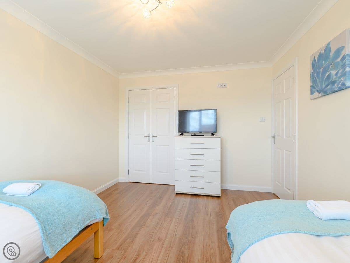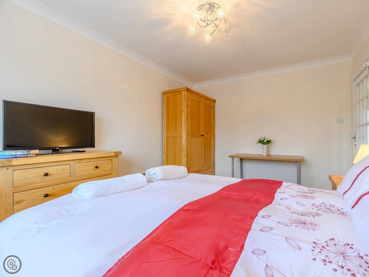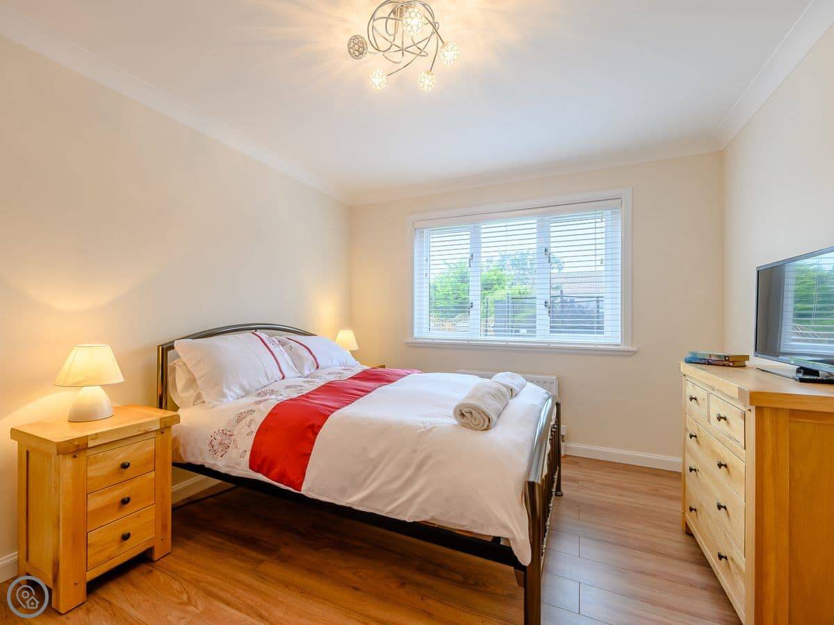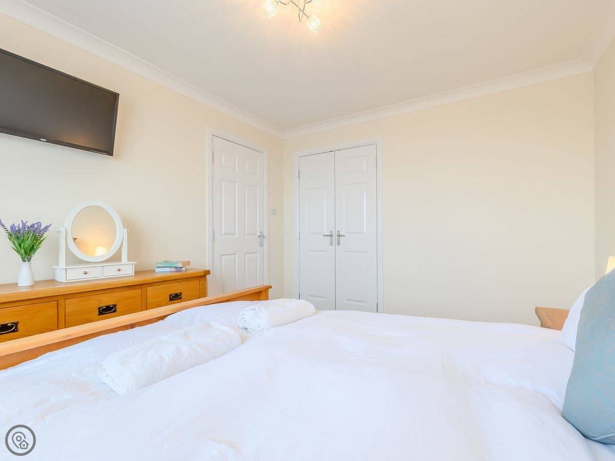 For facilities: there's a dishwasher, a washing machine, WiFi, and TV. Bedding and towels are included. There's parking on the drive. No pets, sorry. And it's got a cot if you need one.