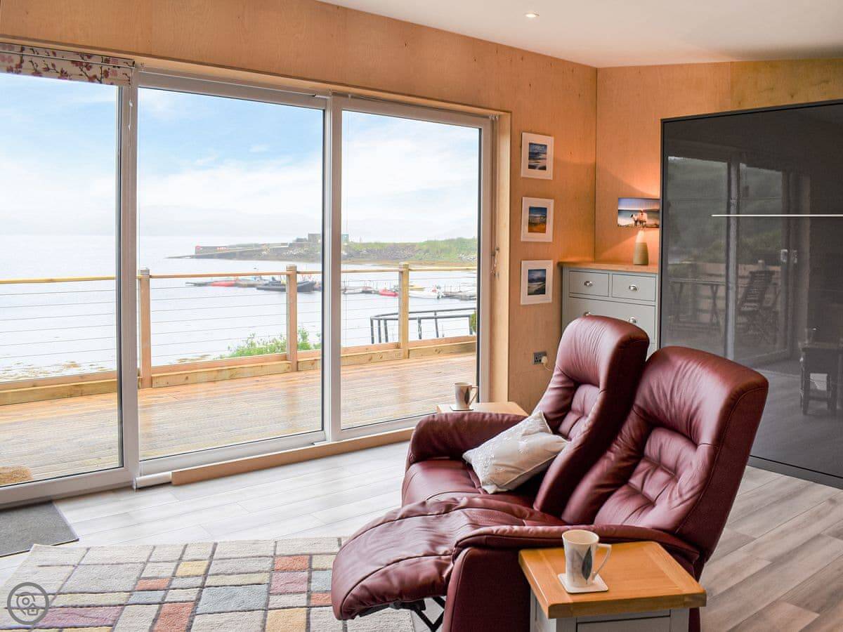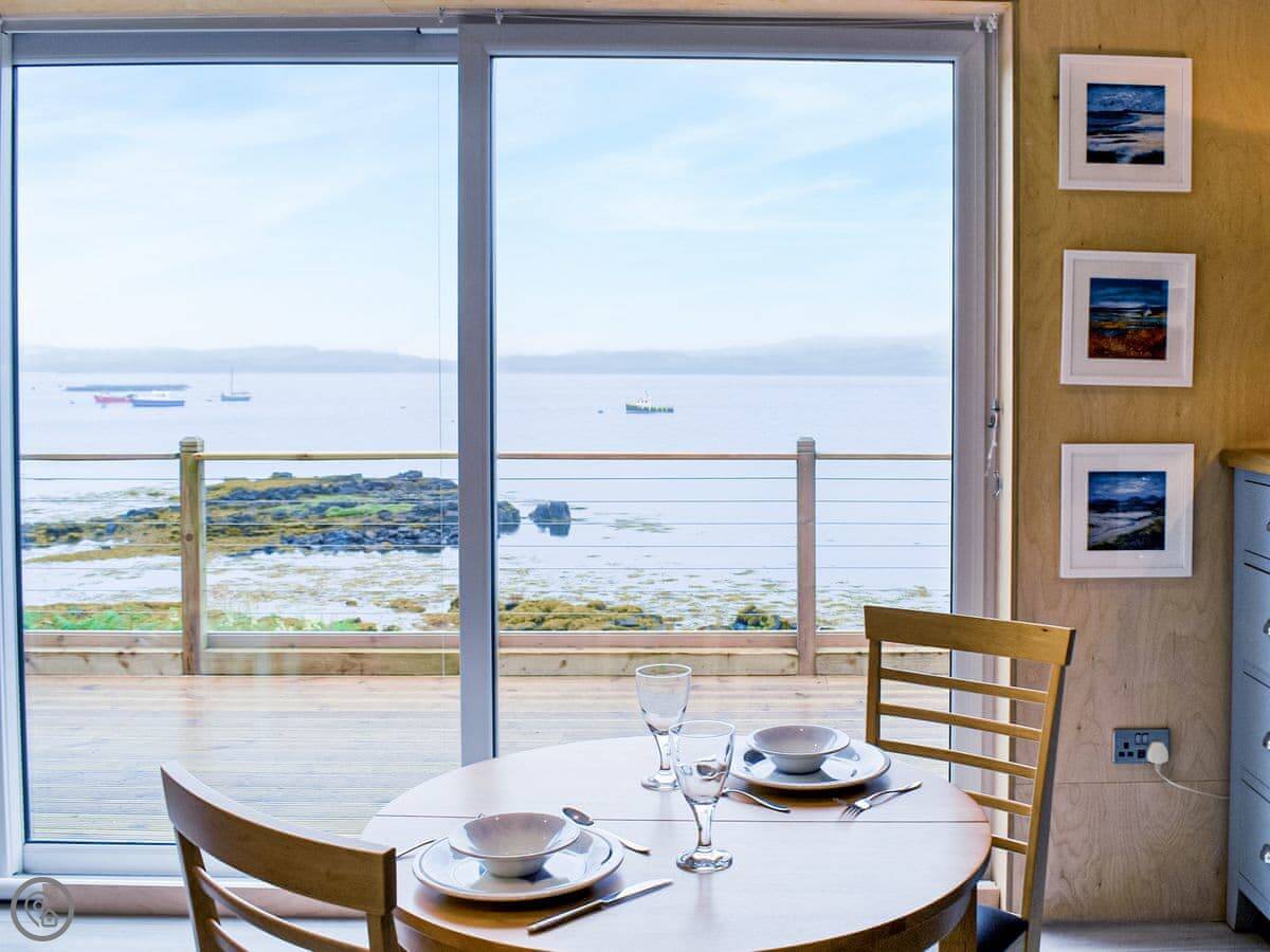 The main thing is the view. The whole front is glass, looking straight out over the sea to the islands. You can sit inside on the sofa or outside on the deck and just watch the water change all day. It's very quiet.