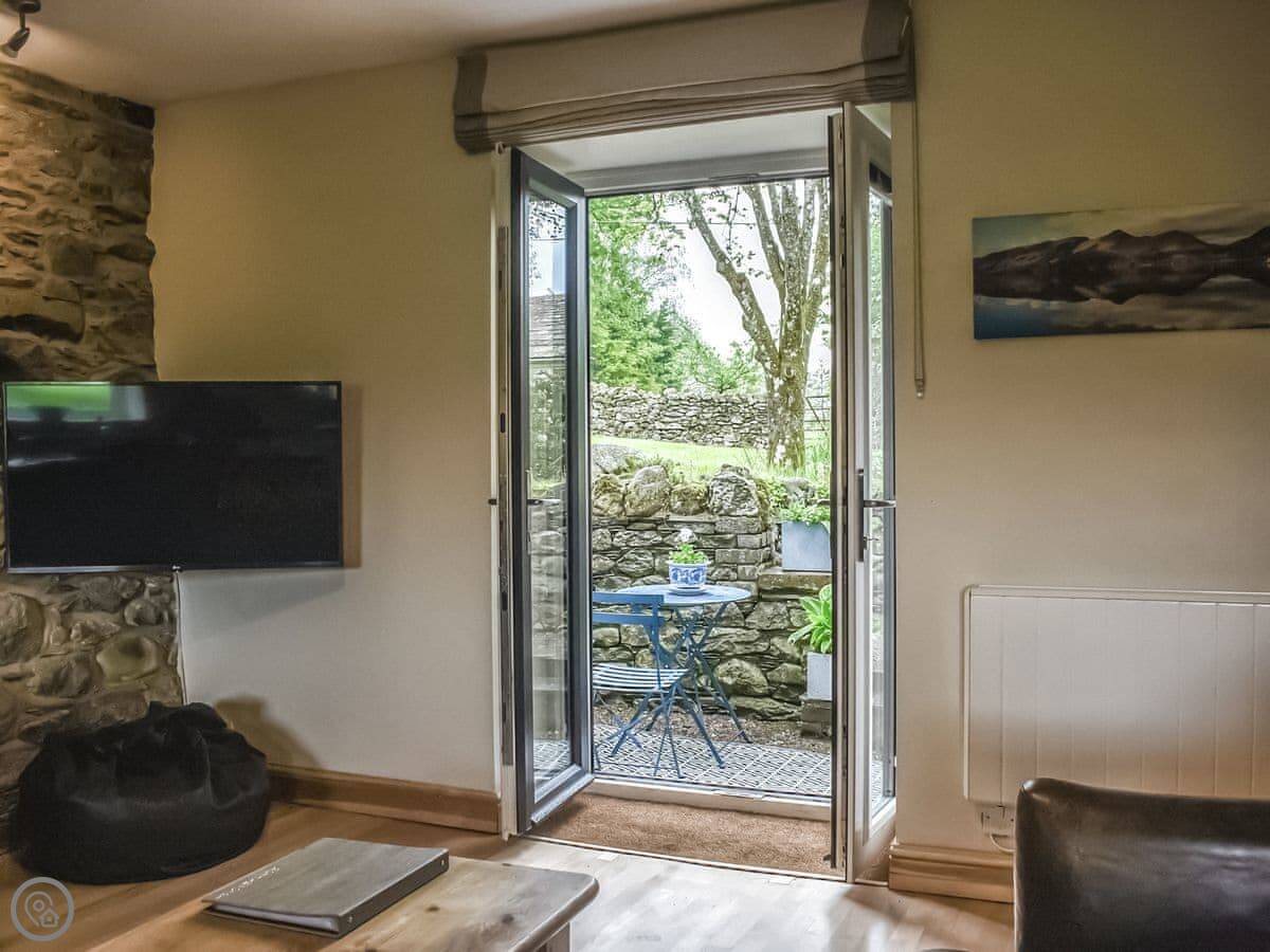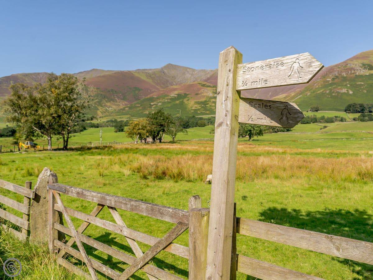 You're in a hamlet near Threlkeld. There's a footpath from the door that goes across fields to the pub in Scales, about a twenty minute walk. Threlkeld village is about a mile and three quarters walk along the river, and has a couple of good pubs. Keswick is five miles away for shops and more places to eat.