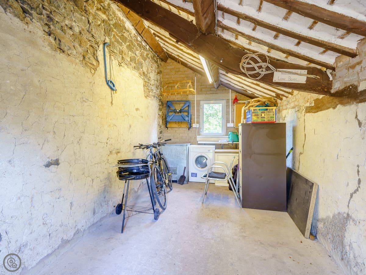 Practical things: the kitchen has a dishwasher and washing machine. There's a walk-in pantry with extra bits. The entrance porch has a boot room with a heated drying cabinet for wet coats and boots. Outside, there's a garage you can use for bikes or kit. A tumble dryer is in there too. The garden is a semi-enclosed patio with seating, a barbecue and a firepit.