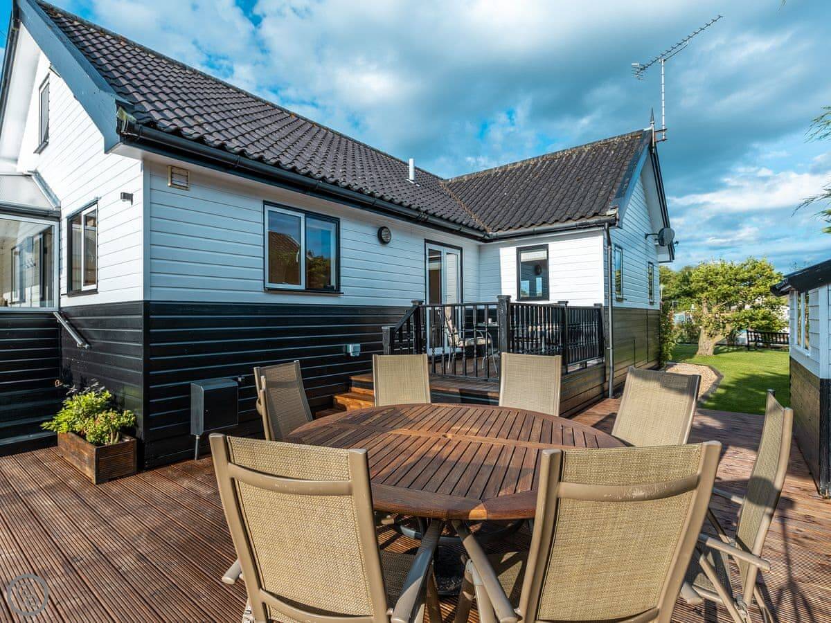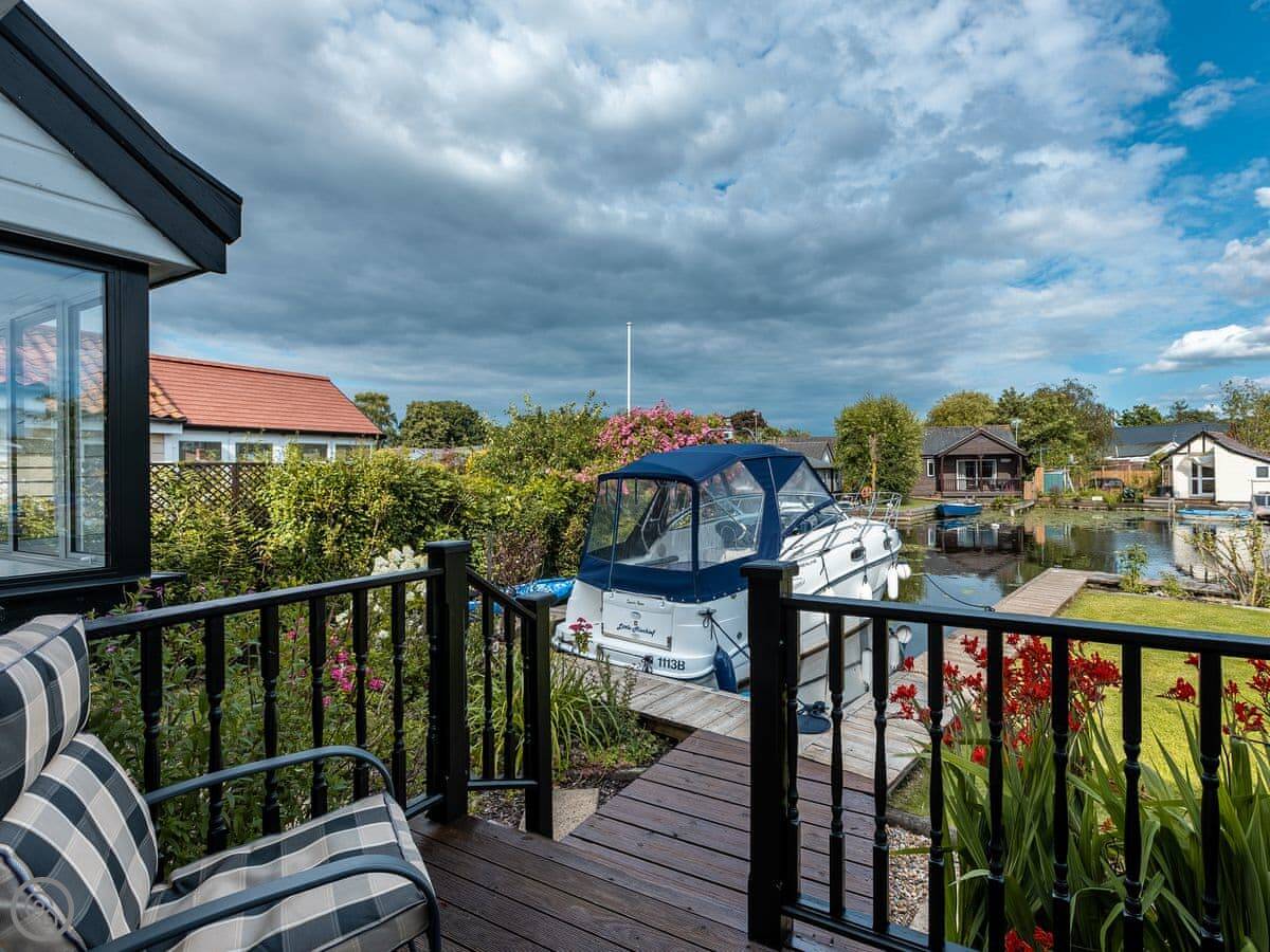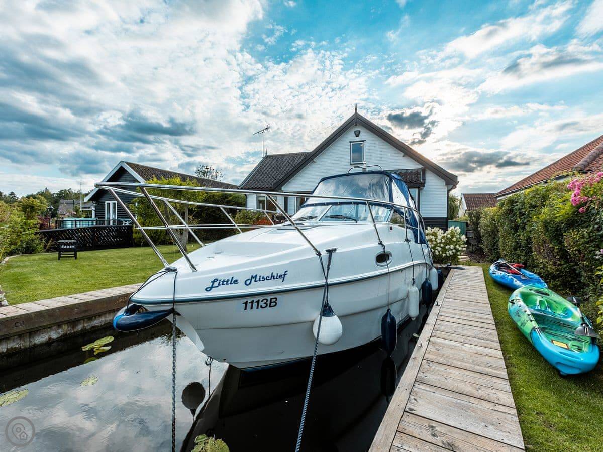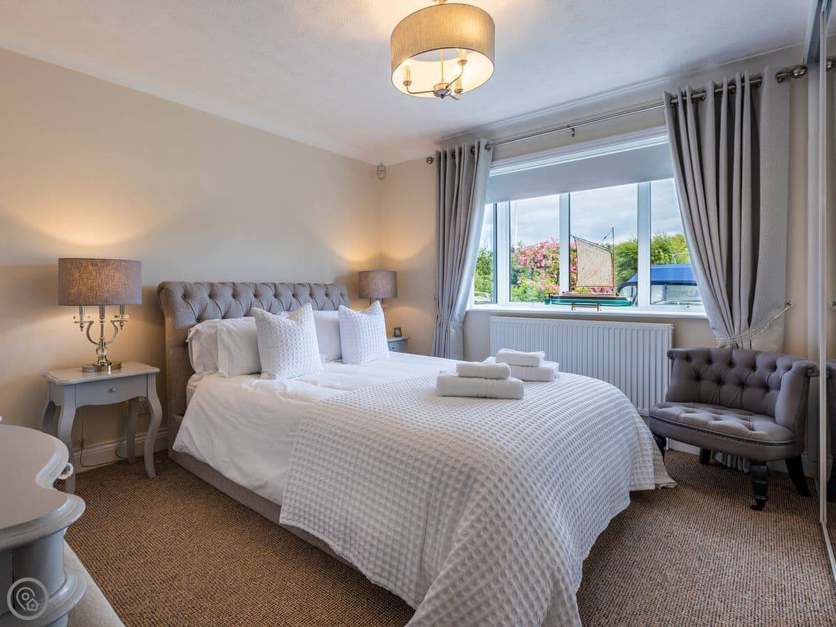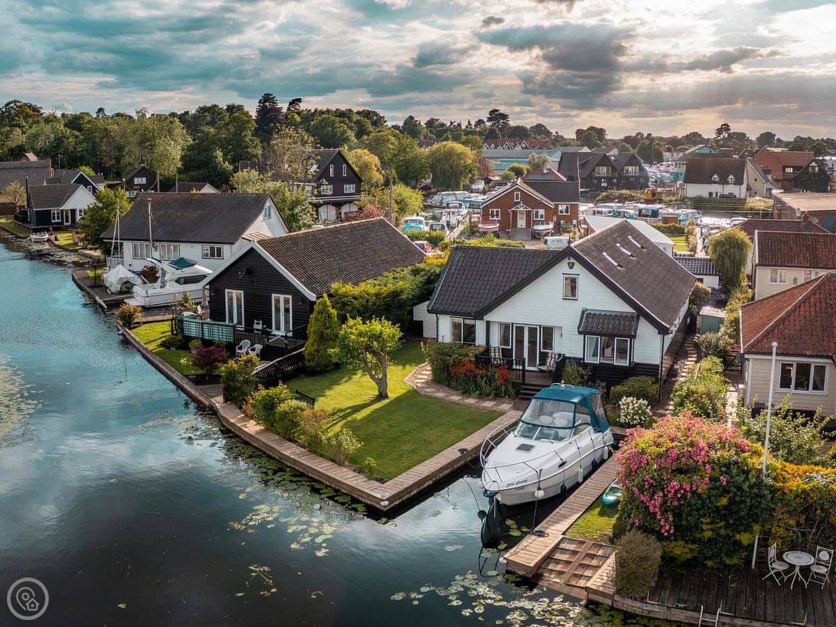 The Reeds is in Hoveton, right on the water. It's a detached house, so there are no neighbours attached. It sleeps eight people in four rooms. They're all kingsize beds. There are three bathrooms, which is handy with that many people.