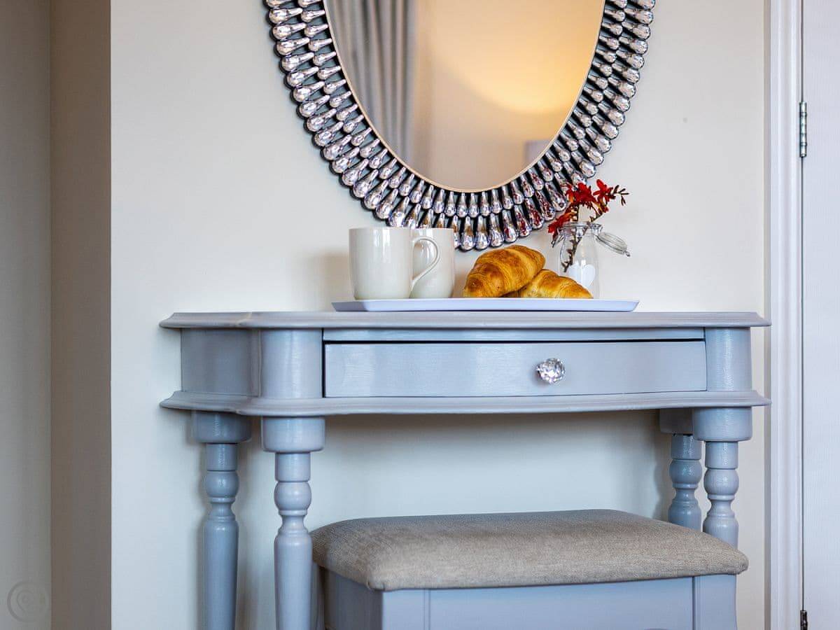 For facilities, it has the expected things: WiFi, TV, washing machine, dishwasher. Bedding and towels are included. There’s parking on site. The garden is enclosed and has a BBQ. We can provide a highchair. Sorry, no pets.